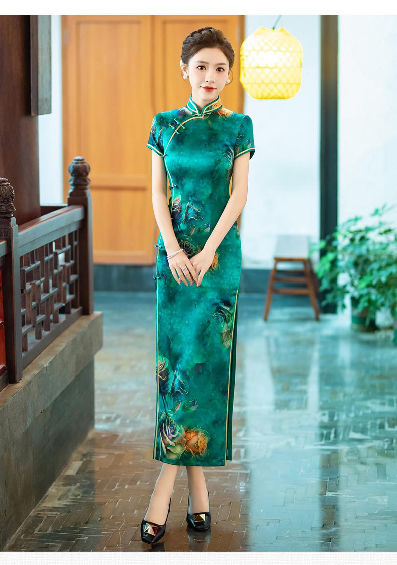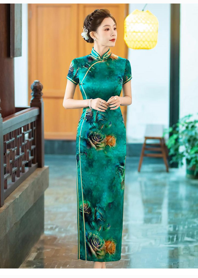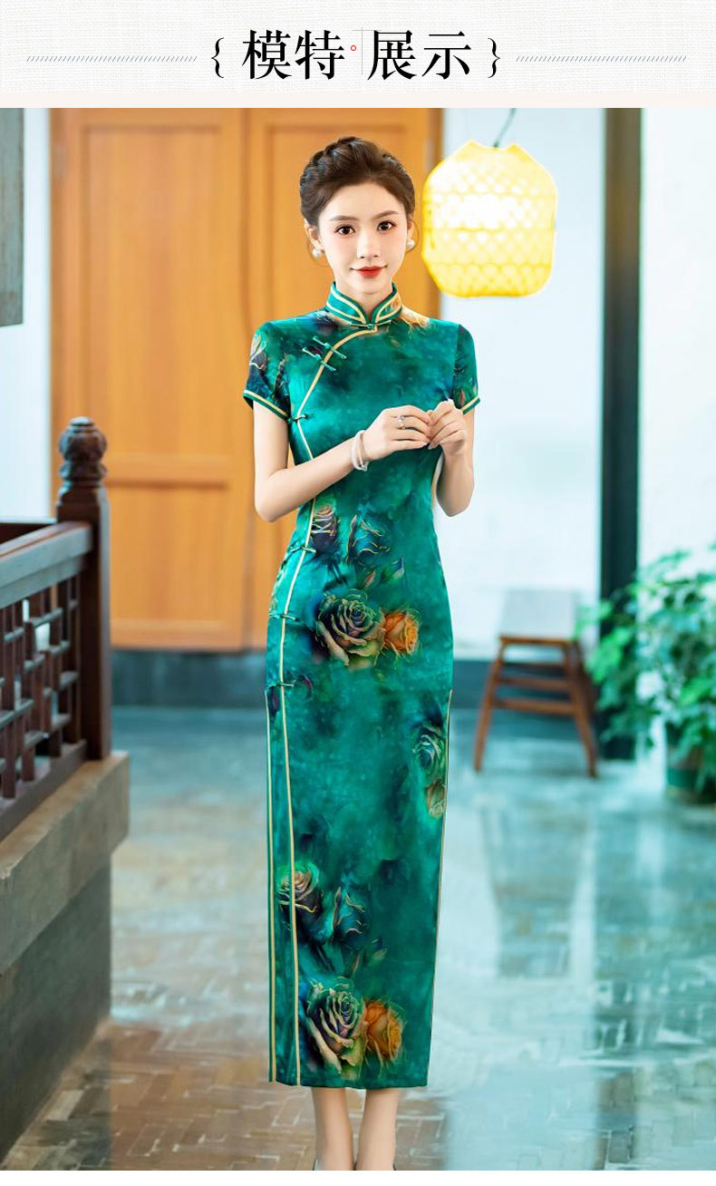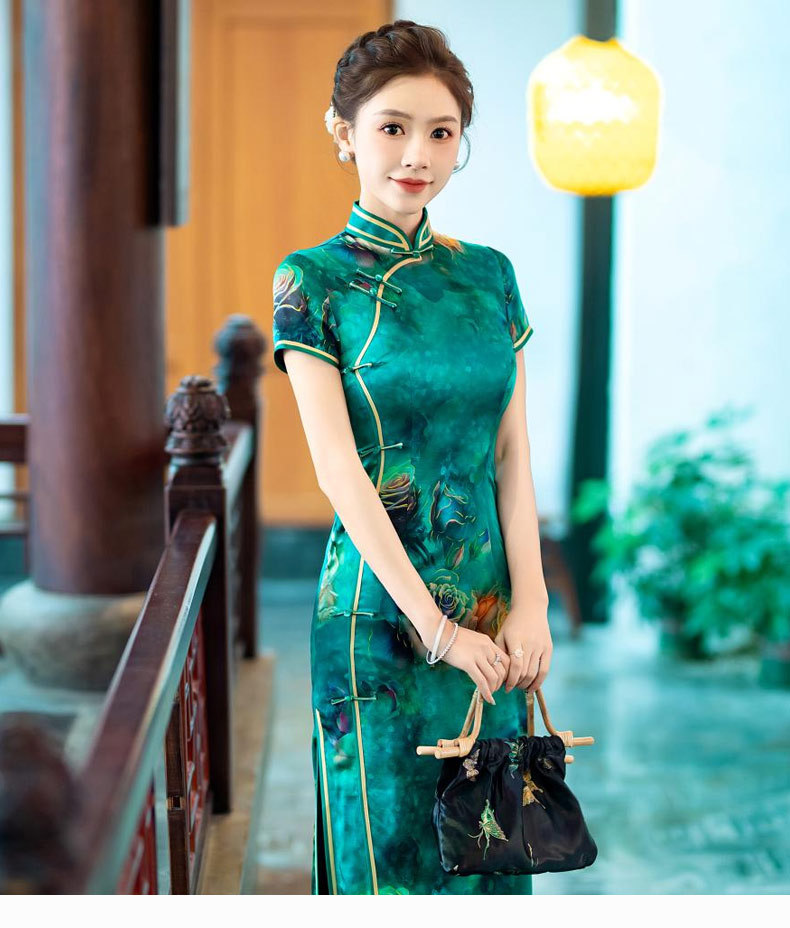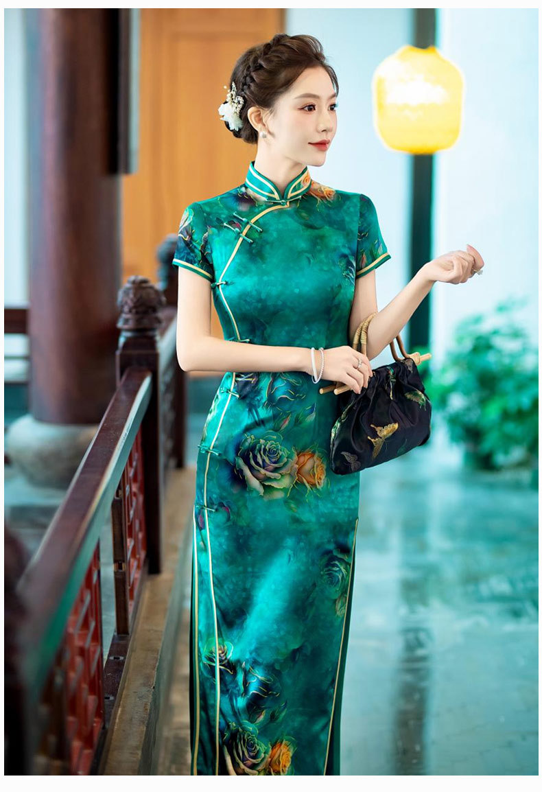 WX-新款真丝旗袍高端气质长款改良版桑蚕丝中国风时尚修身