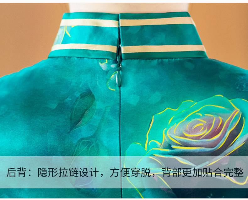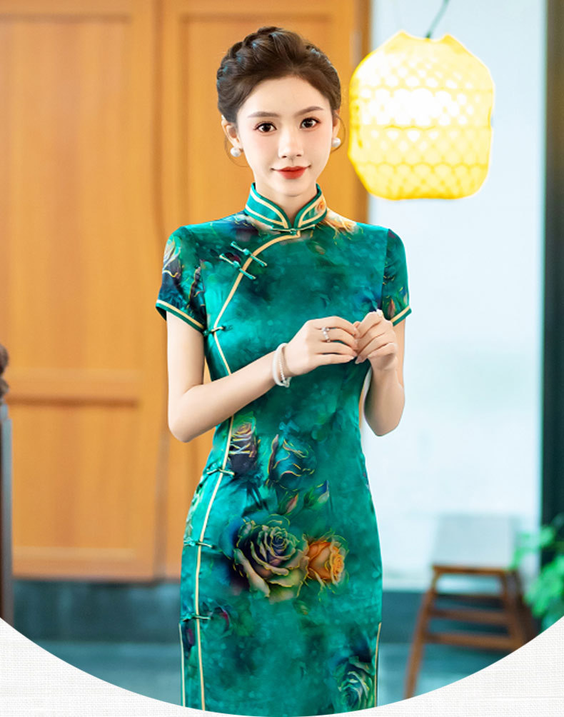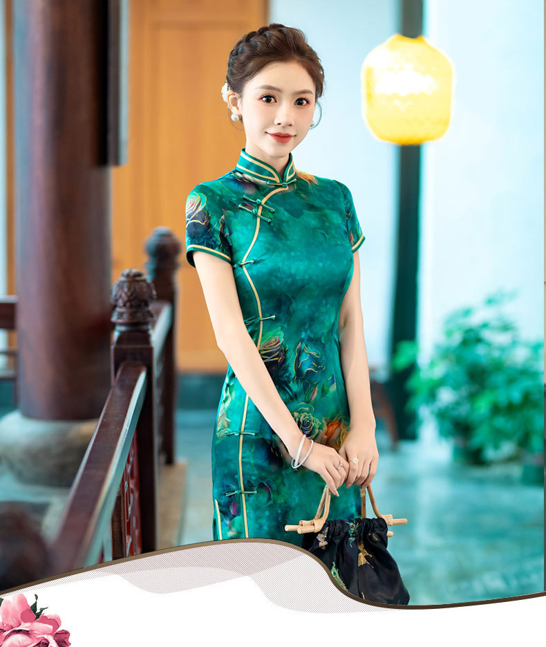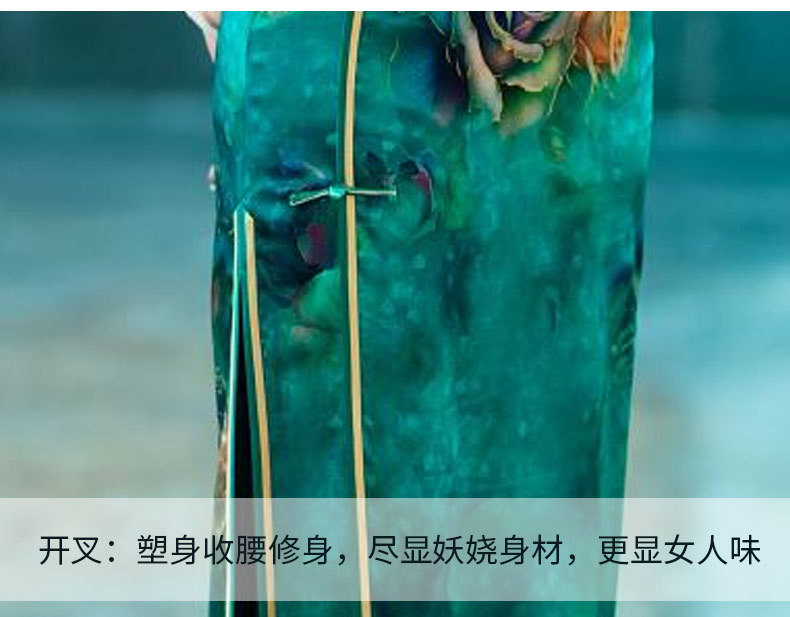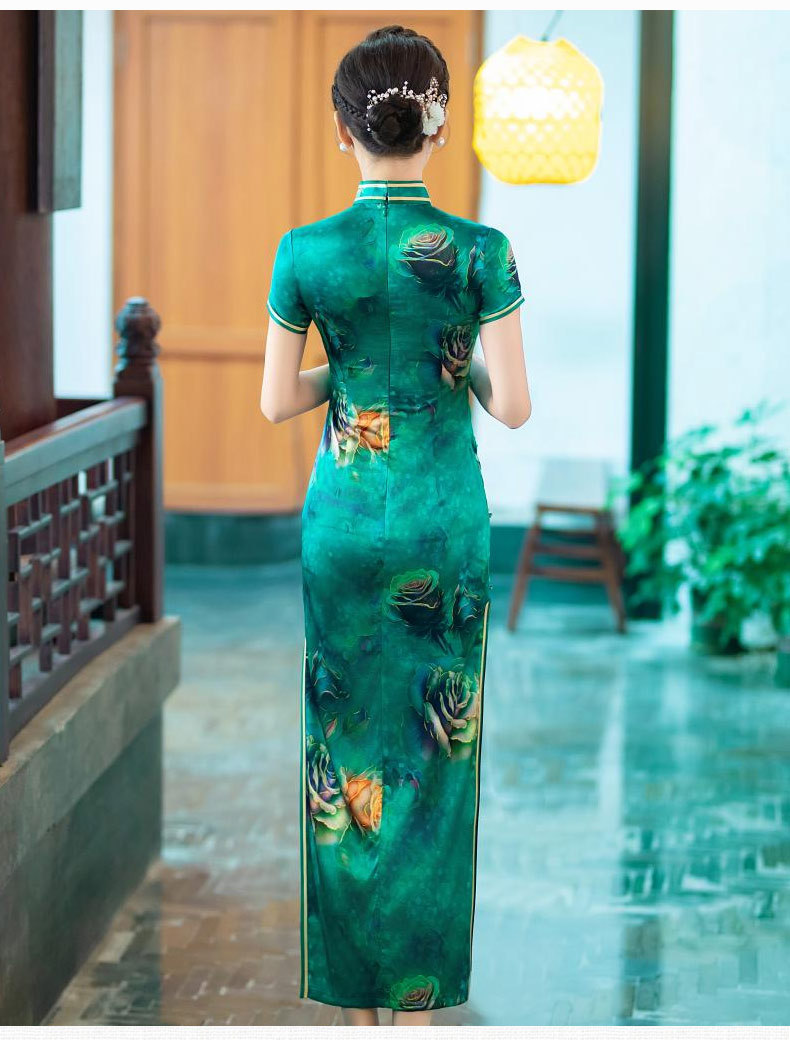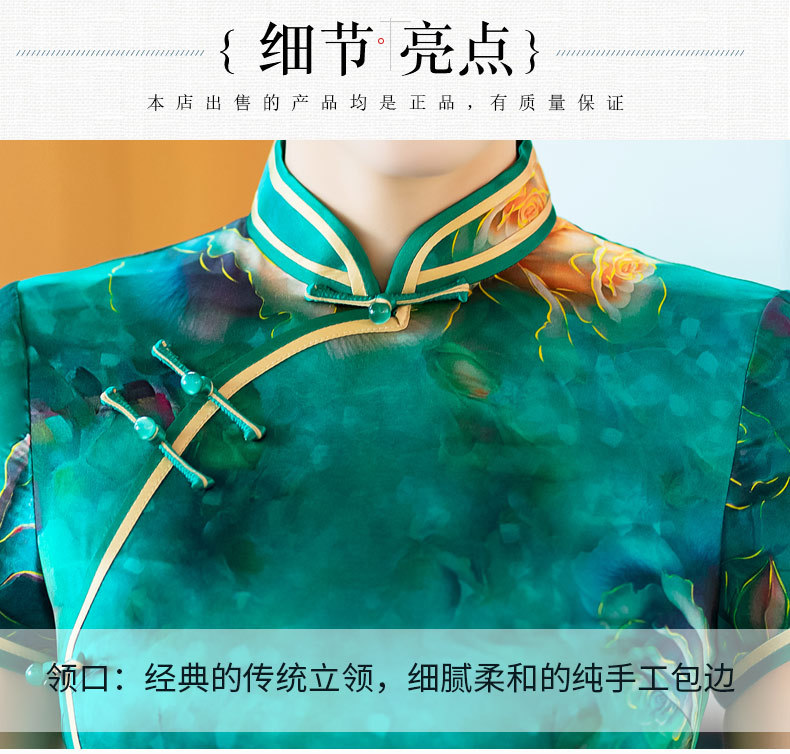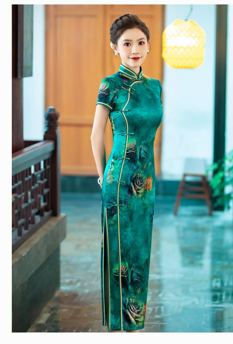 WX-新款真丝旗袍高端气质长款改良版桑蚕丝中国风时尚修身