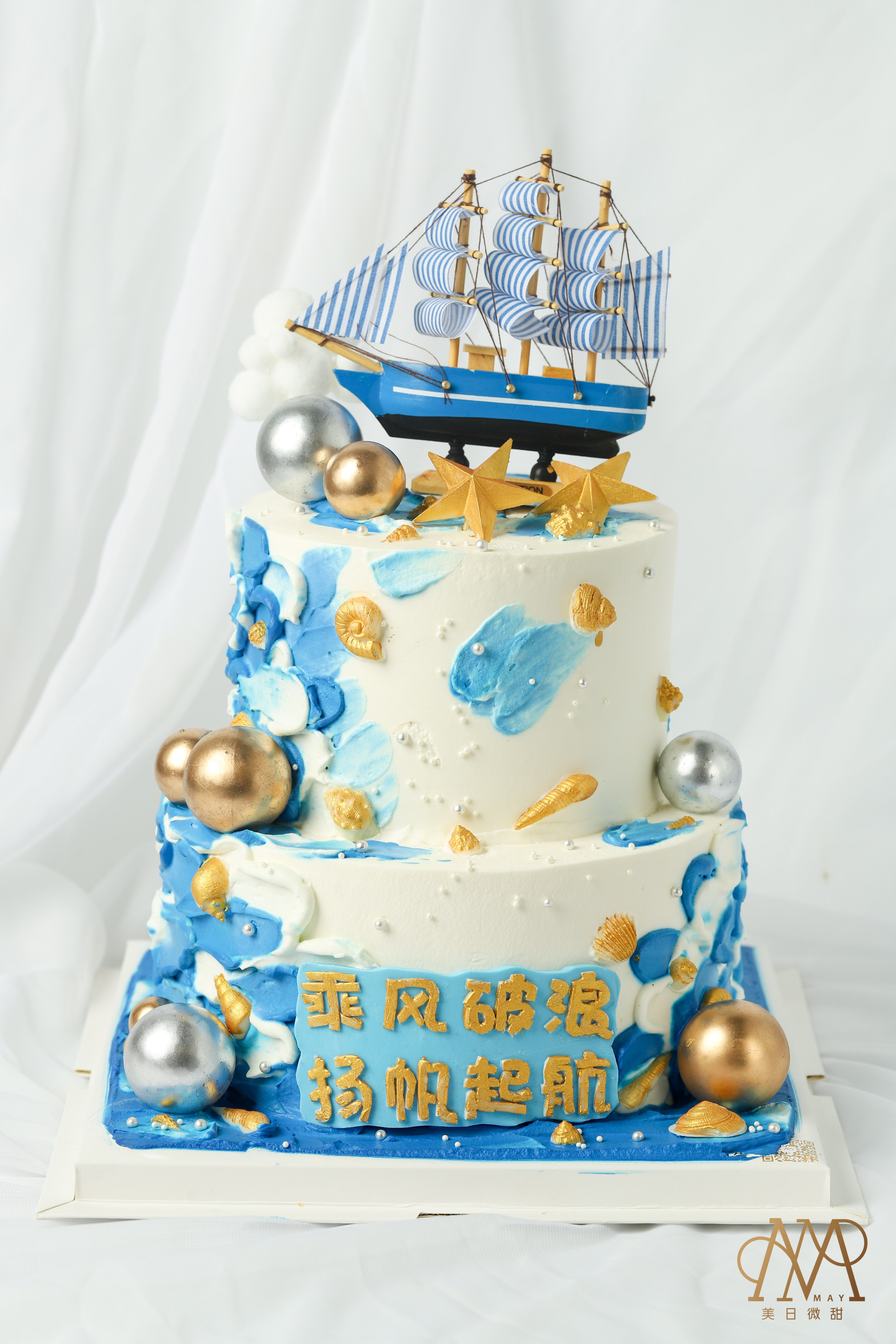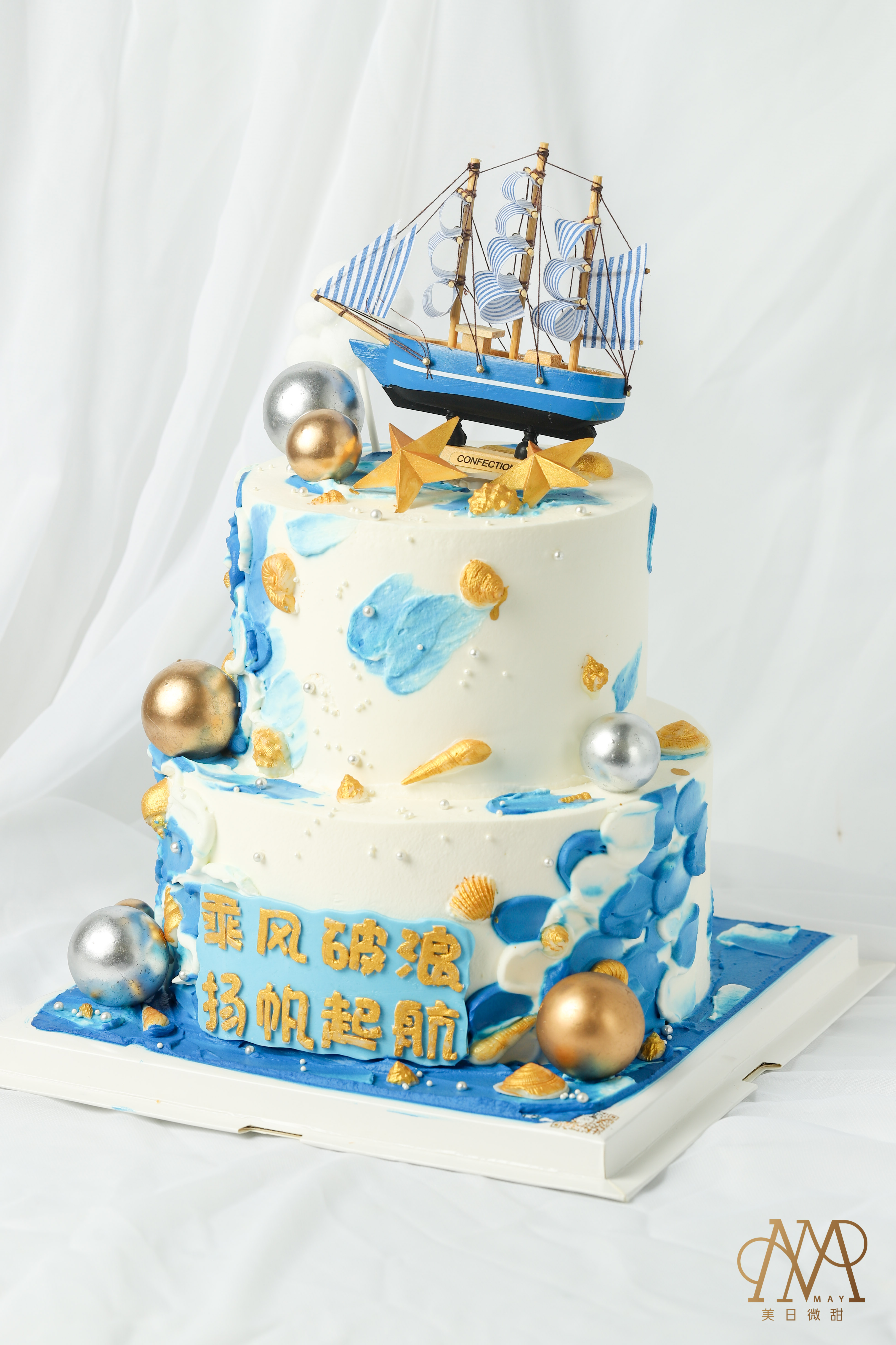 B3674“双层帆船·扬帆起航蛋糕”(送小朋友 朋友 挚友 男朋友 老板 上司 老公)