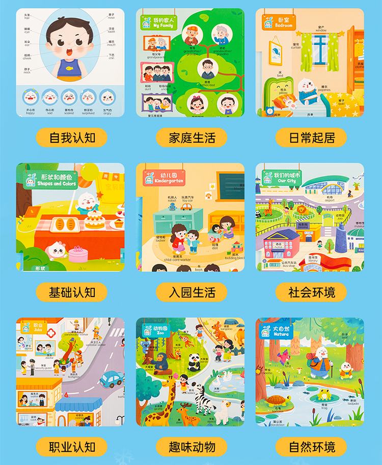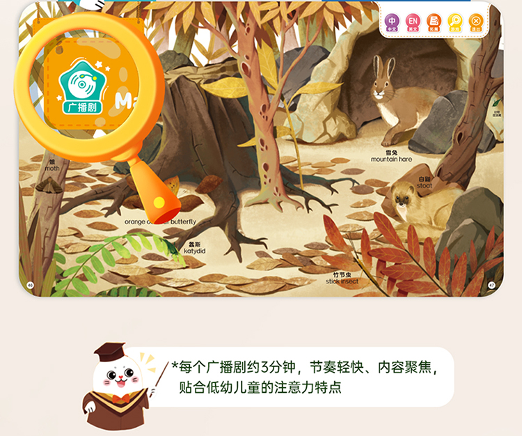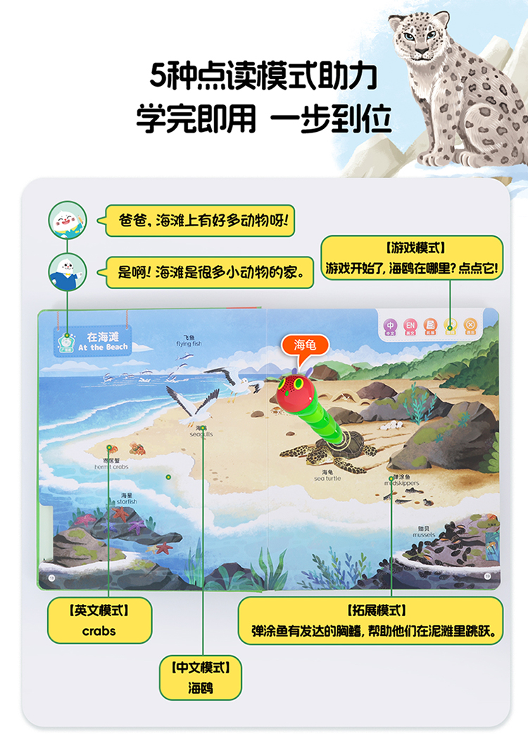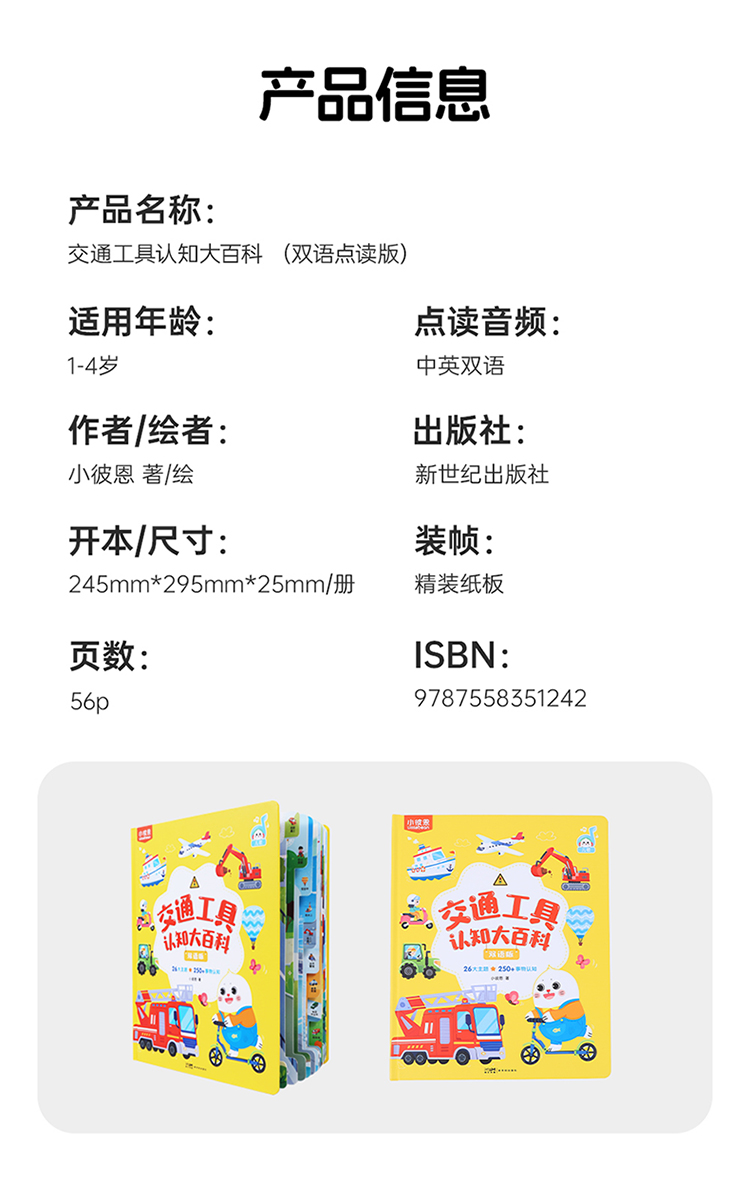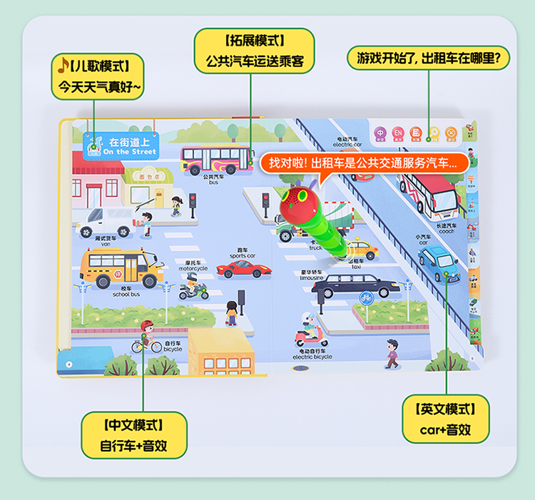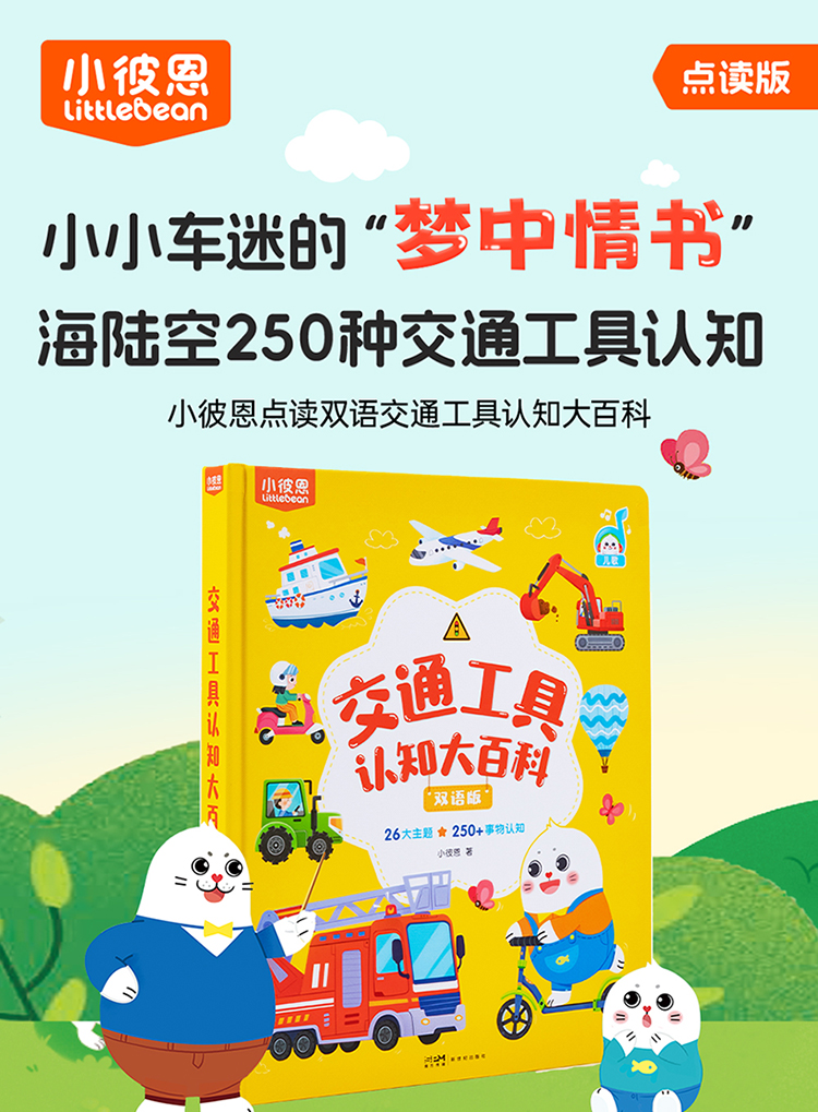 #小彼恩点读童书 双语启蒙大百科系列3本(认知+交通+动物)+毛毛虫2.0点读