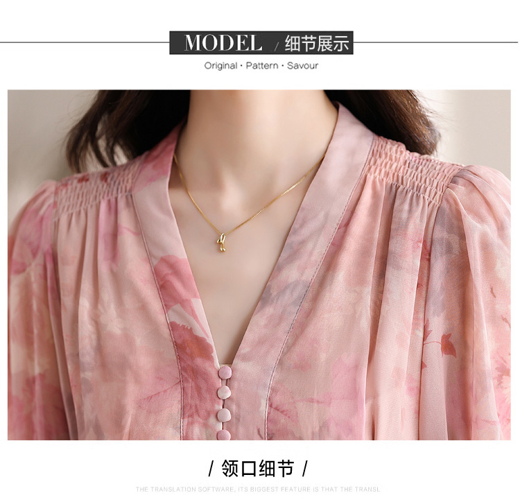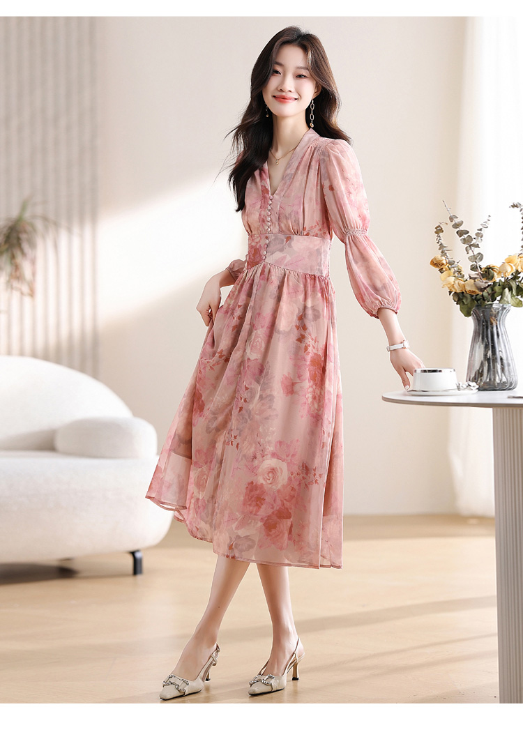 气质优雅灯笼袖,V领长袖连衣裙 &8011