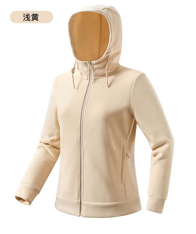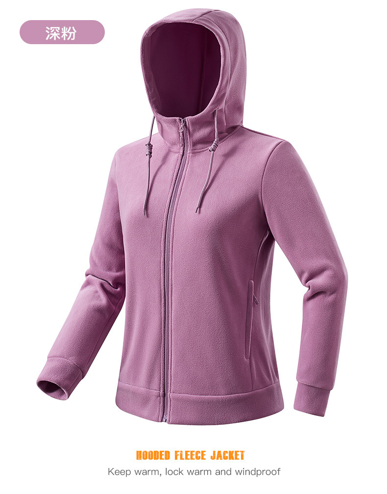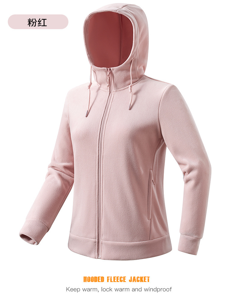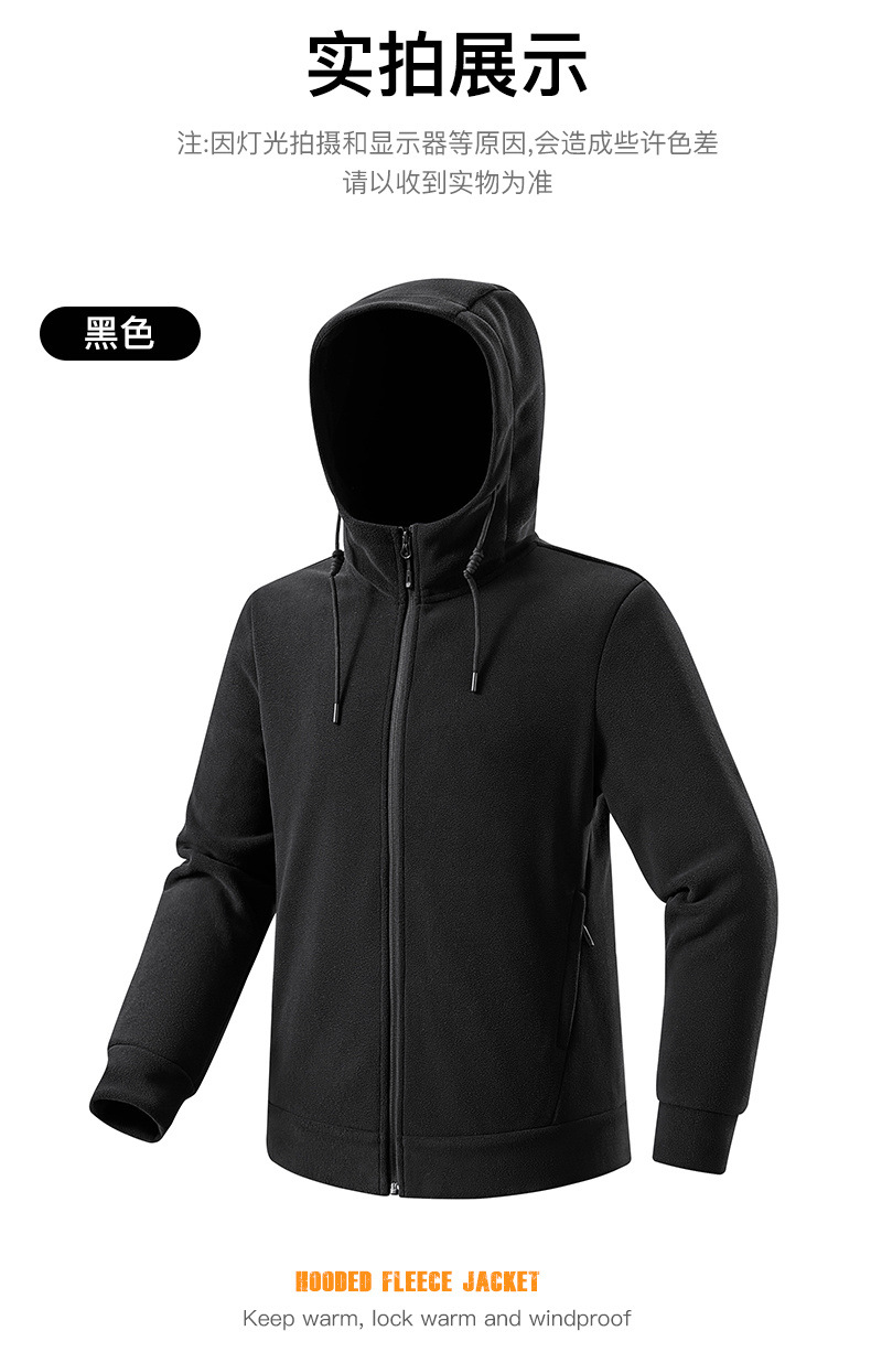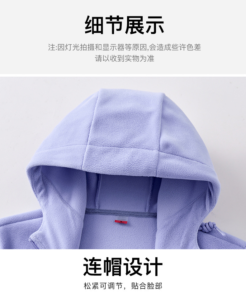 百媚生 户外连帽抓绒衣男女加绒加厚保暖透气摇粒绒开衫23669K