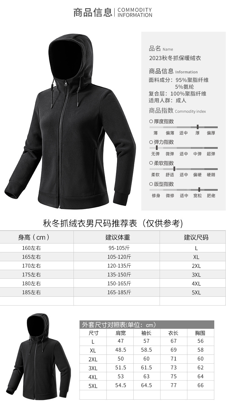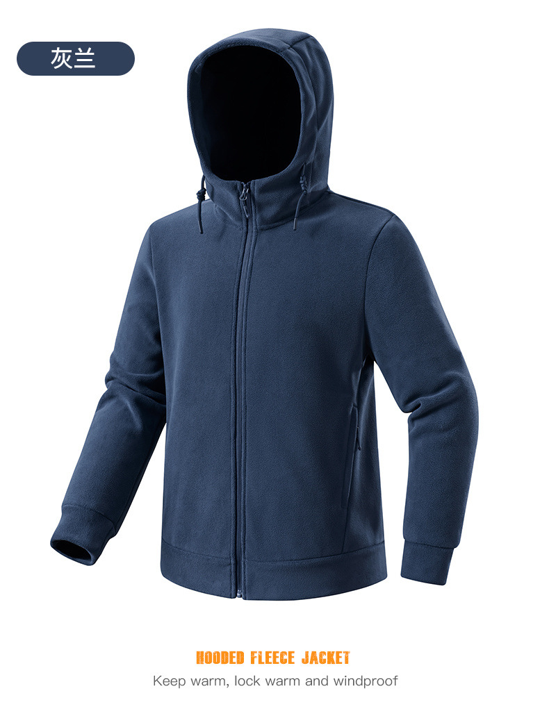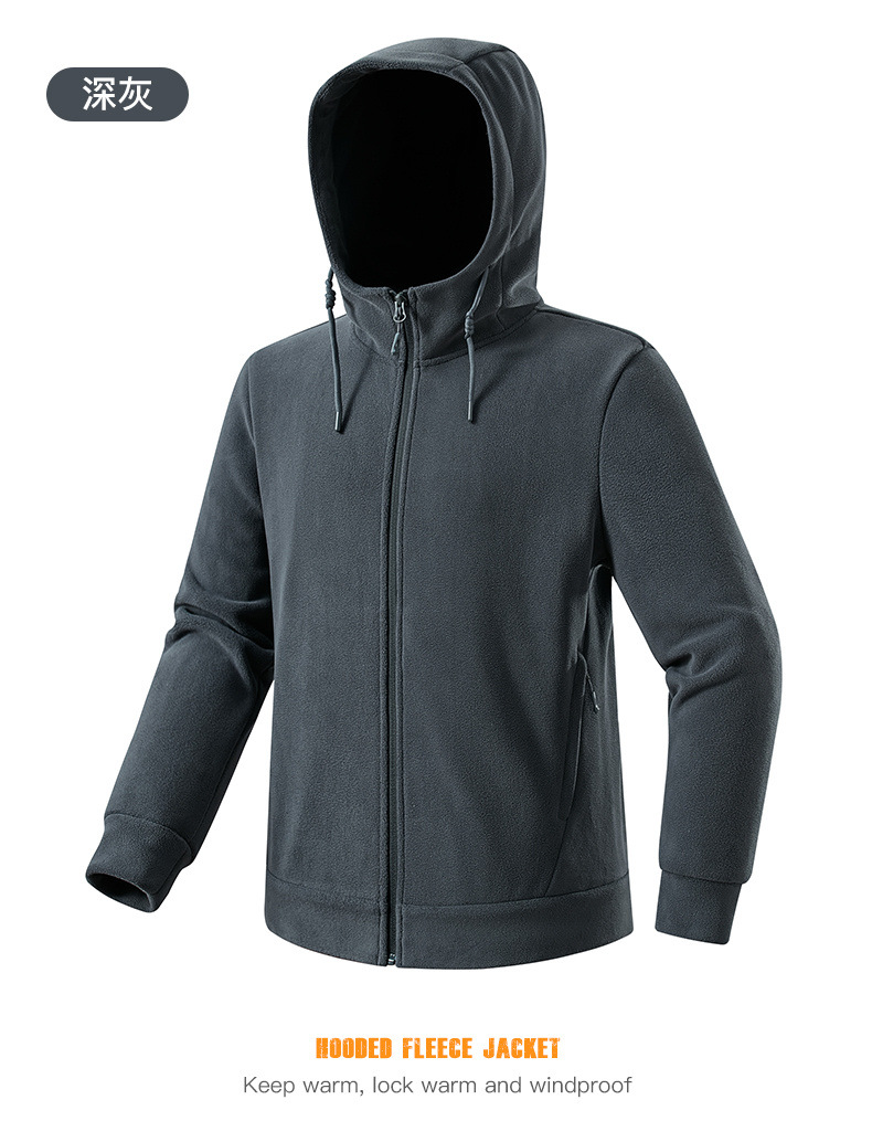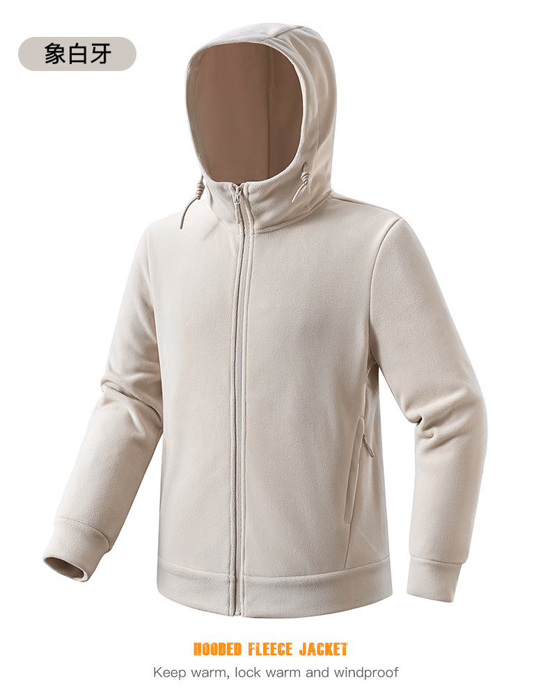 百媚生 户外连帽抓绒衣男女加绒加厚保暖透气摇粒绒开衫23669K