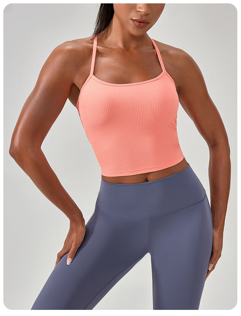 跃牌【欲动春风】系列 瑜伽背心女带胸垫罗纹紧身运动上衣吊带跑步健身背心52165