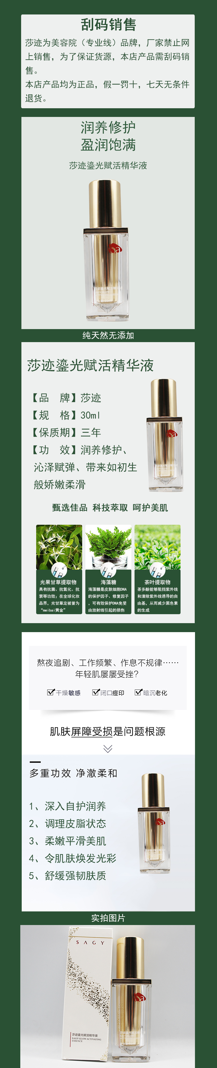 莎迹鎏光赋活精华液30ml美容院正品直发包邮柔润嫩泽