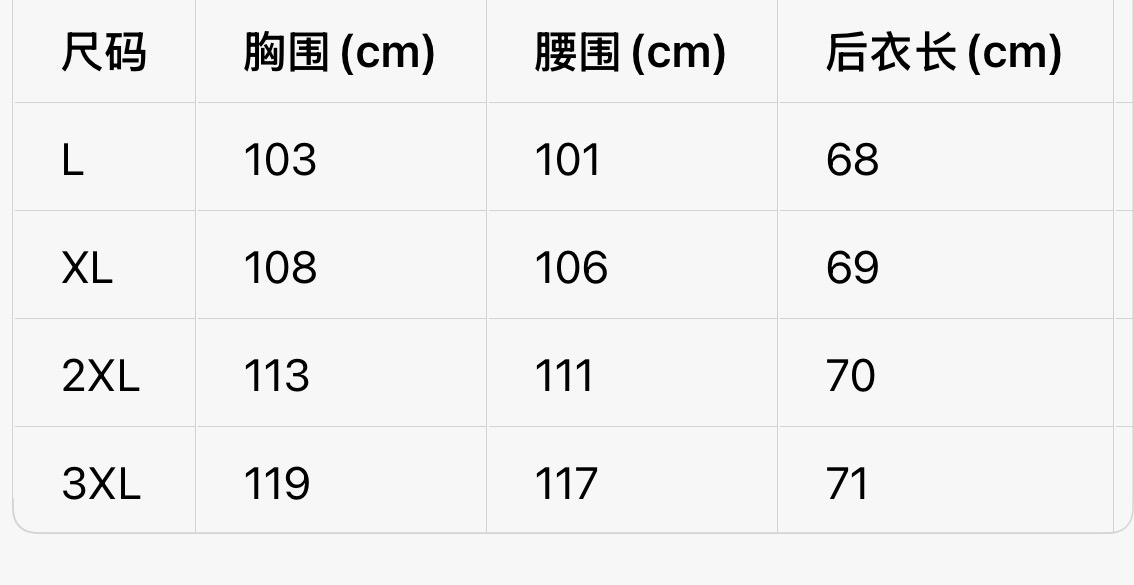 尺码:L-3XL