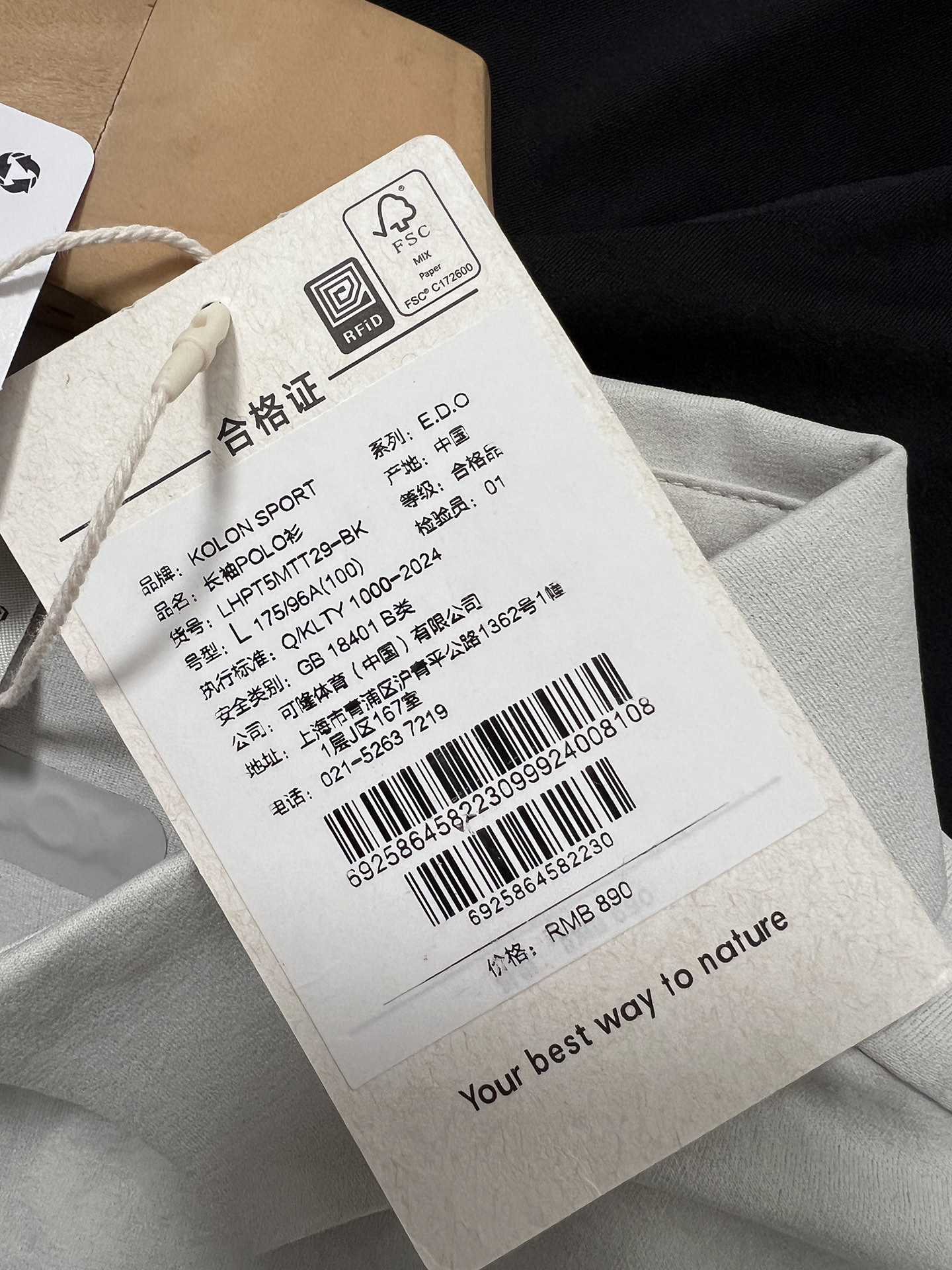 90 货号075632085 hh 可隆KOLON SPORT 长袖POLO衫