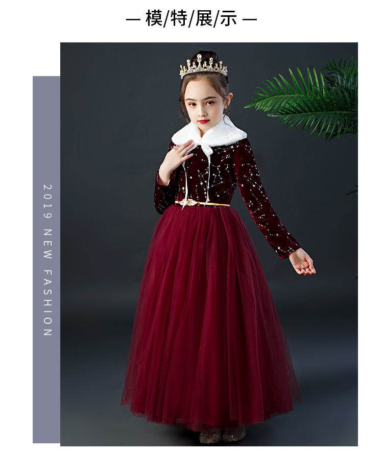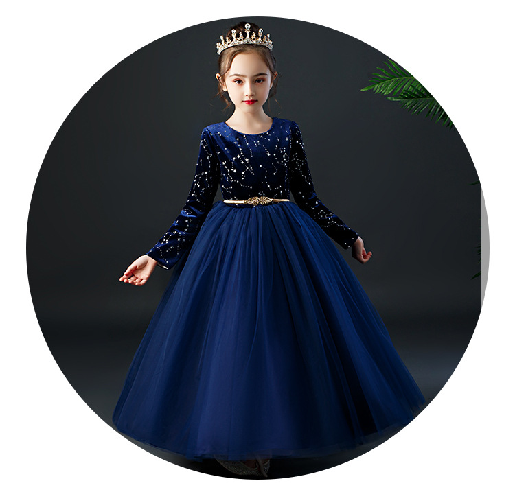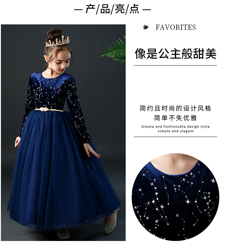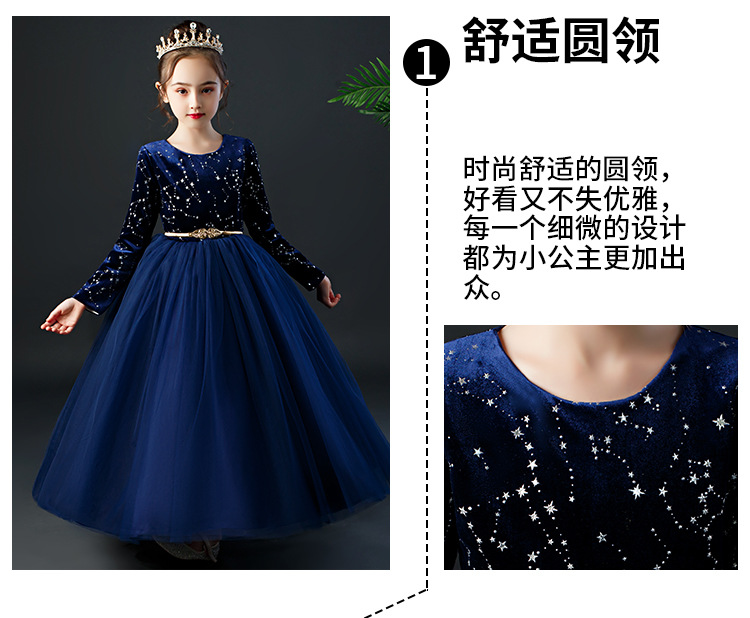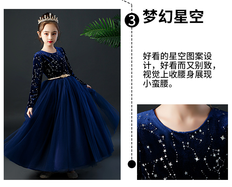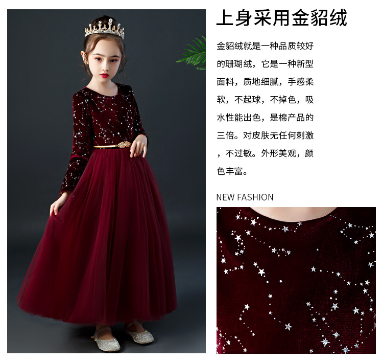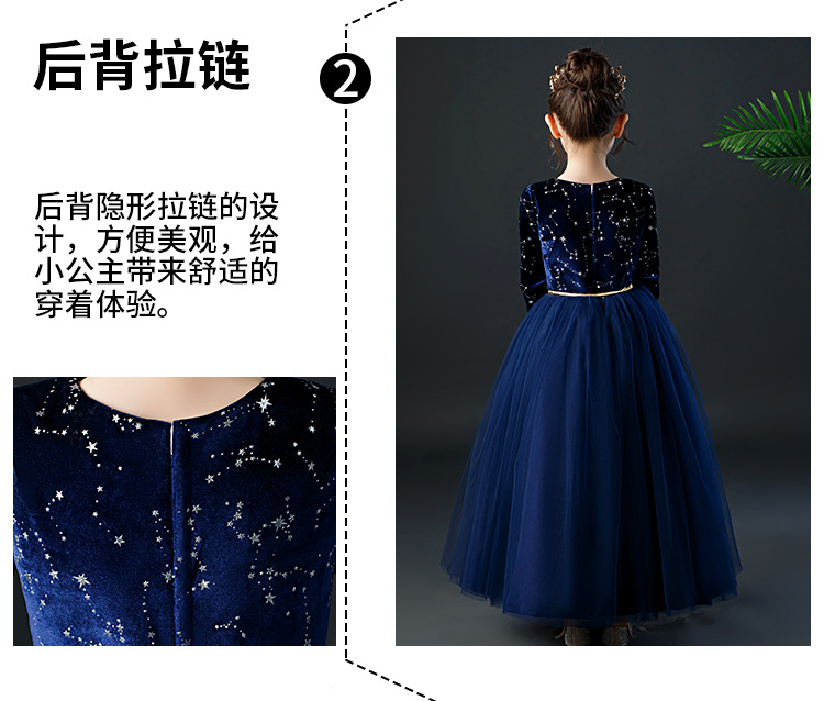 YZF-X0018儿童长款礼服裙加绒长袖公主裙长裙女童钢琴表演出服中大童装