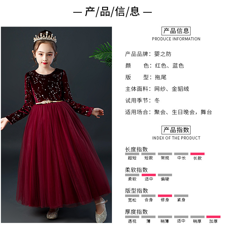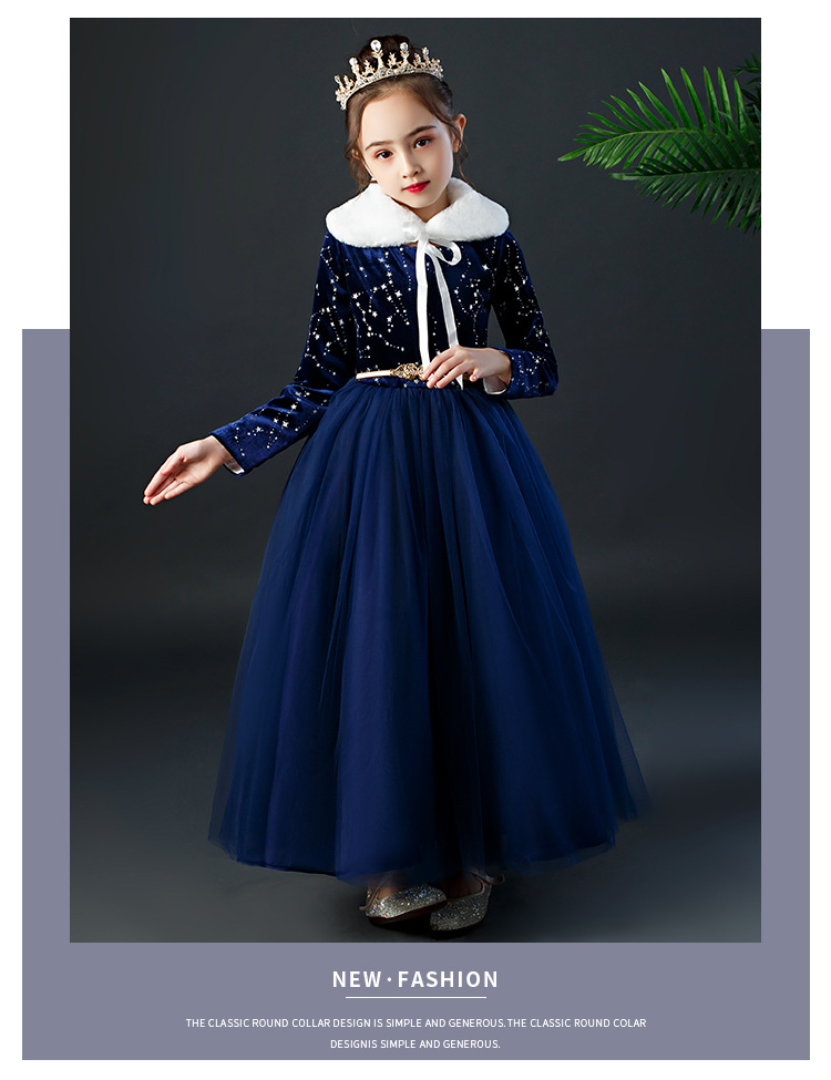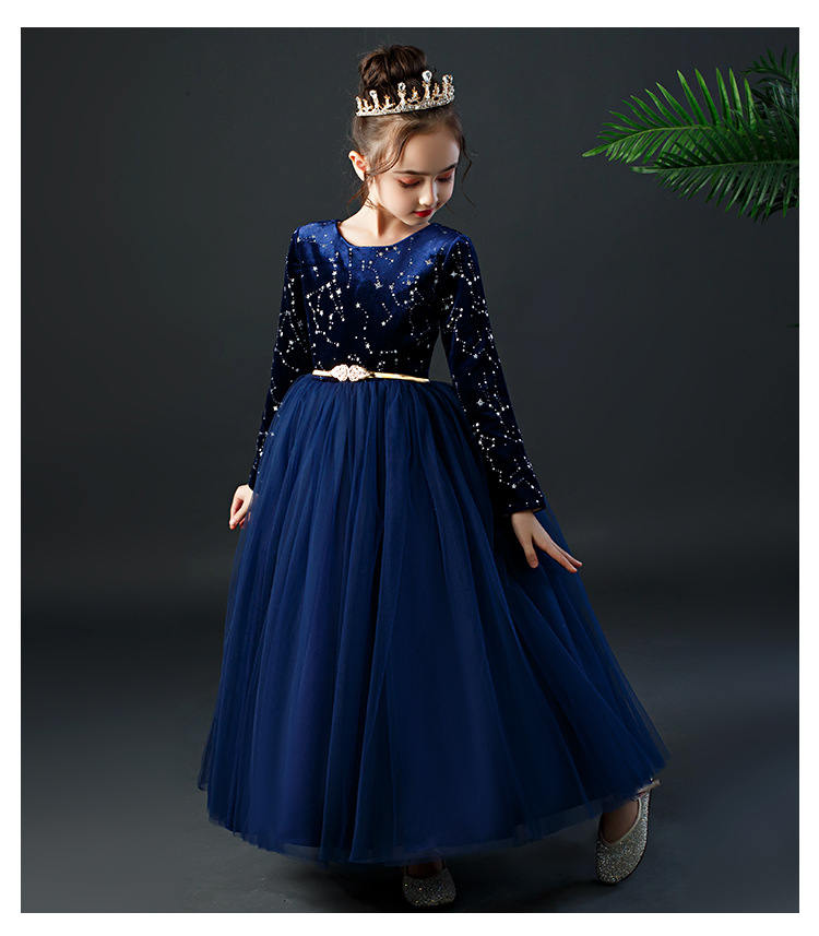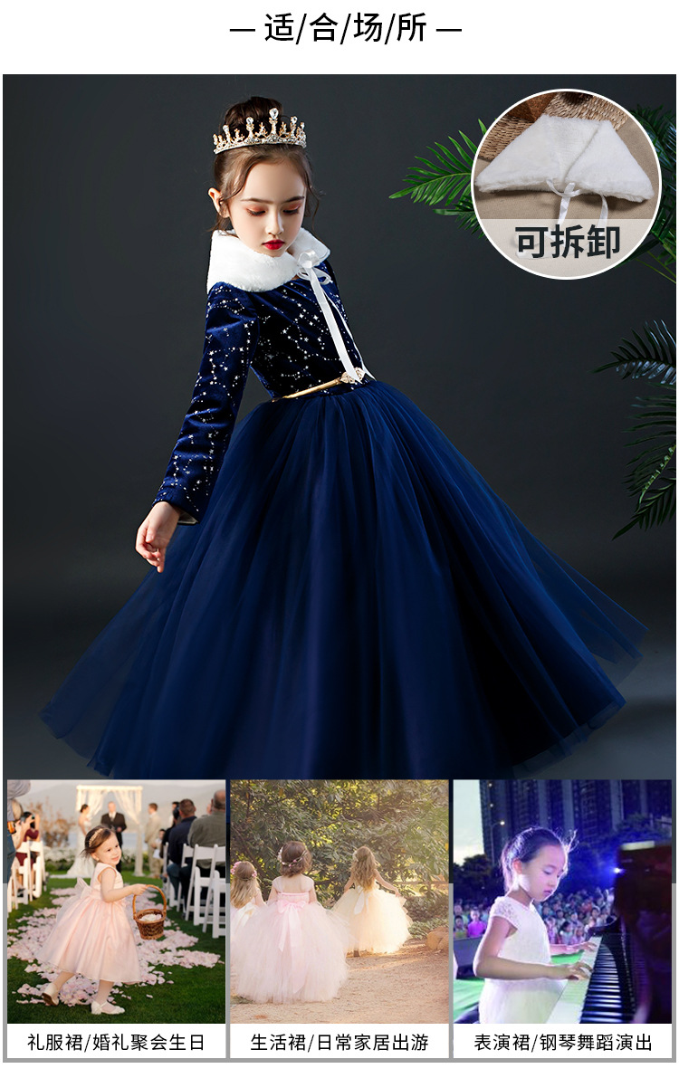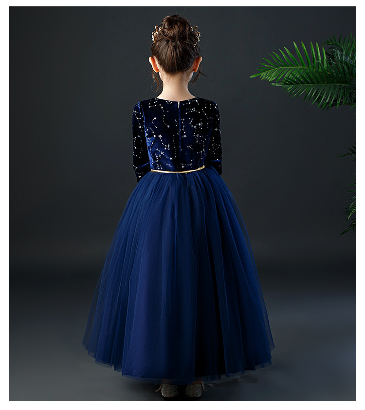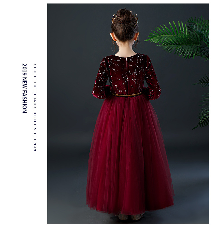 YZF-X0018儿童长款礼服裙加绒长袖公主裙长裙女童钢琴表演出服中大童装