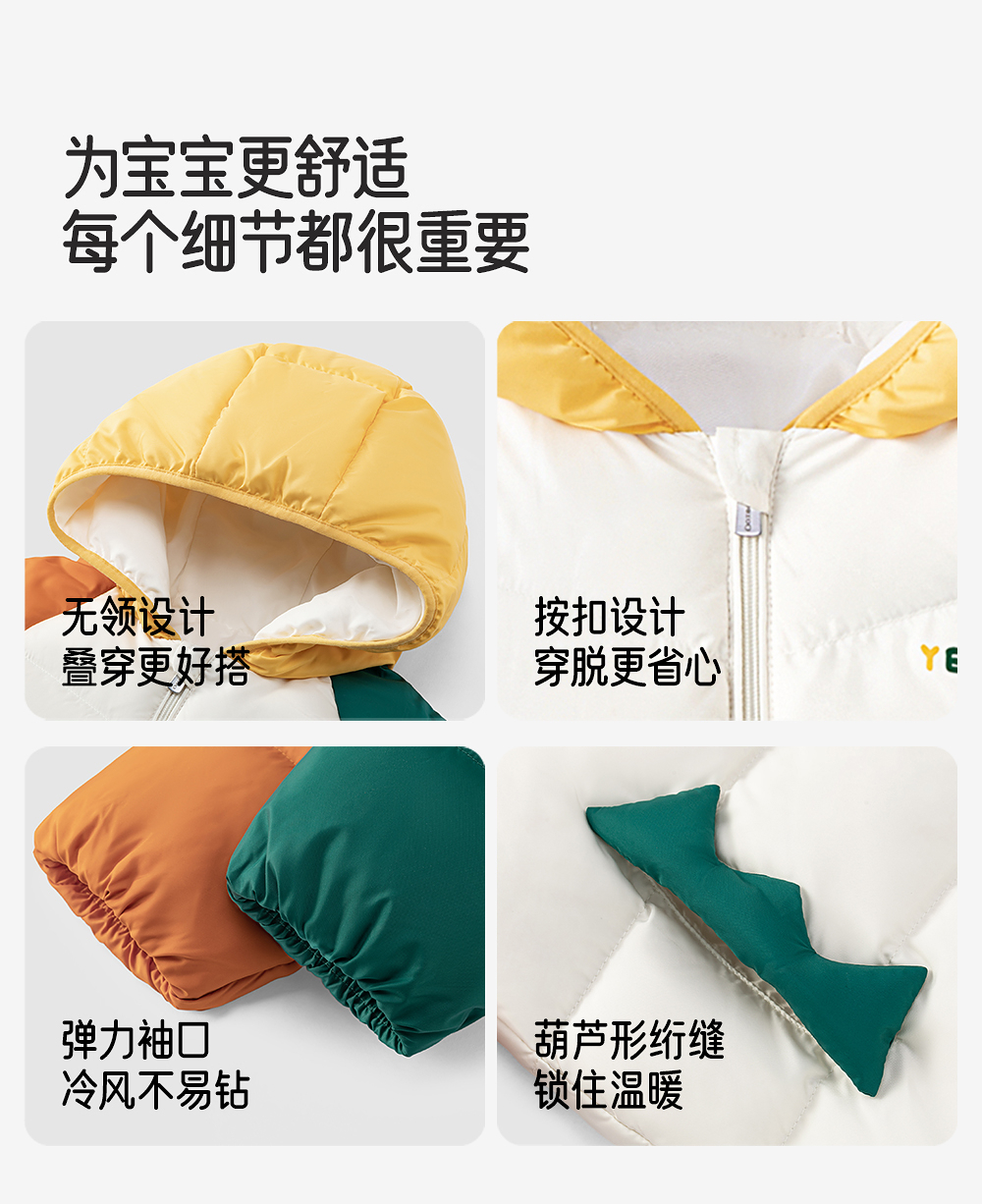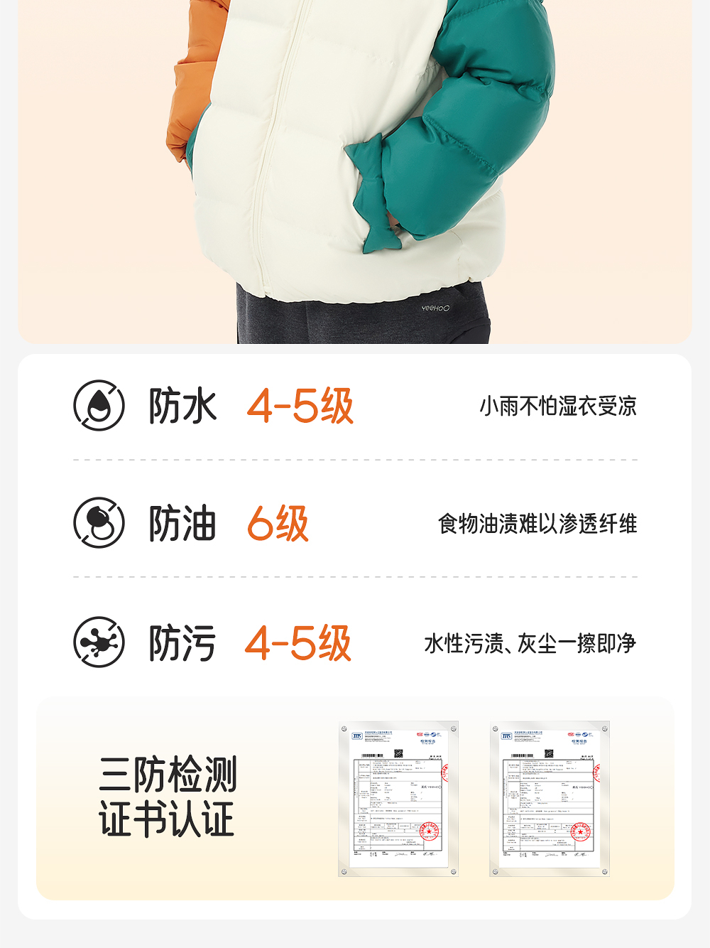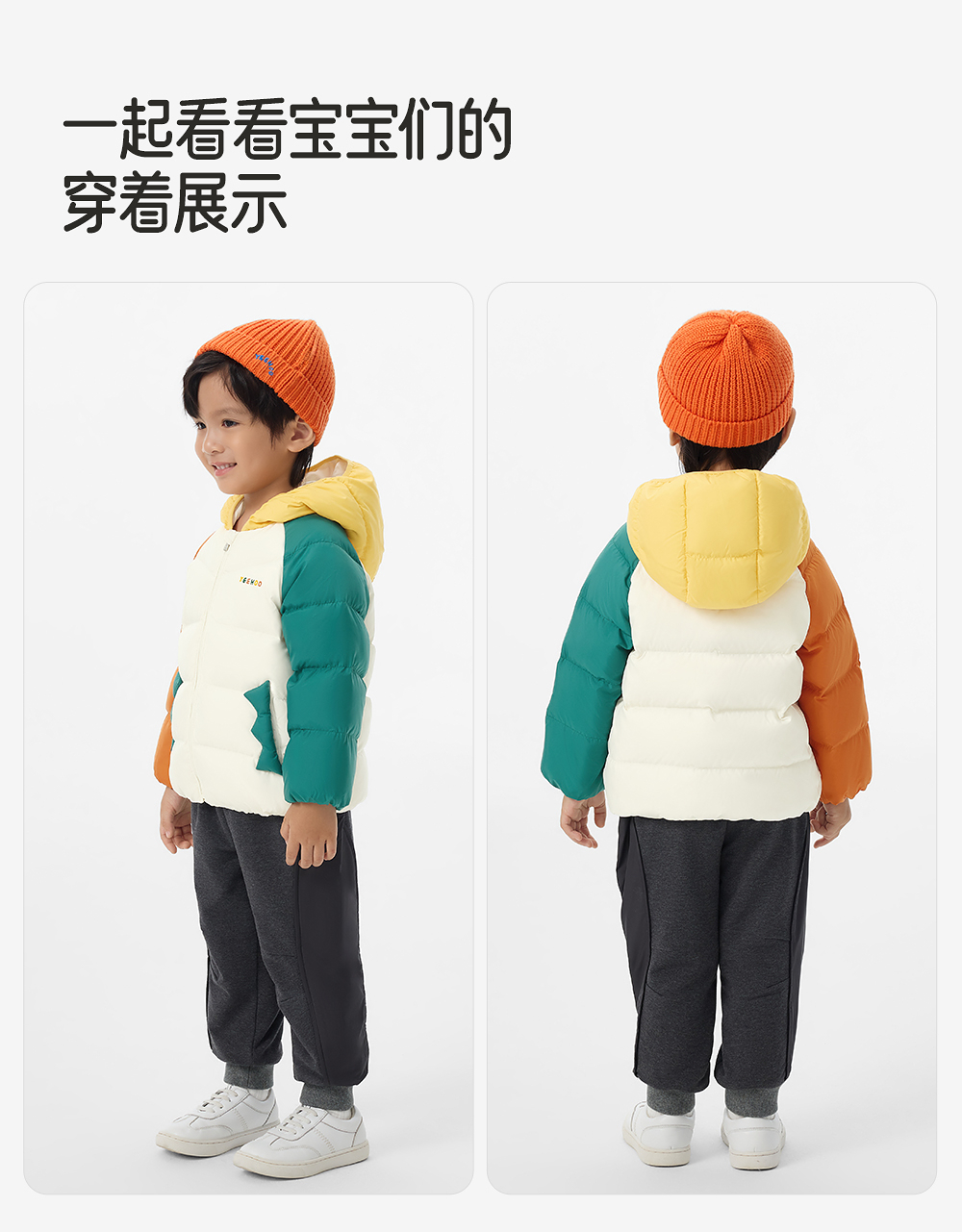 英氏童装儿童三防羽绒服冬季保暖轻薄款宝宝冬装男童秋冬新款超韧绒