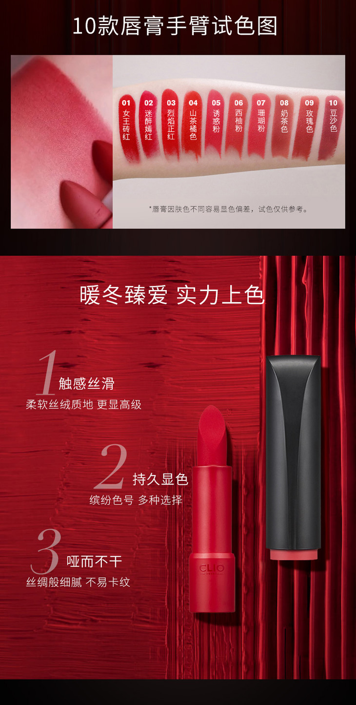 CLIO 珂莱欧小黑跟烈焰丝绒唇膏