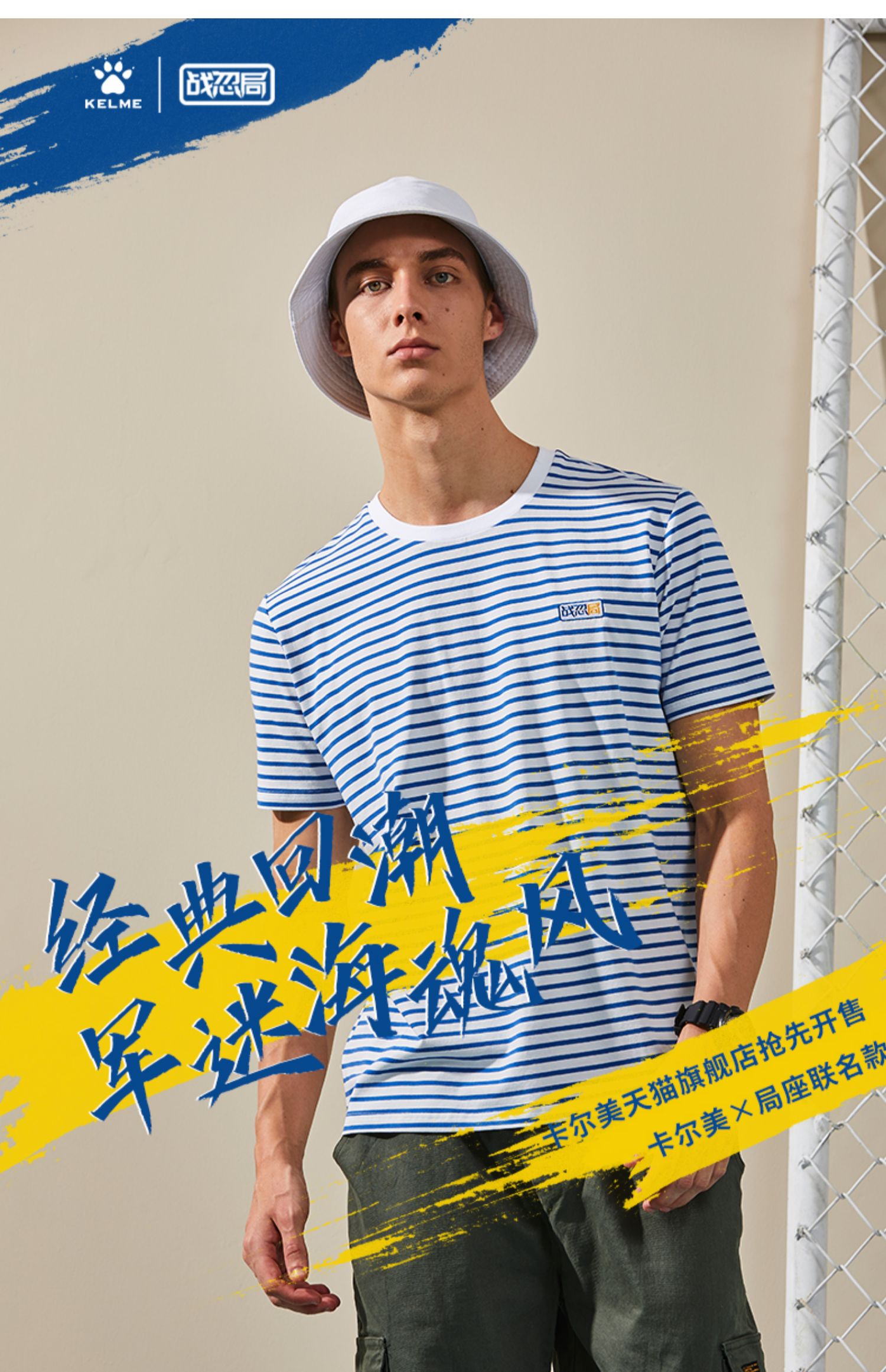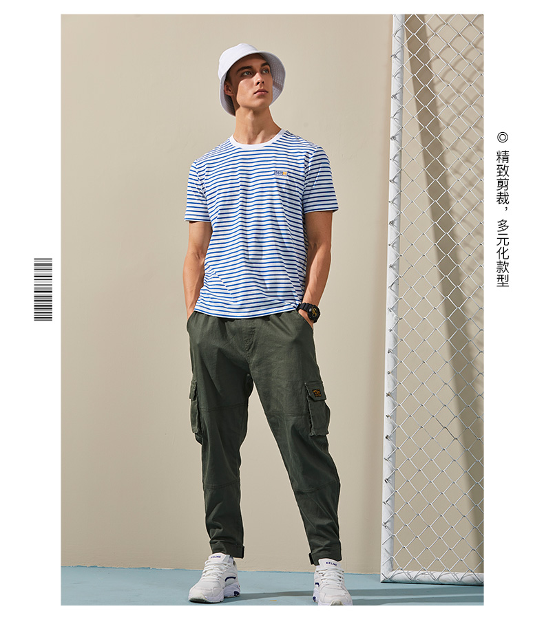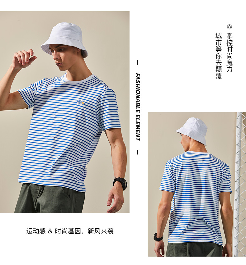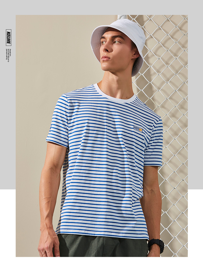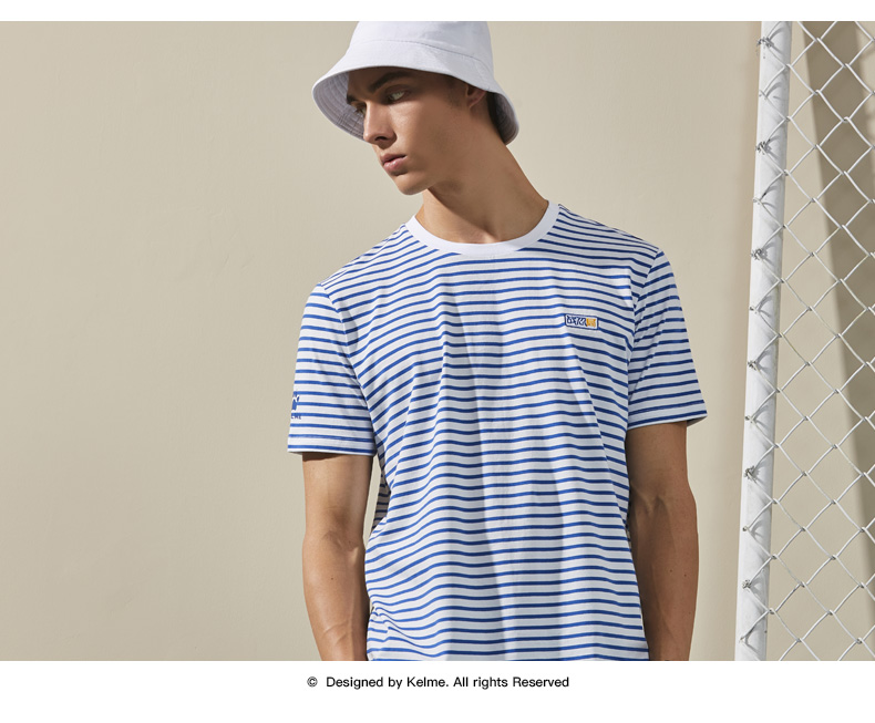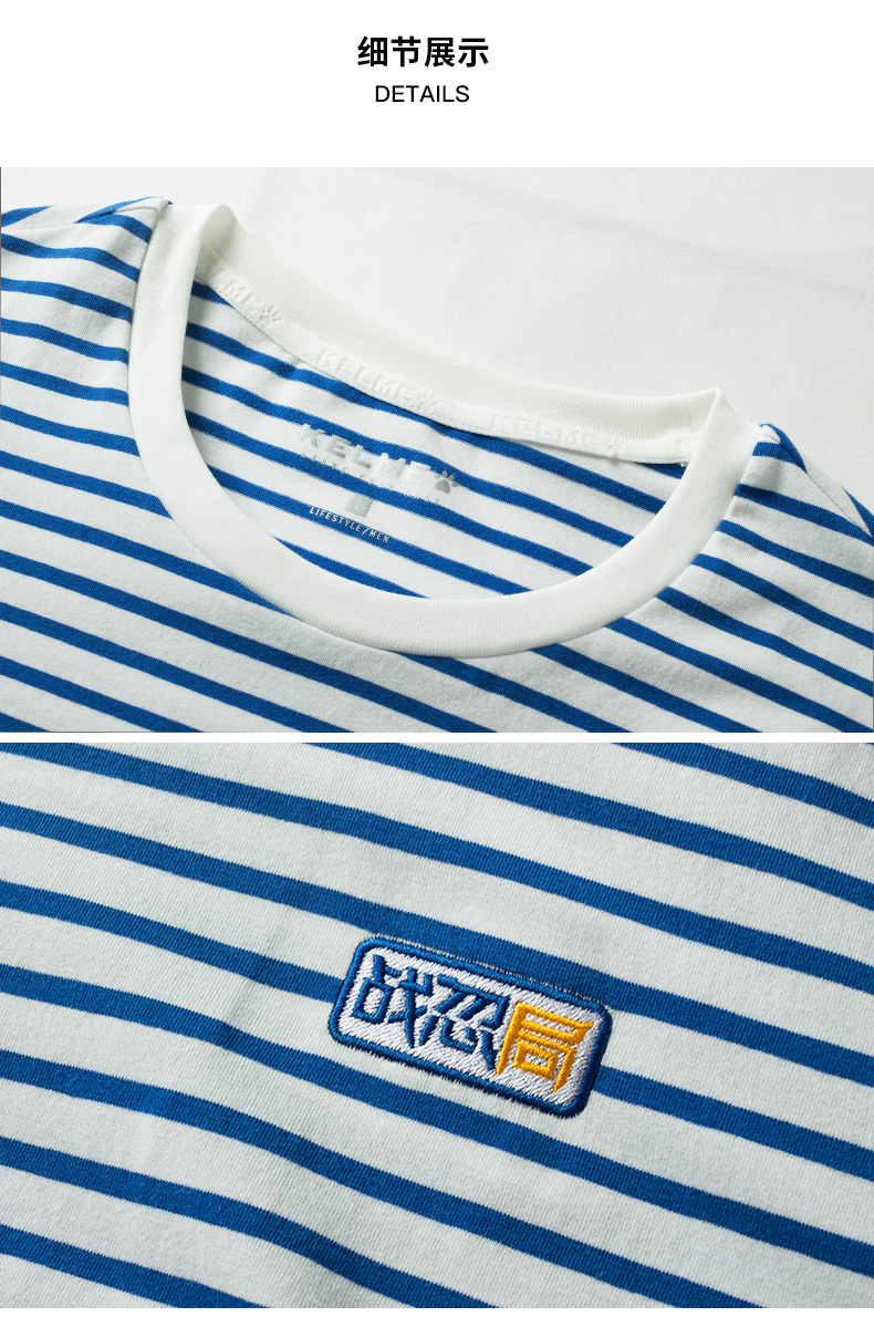 卡尔美局座联名款夏男短袖T恤秋上衣海军条纹休闲时尚短袖