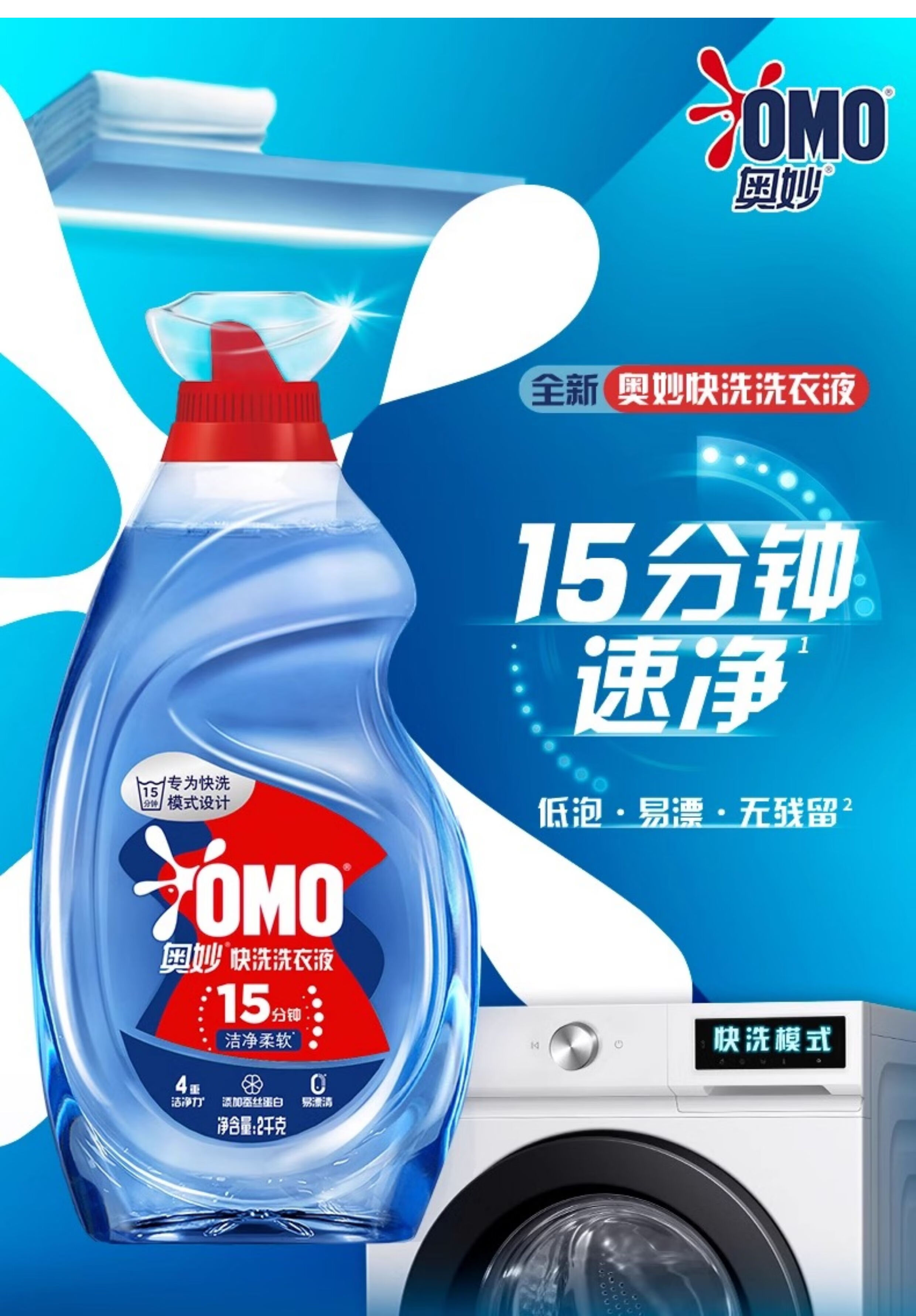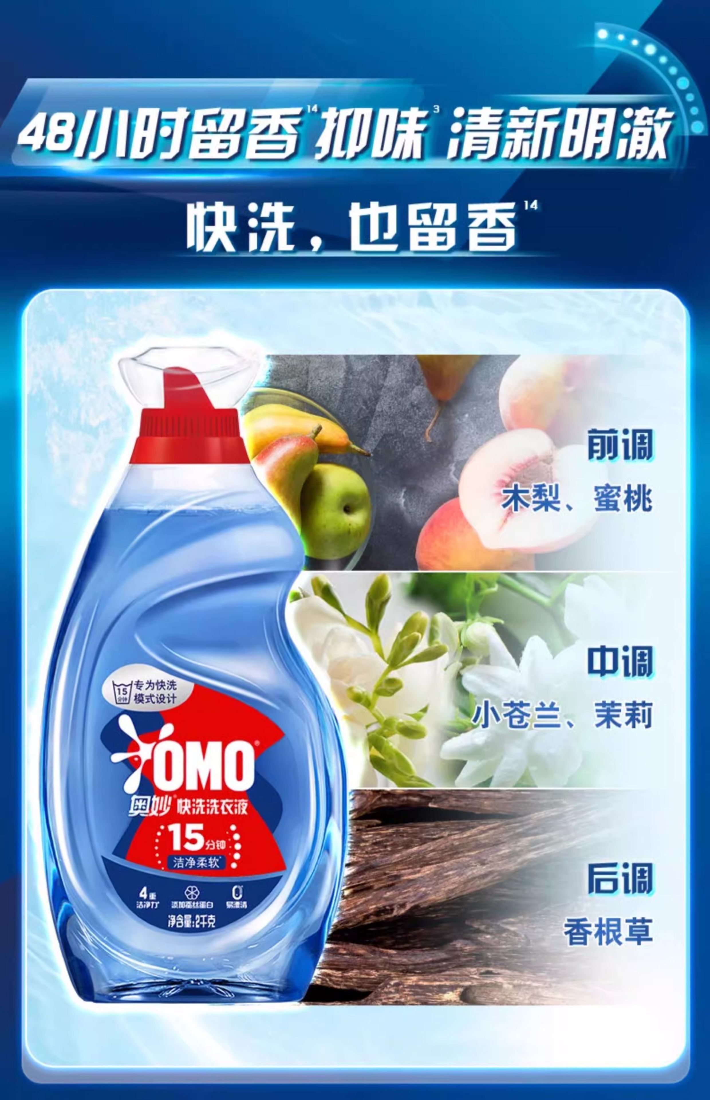奥妙快洗洗衣液大瓶木梨小苍兰持久留香官方正品 2kg