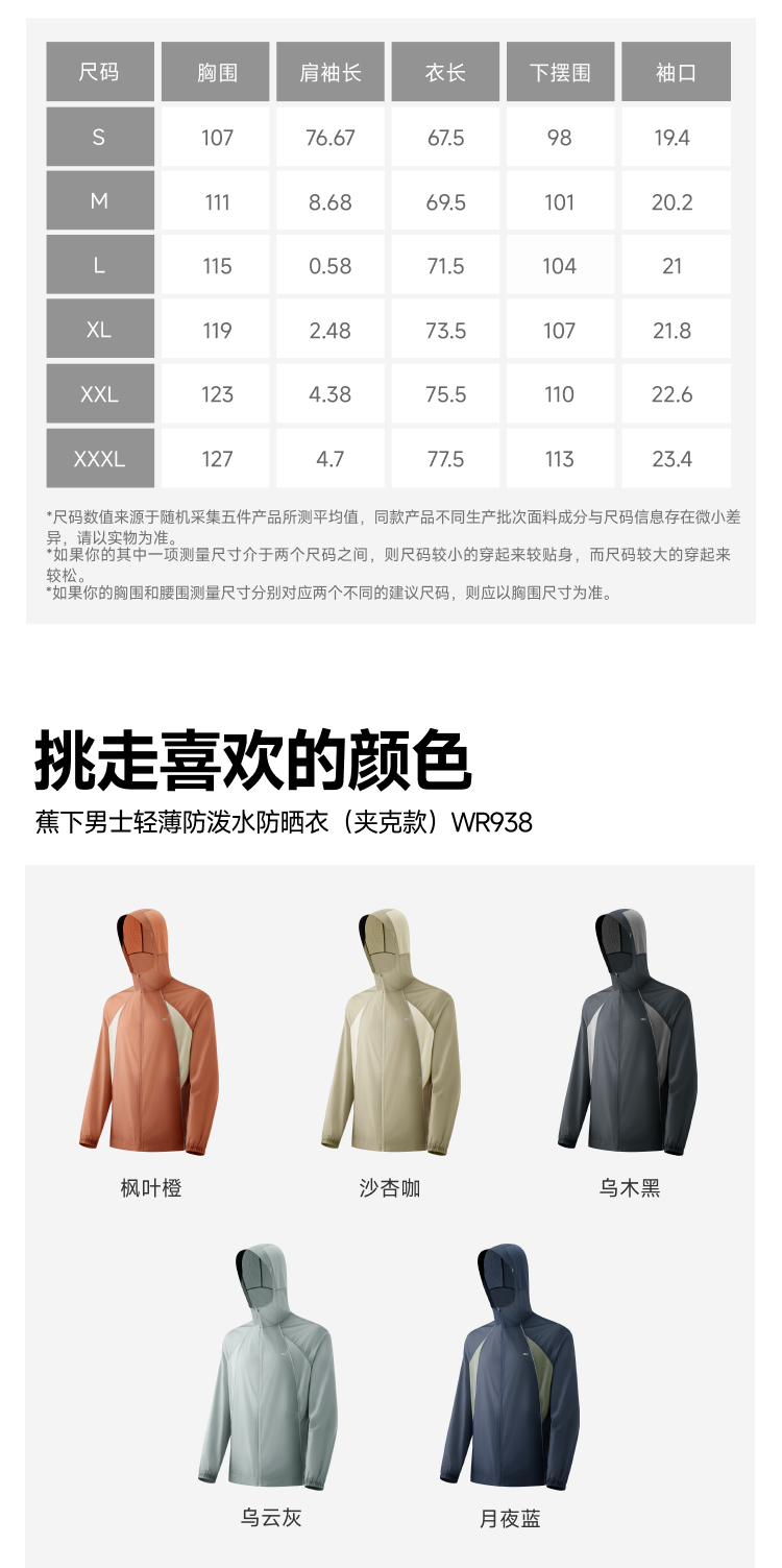 【25年新品】蕉下男士轻薄防泼水防晒衣(夹克款)WR938