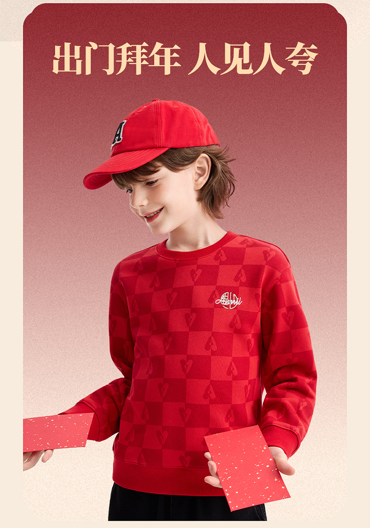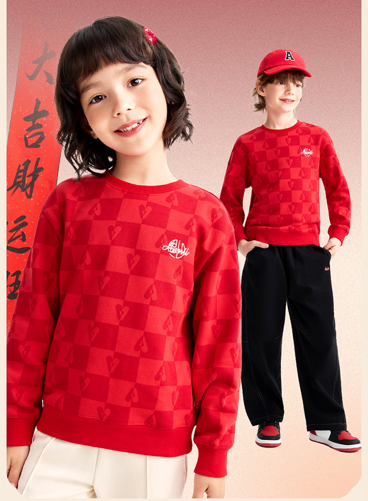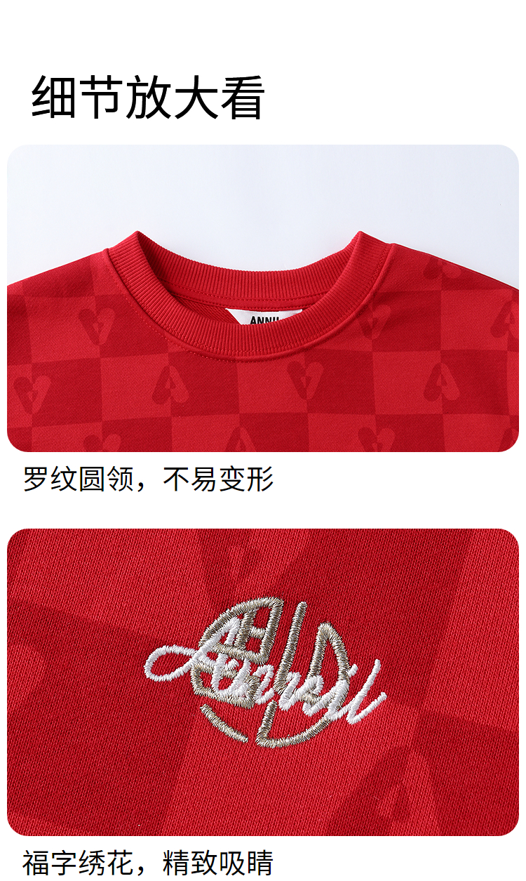 【新年波】男女童圆领长袖卫衣春季新款安奈儿童装EM611505