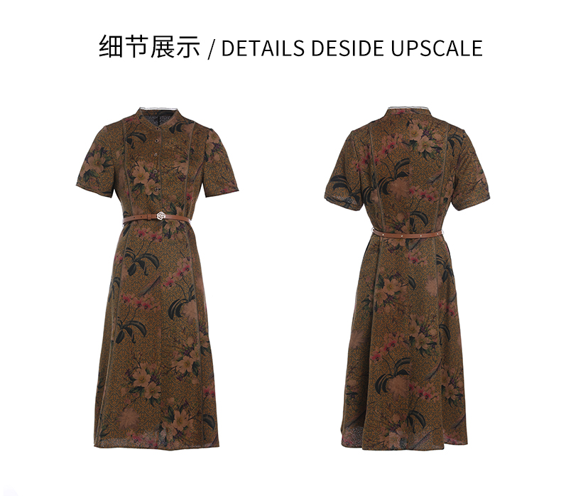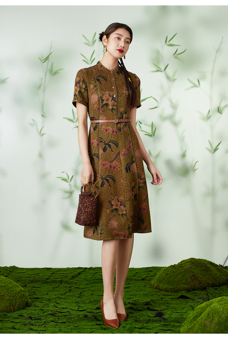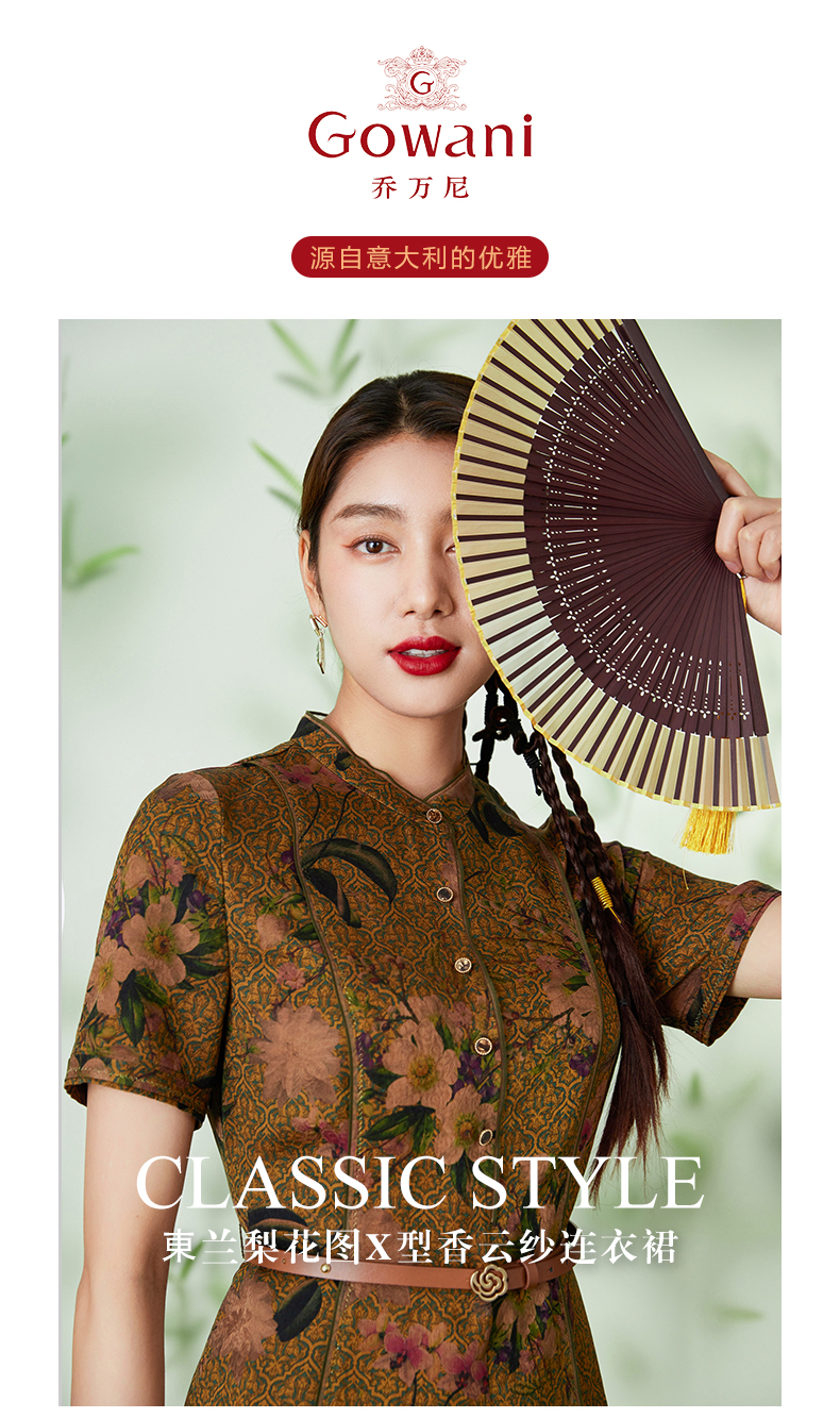 【东兰梨花图】【香云纱】乔万尼19mm珍珠缎100%桑蚕丝旗袍连衣裙EM2E722