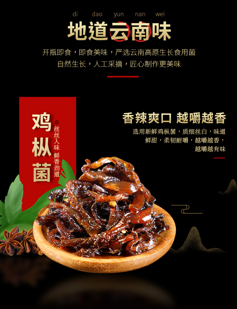 鸡枞菌与松茸、牛肝菌、干巴菌并为云南“四大名菌”,也是老派云南人格外推崇的野生菌之一。它的口感独特,浓郁鲜甜中带有动物性的肥甘,含有丰富的谷氨酸和天冬氨酸鲜味物质、蛋白质含量,也比普通菌类要高。