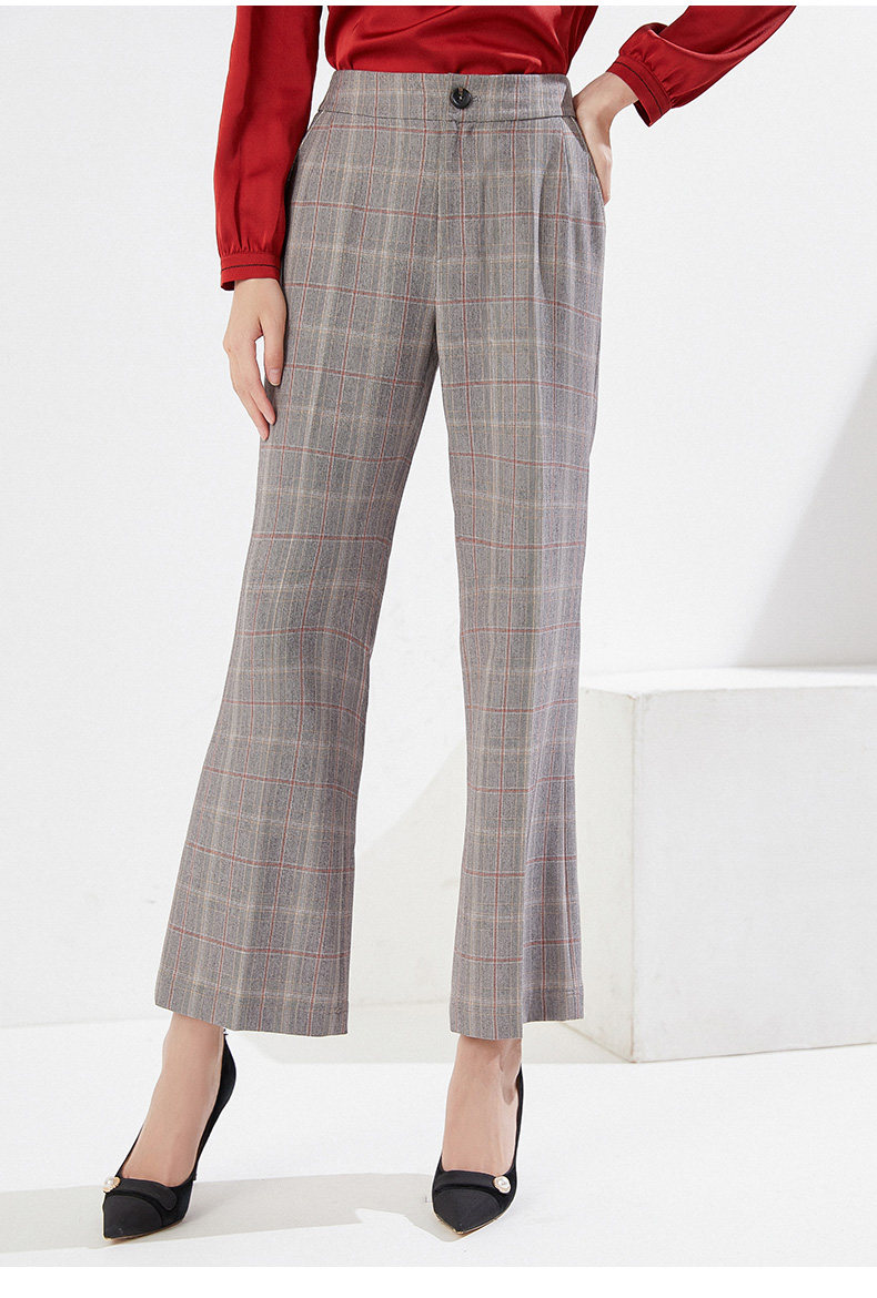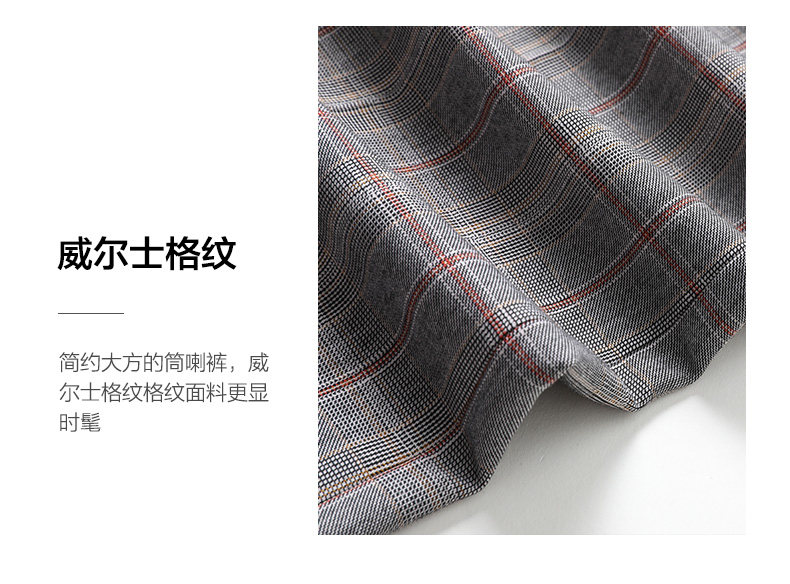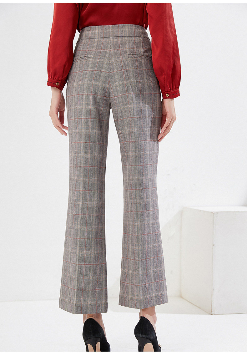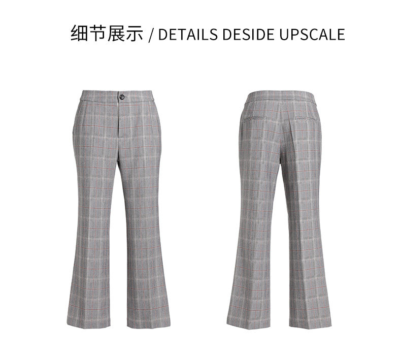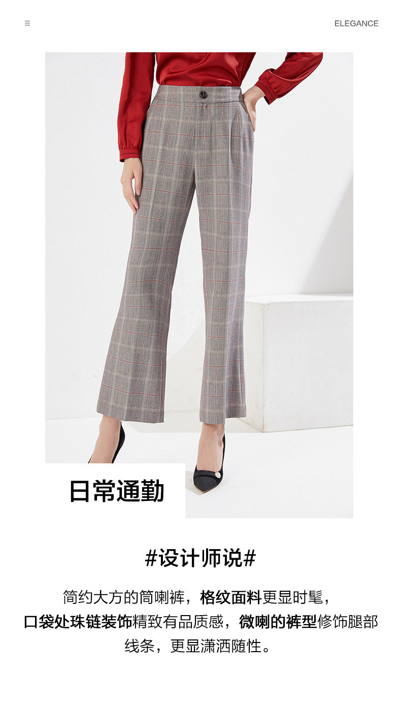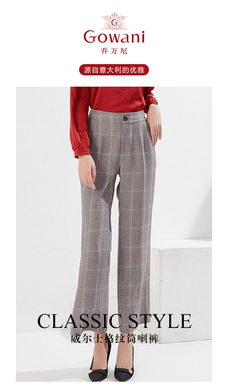 乔万尼早春新款格纹长裤气质西装裤英伦风微喇直筒裤EI3F178