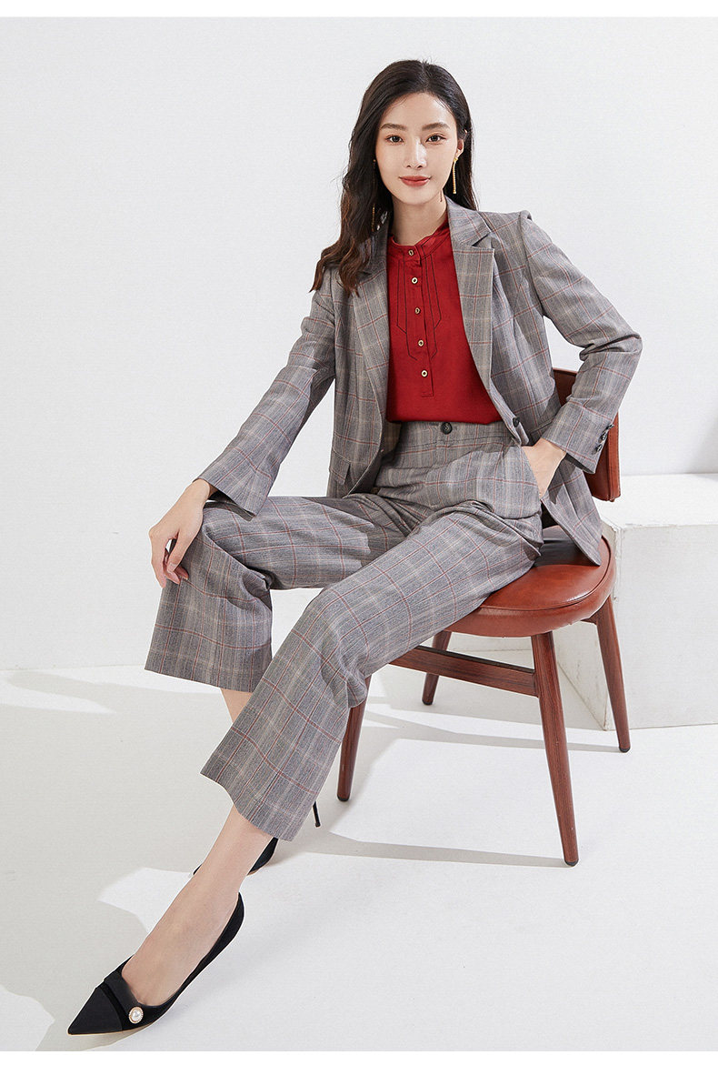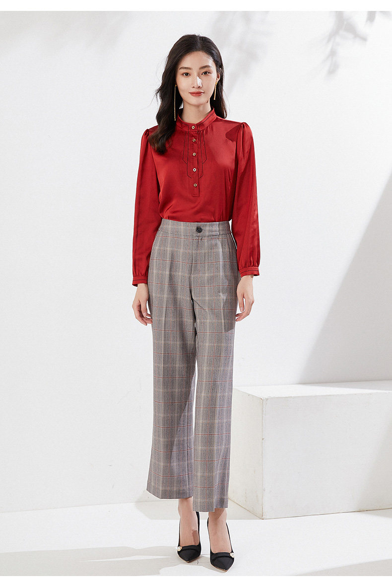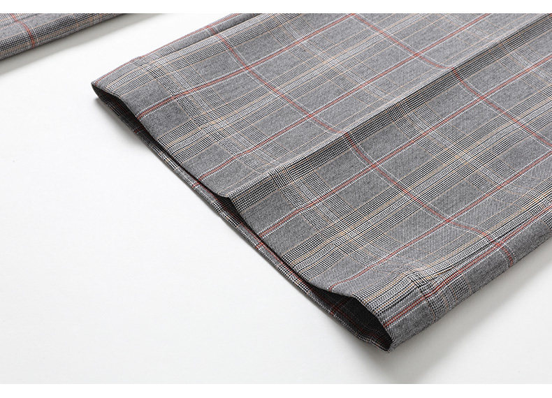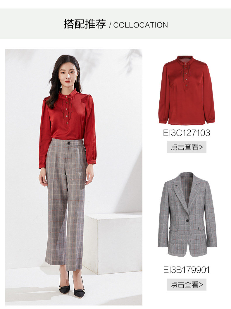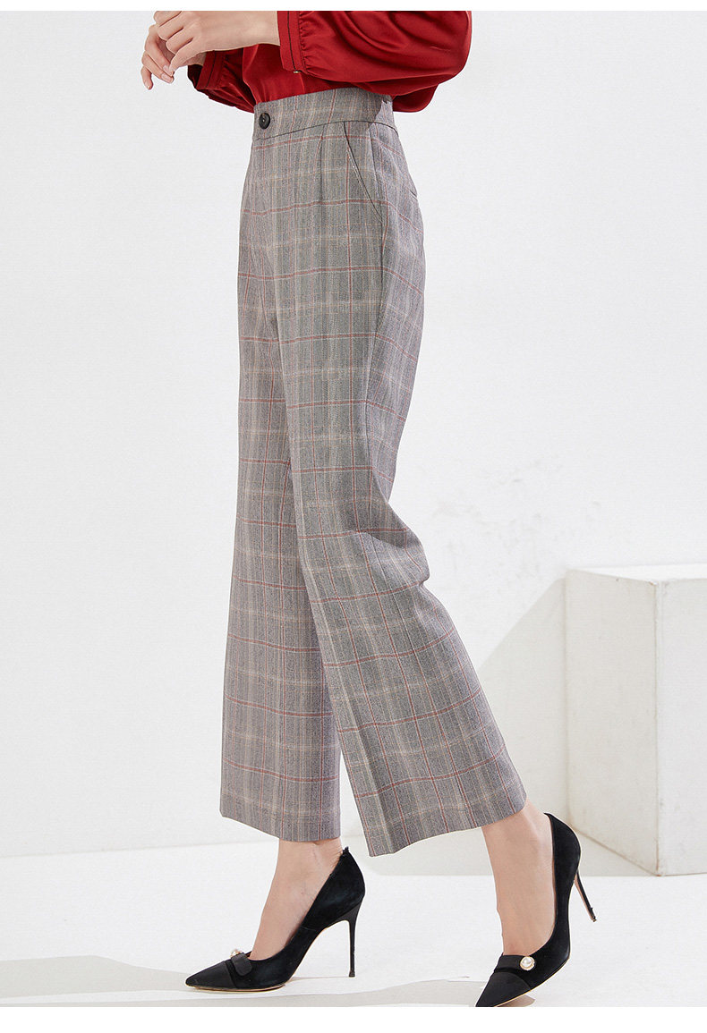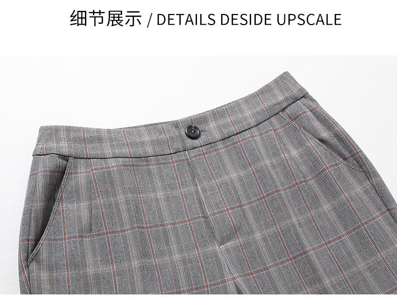 乔万尼早春新款格纹长裤气质西装裤英伦风微喇直筒裤EI3F178