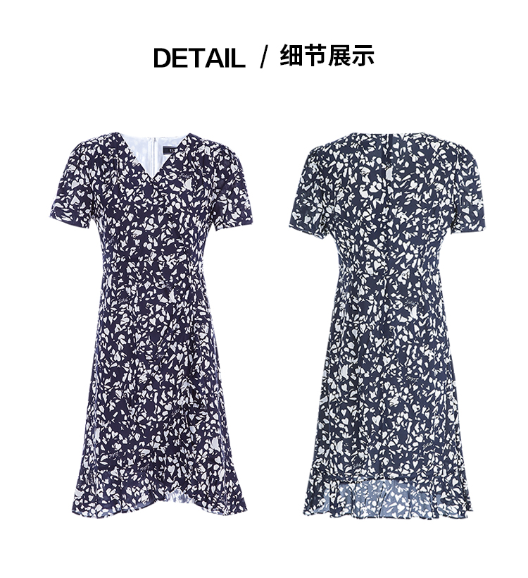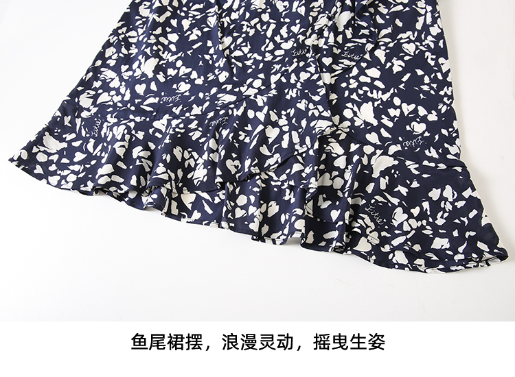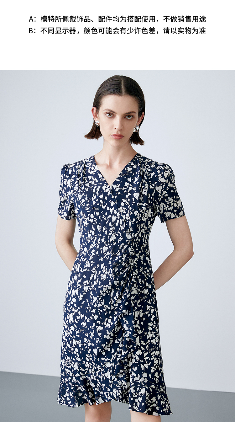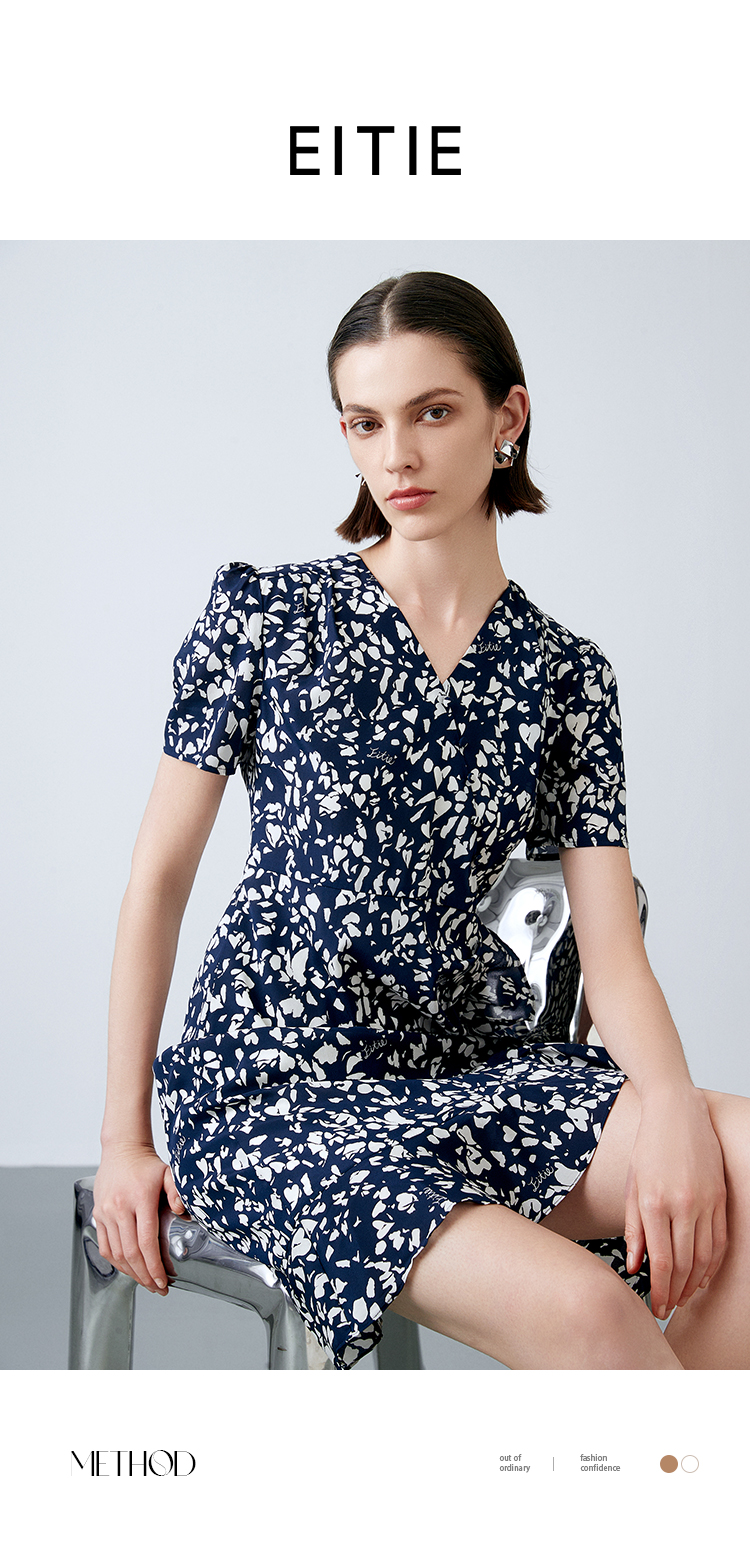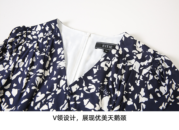 EITIE爱特爱夏季新款舒适印花V领显瘦收腰鱼尾连衣裙7807557