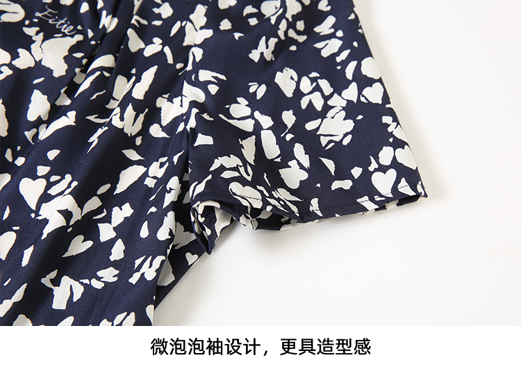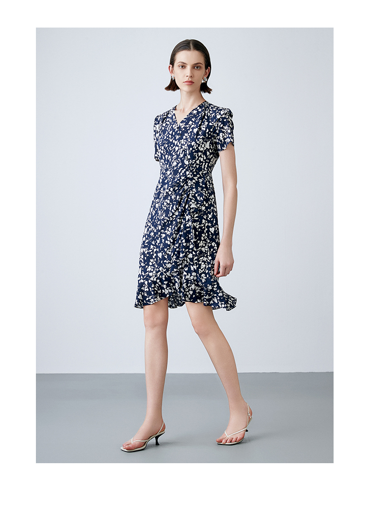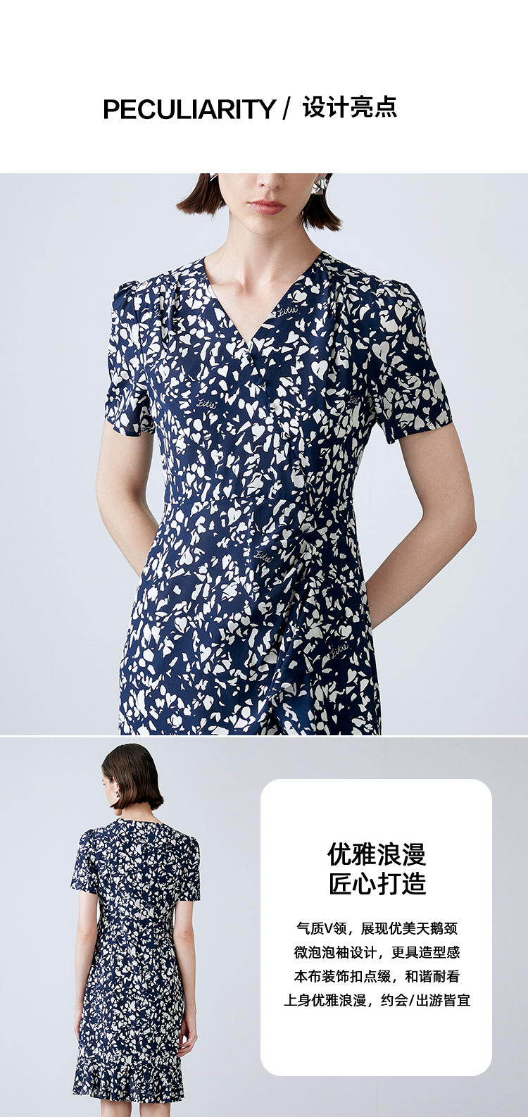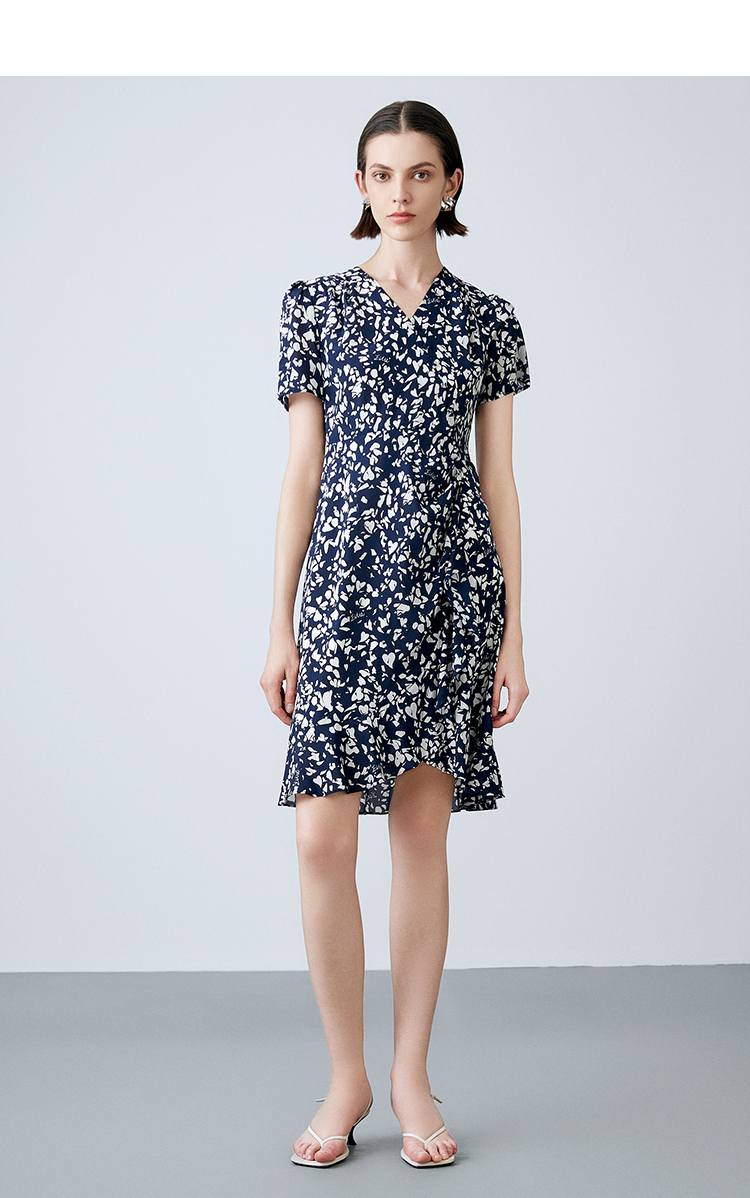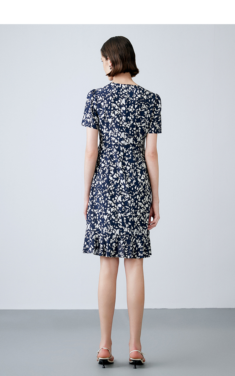 EITIE爱特爱夏季新款舒适印花V领显瘦收腰鱼尾连衣裙7807557