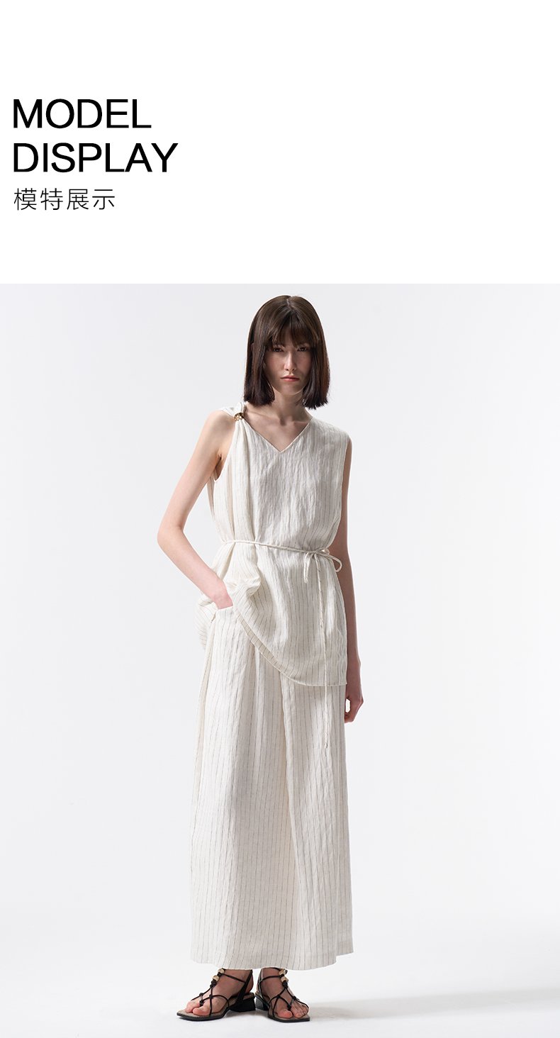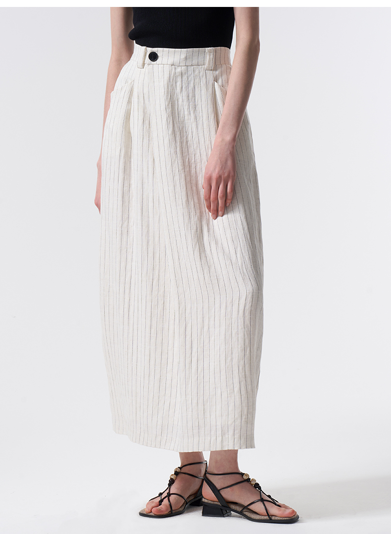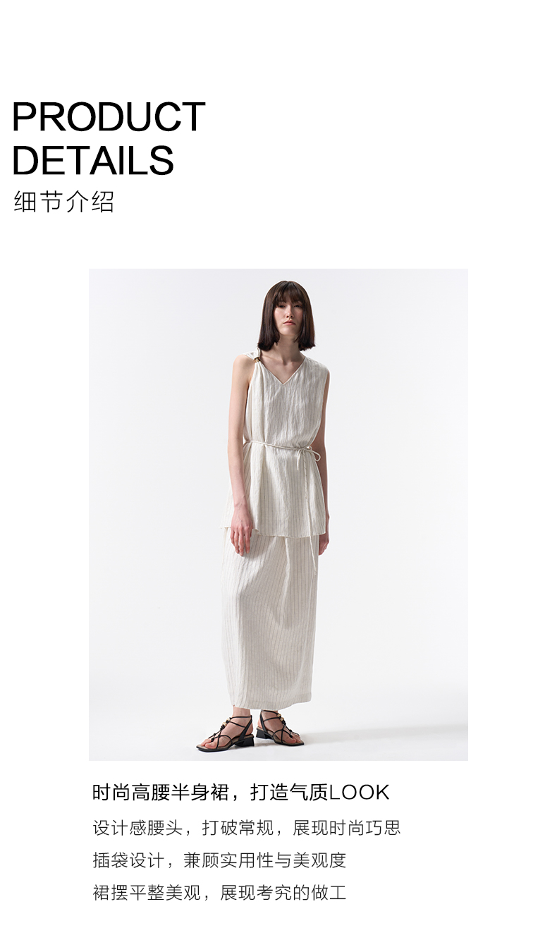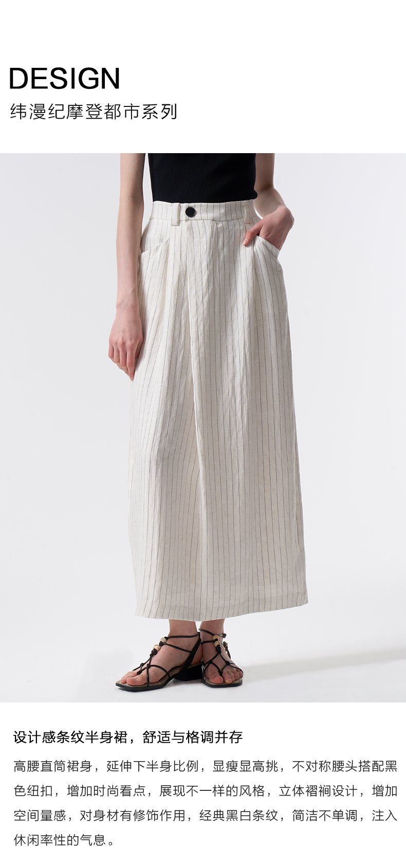 VIMAGE纬漫纪2026夏季新款简约条纹通勤百搭中长款休闲半身裙V2506211