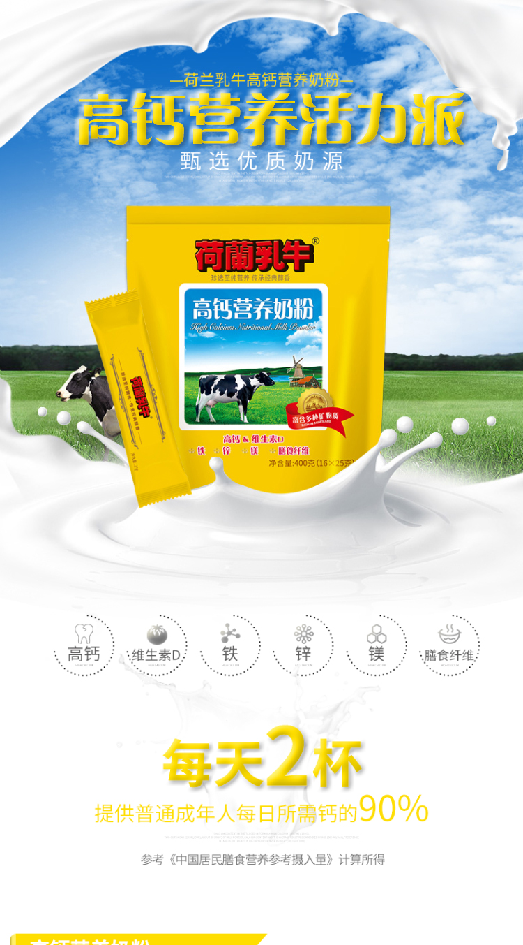 荷兰乳牛 高钙营养奶粉 400g袋装(16*25g)(2025年12月产)