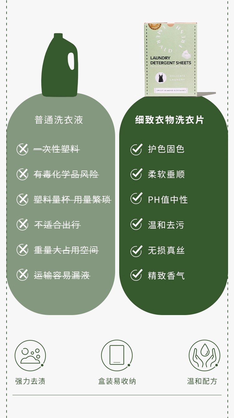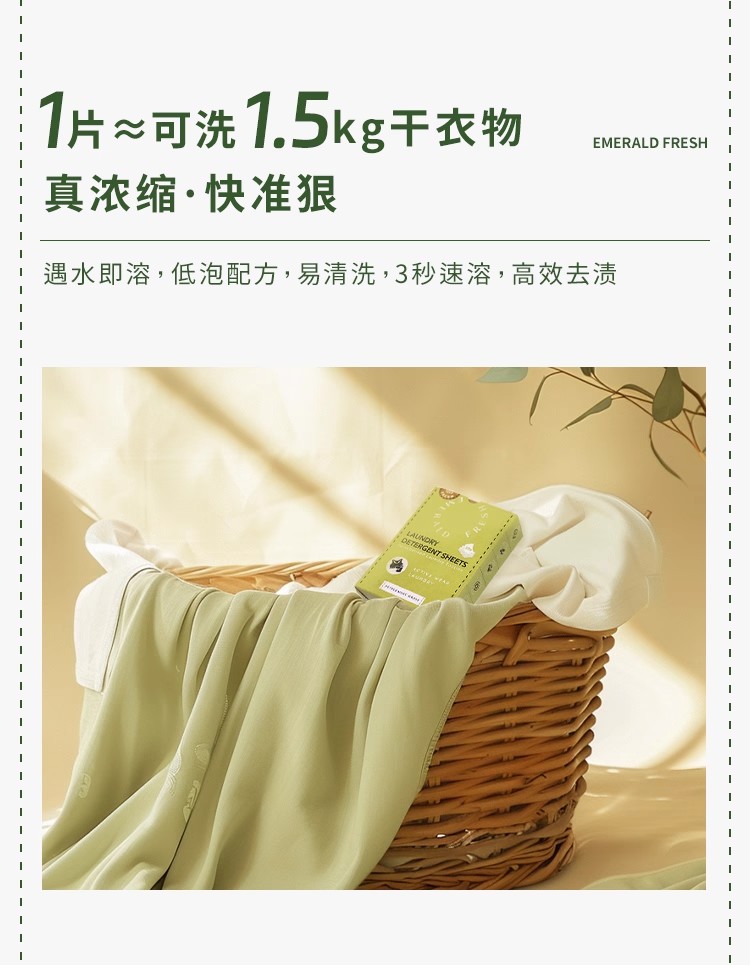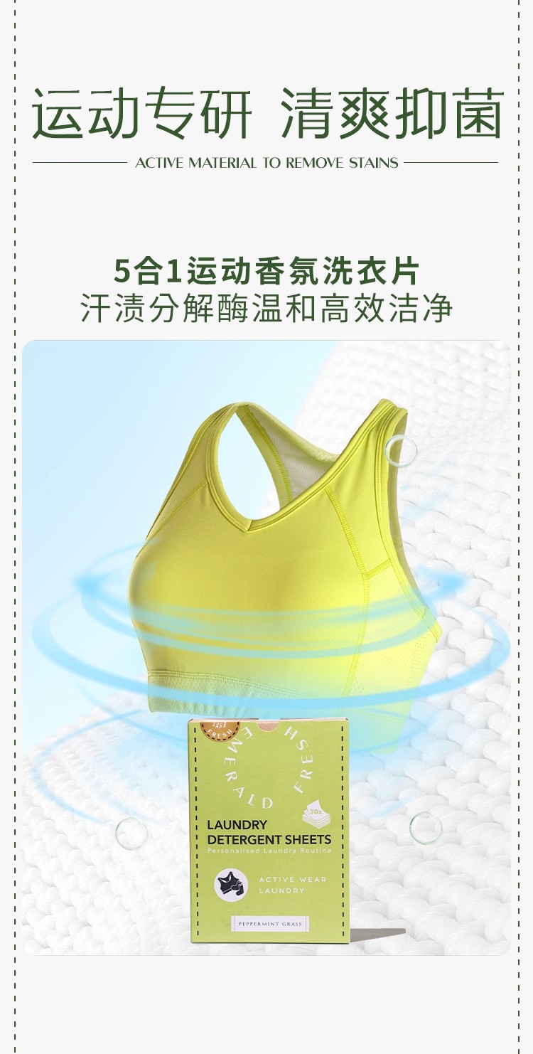 EmeraldFresh绿裁运动细致羊毛除菌进口洗衣片持久留香除螨柔顺去污渍护色