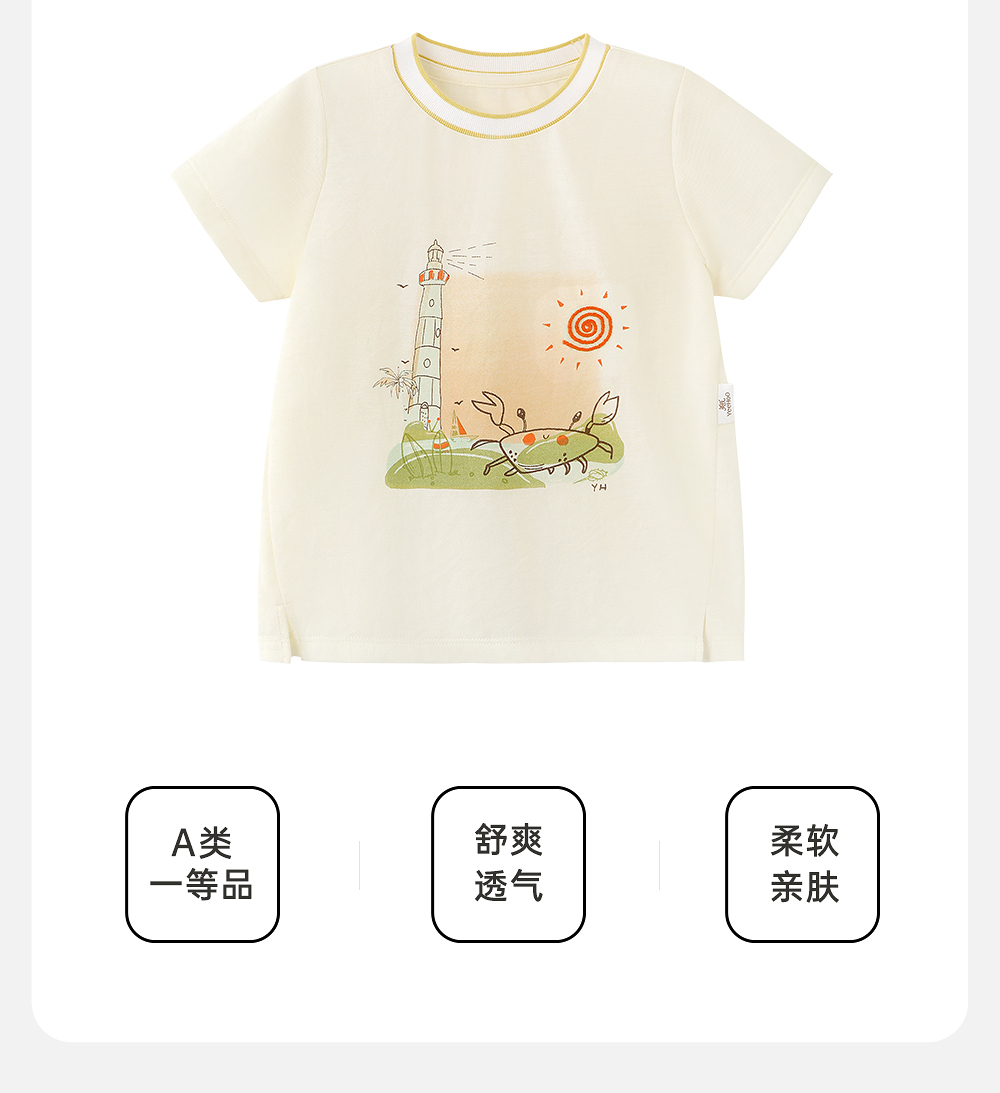 【商场同款】英氏儿童T恤夏防蚊透气短袖上衣男童休闲卡通套头衫