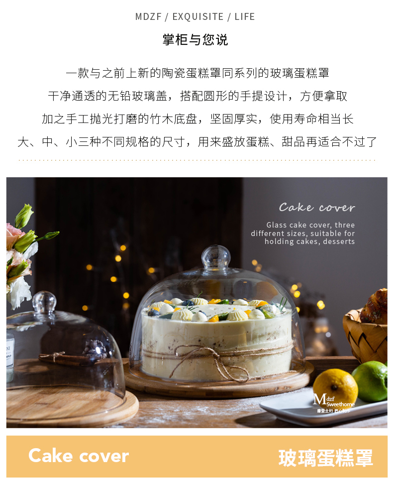 摩登主妇面包试吃盘带盖玻璃罩蛋糕托盘水果盘甜品台摆件展示架子