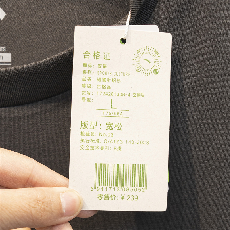 安踏男子短袖2024夏季新款透气潮流百搭运动T恤针织衫172428130R