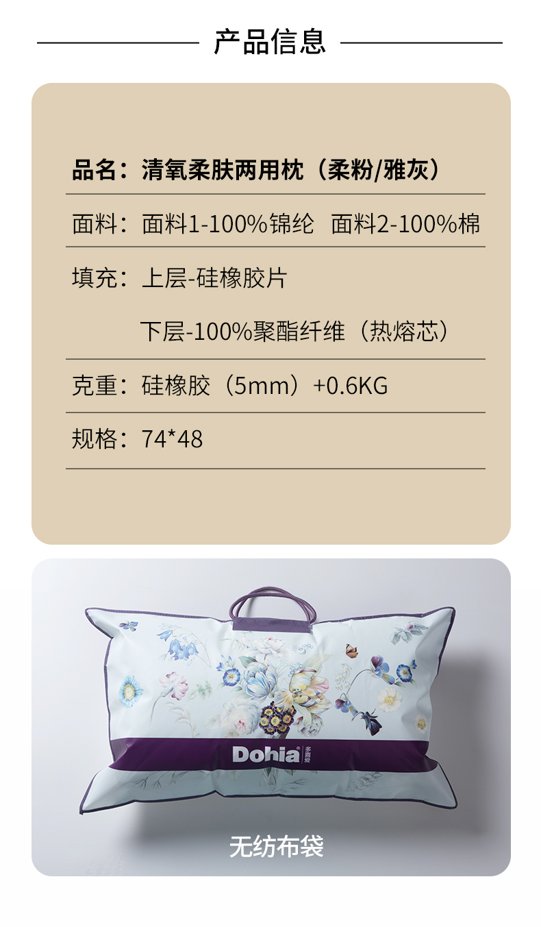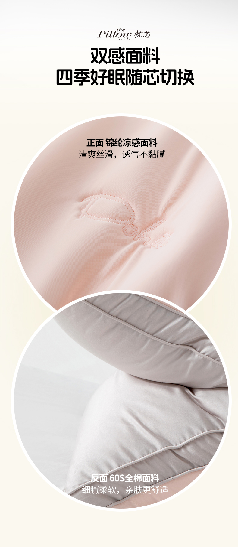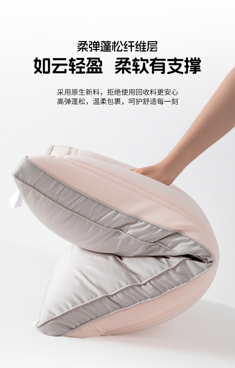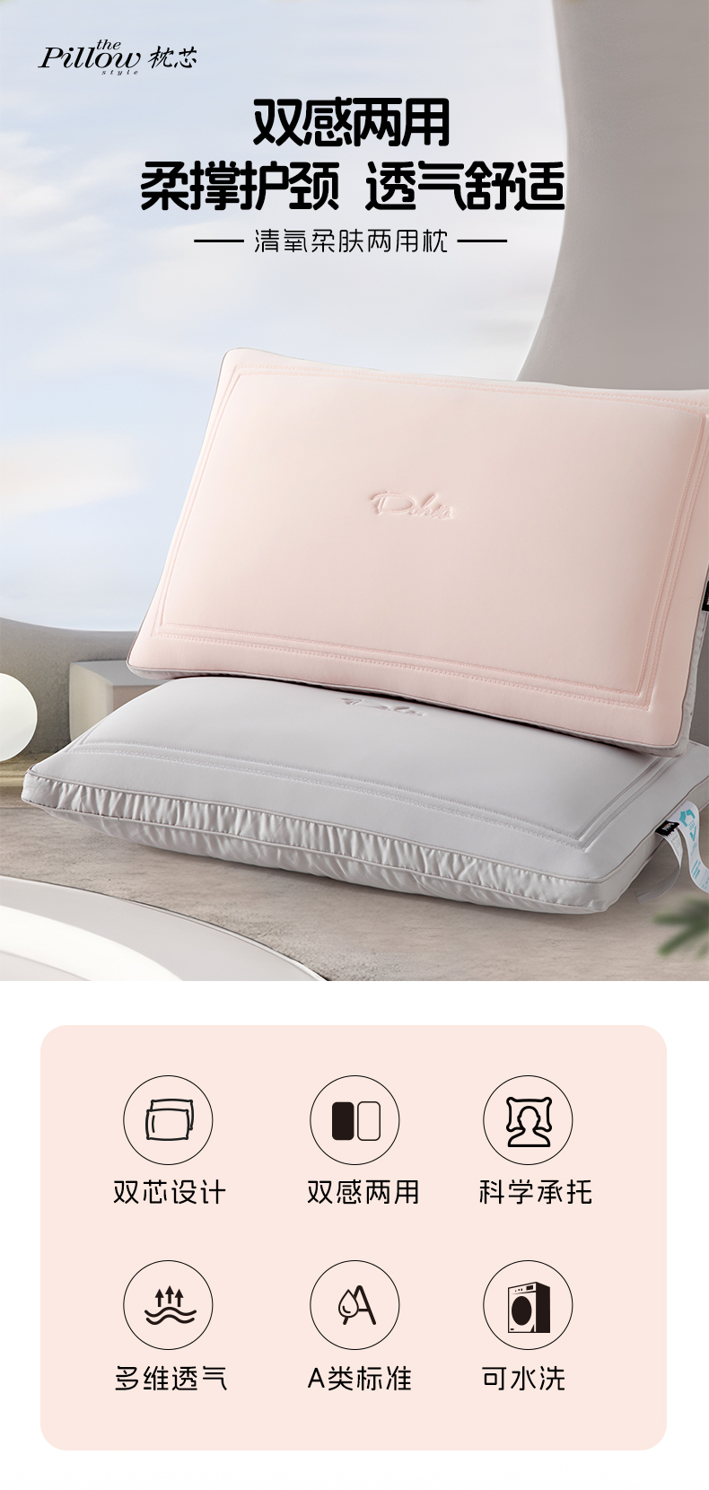 多喜爱 清氧柔肤两用枕 (柔粉/雅灰)【双感两用】【双芯设计】【A类标准】【精美包边】【极简绣花】科学承托 多维透气 可水洗 超蓬松久睡不易塌陷 立高设计