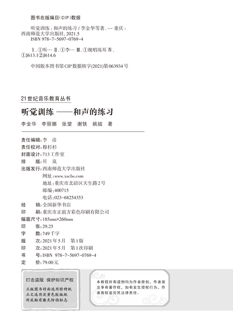 书名: 听觉训练——和声的练习 | ISBN:978-7-5697-0769-4 |