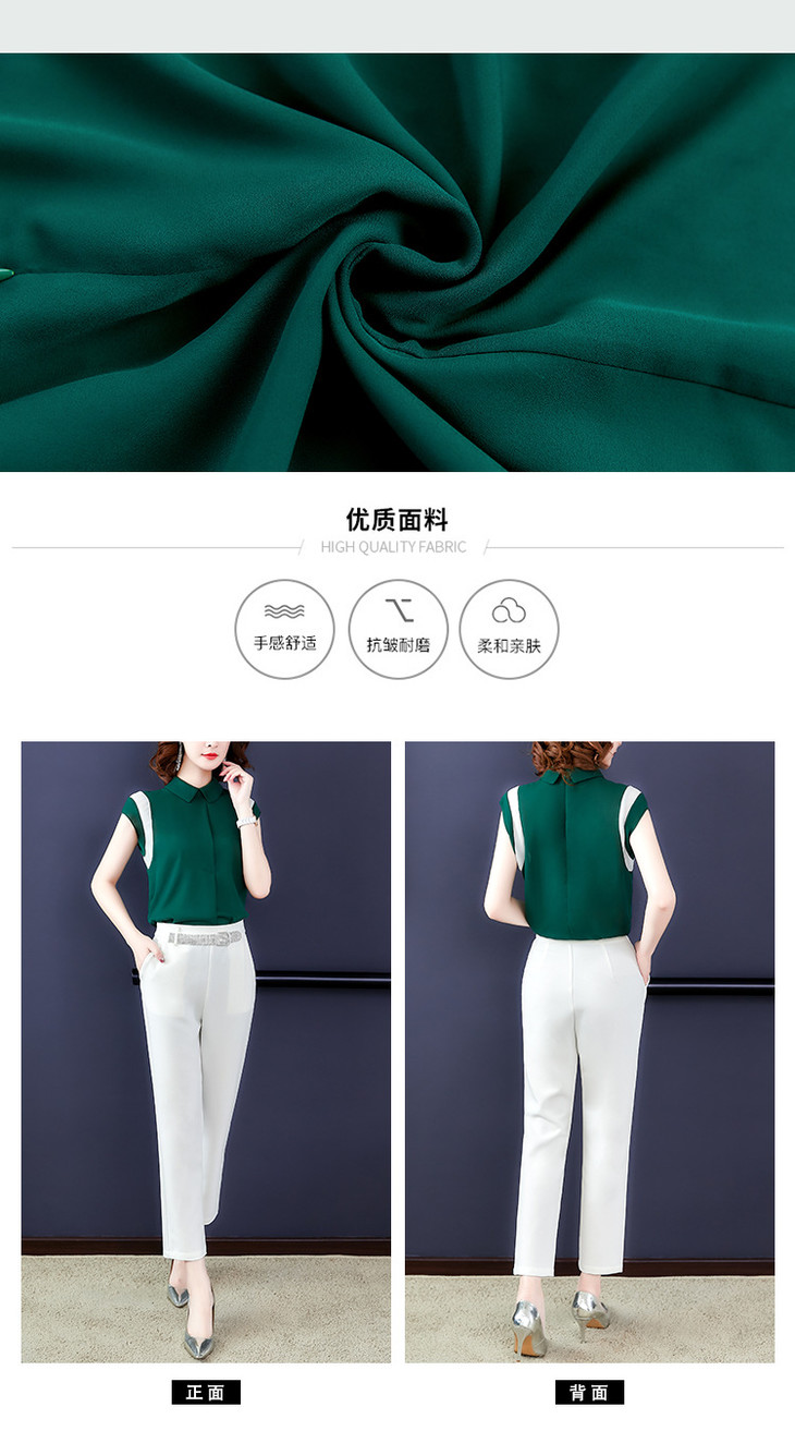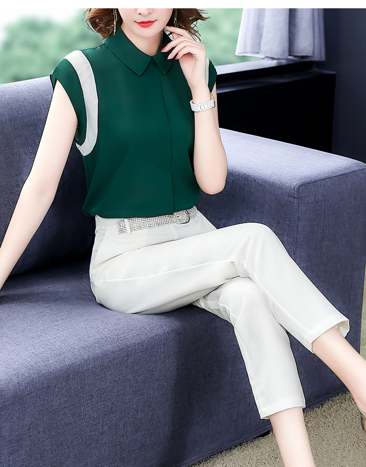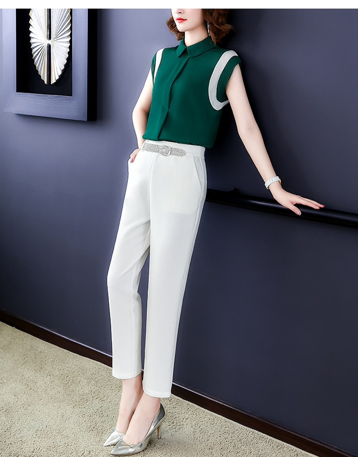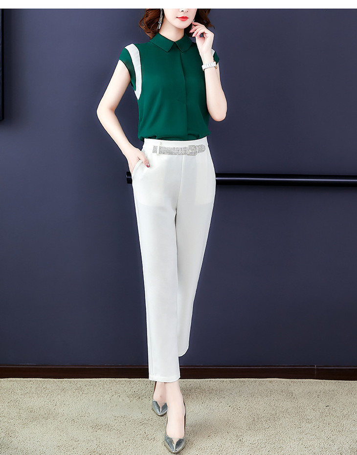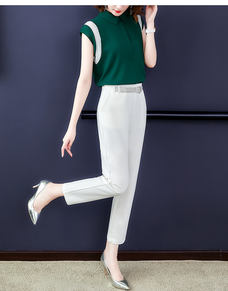 SN 4631553气质修身显瘦雪纺上衣休闲裤两件套【优】