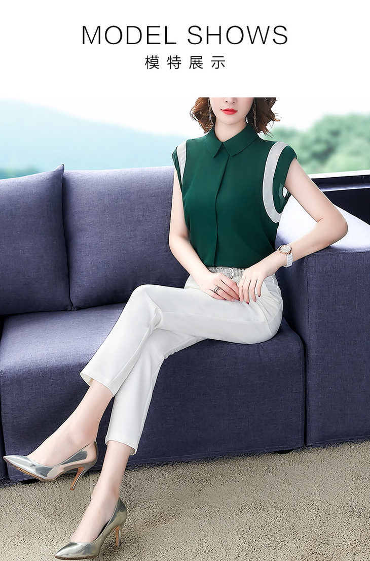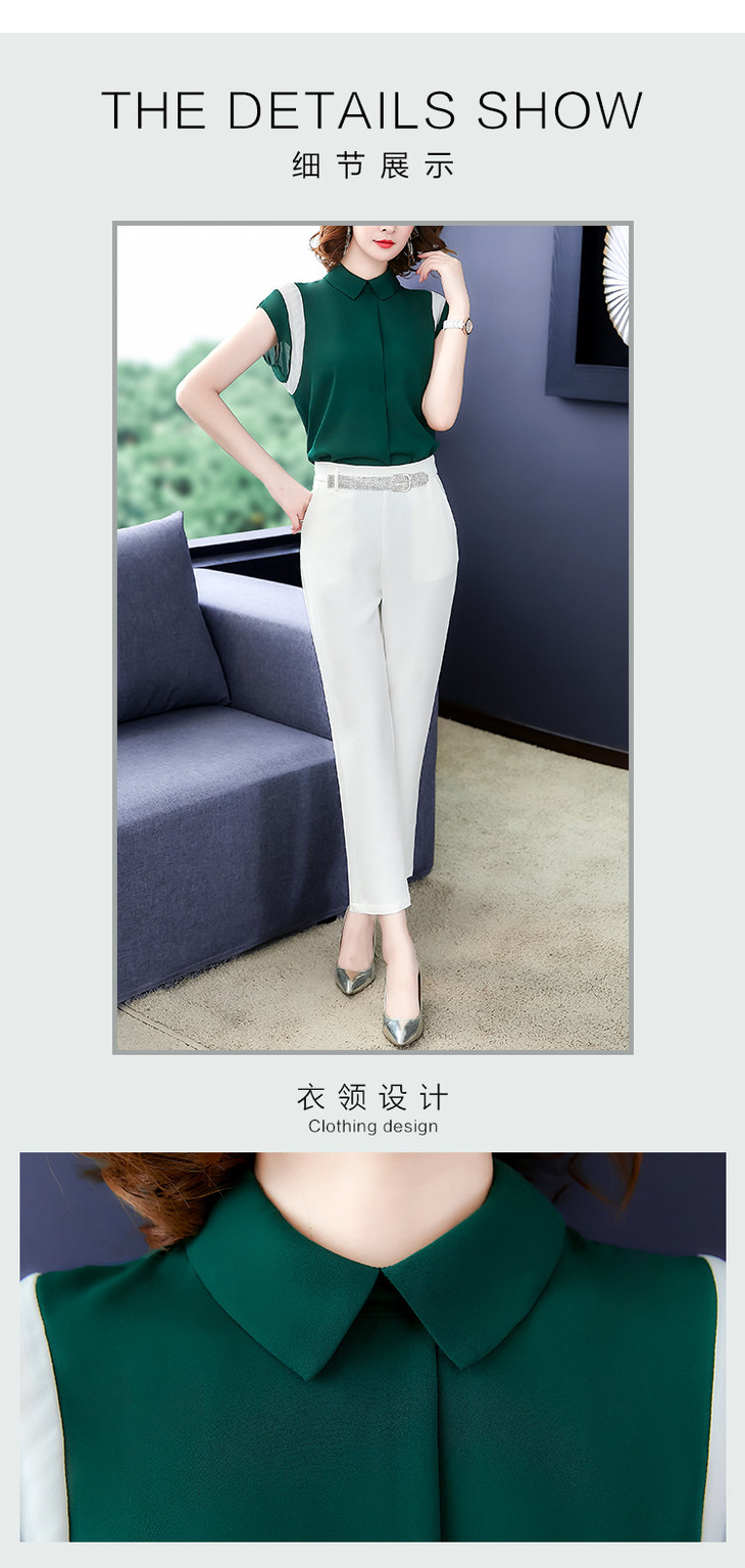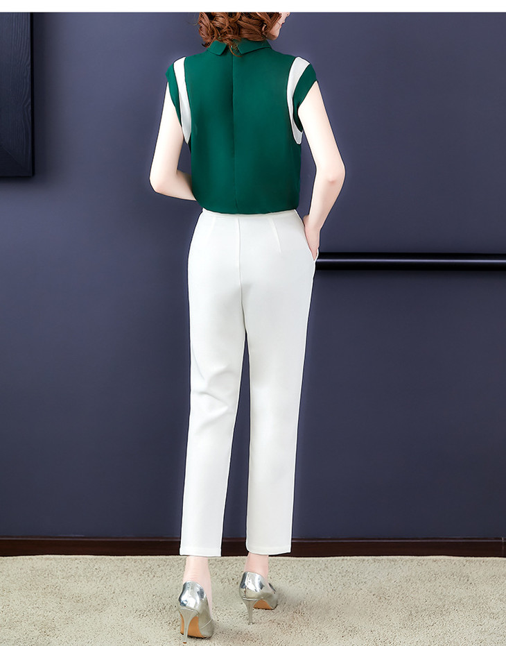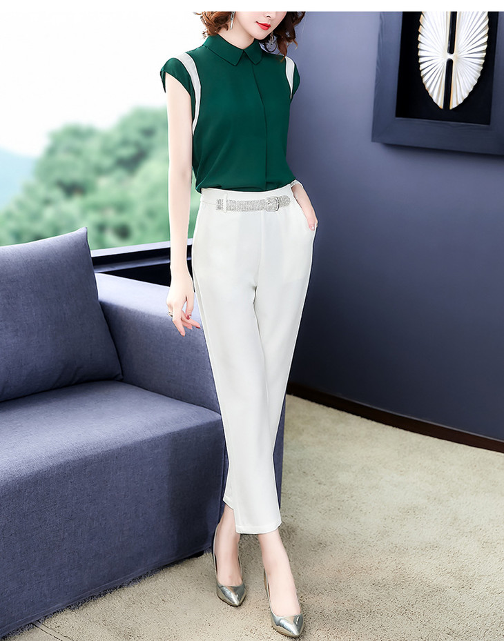 SN 4631553气质修身显瘦雪纺上衣休闲裤两件套【优】