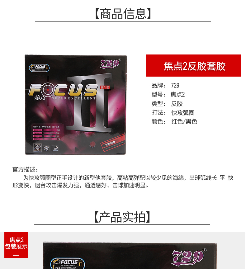 友谊729 焦点2 内能乒乓球胶皮球拍反胶套胶