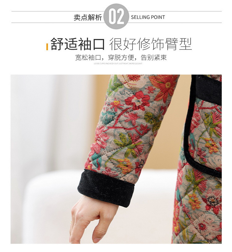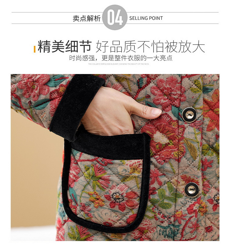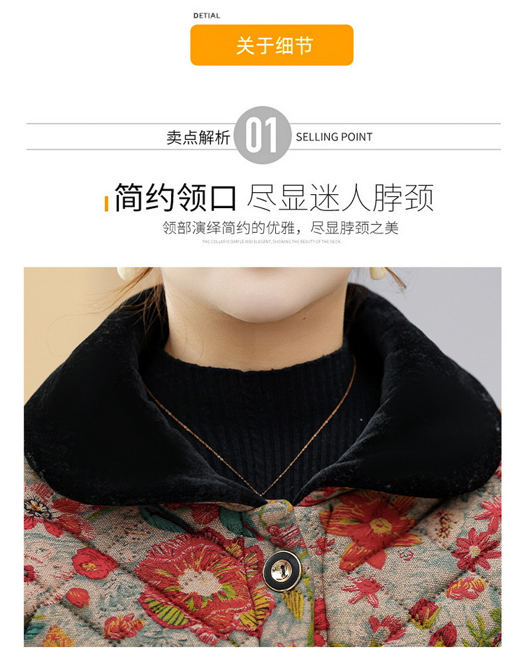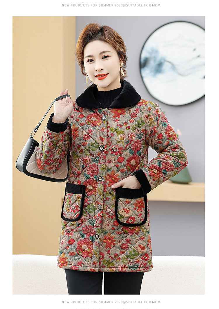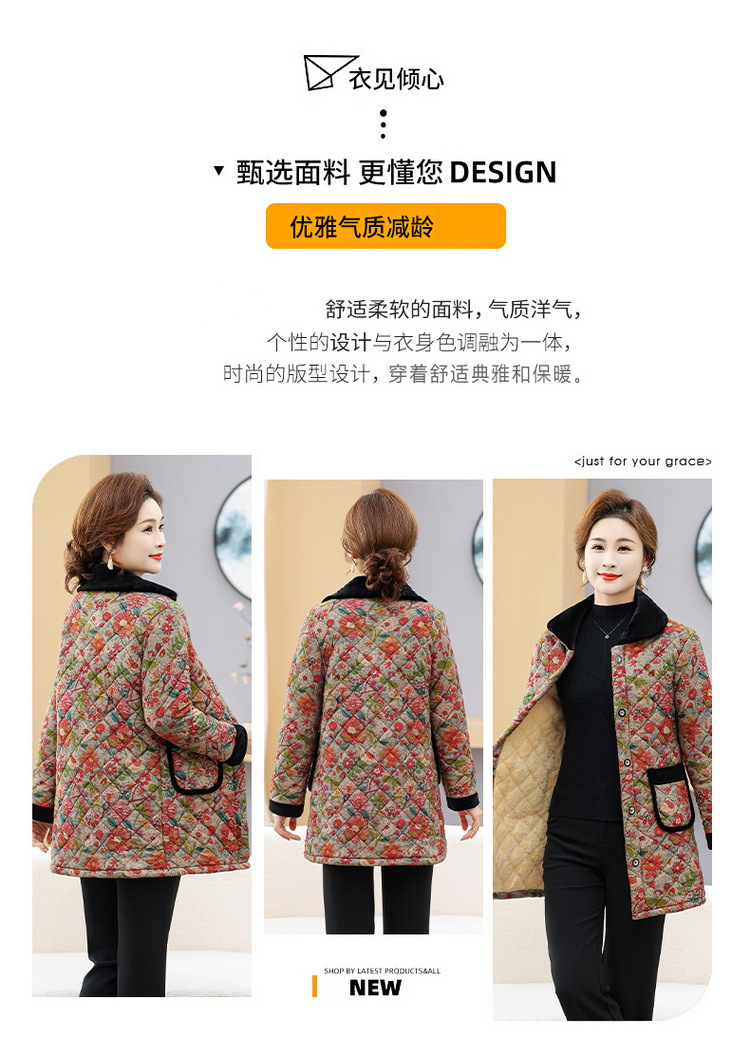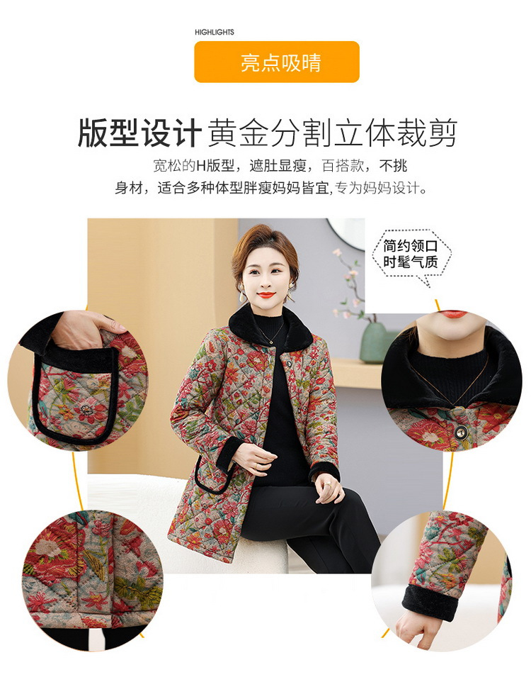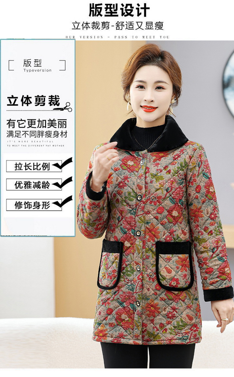NP-妈妈冬季中长款加绒保暖花棉袄外套中年女装时尚棉服上衣新款棉衣