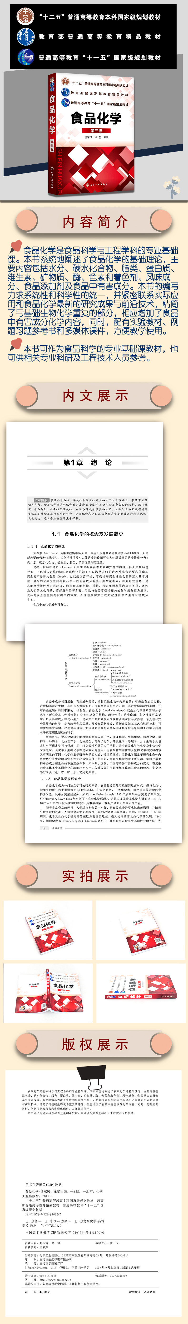 食品化学是食品科学与工程学科的专业基础课。本书系统地阐述了食品化学的基础理论,主要内容包括水分、碳水化合物、脂类、蛋白质、维生素、矿物质、酶、色素和着色剂、风味成分、食品添加剂及食品中有害成分。本书的编写力求系统性和科学性的统一,并紧密联系实际应用和食品化学最新的研究成果与前沿技术,精简了与基础生物化学重复的部分,相应增加了食品中有害成分化学内容,同时,配有实验教材、例题习题参考书和多媒体课件,方便教学使用。