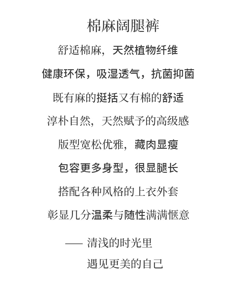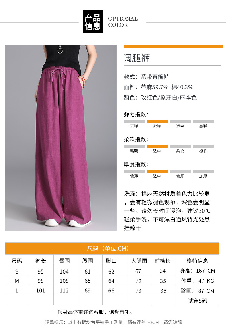 百媚生 苎麻棉垂感宽松阔腿裤TDA-7
