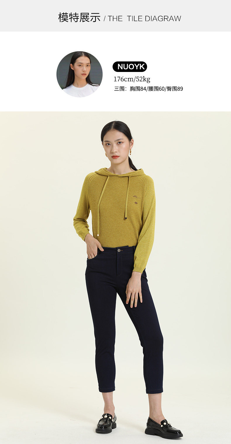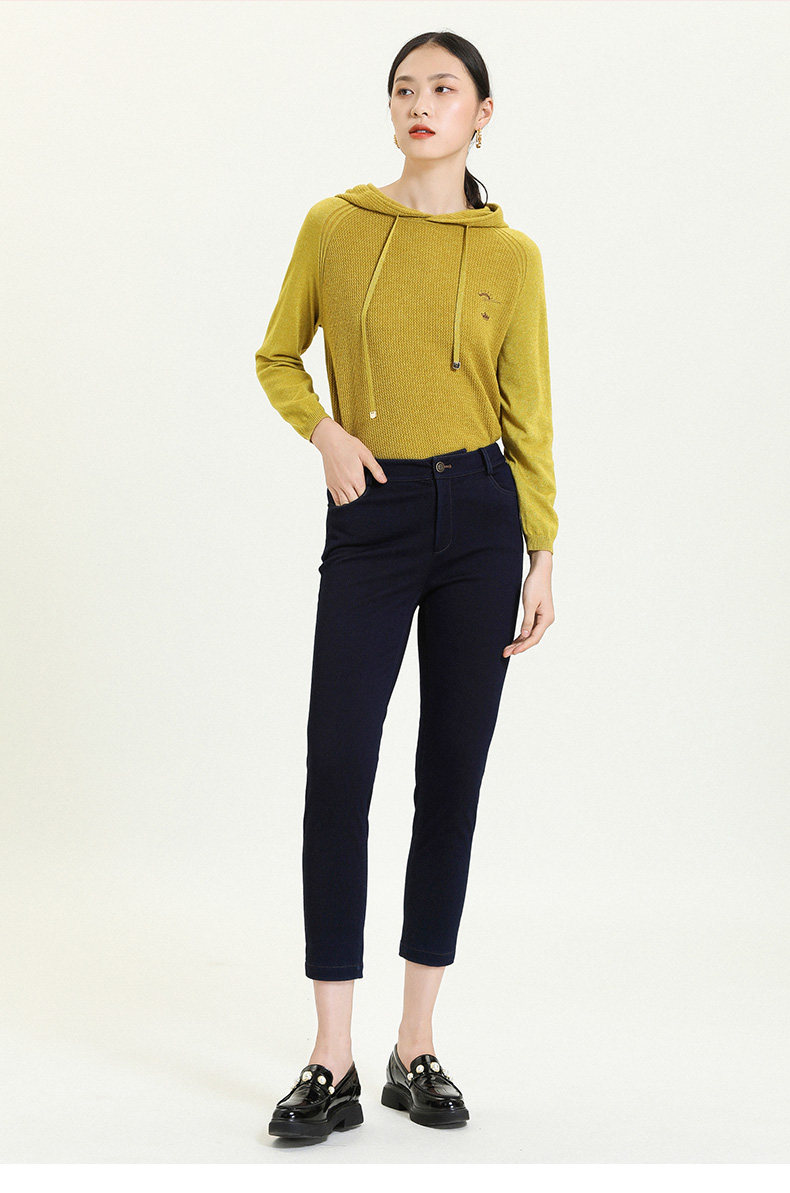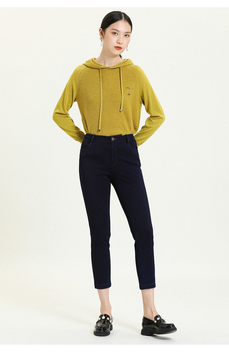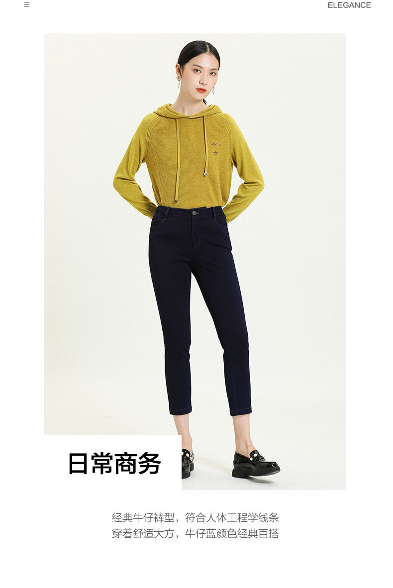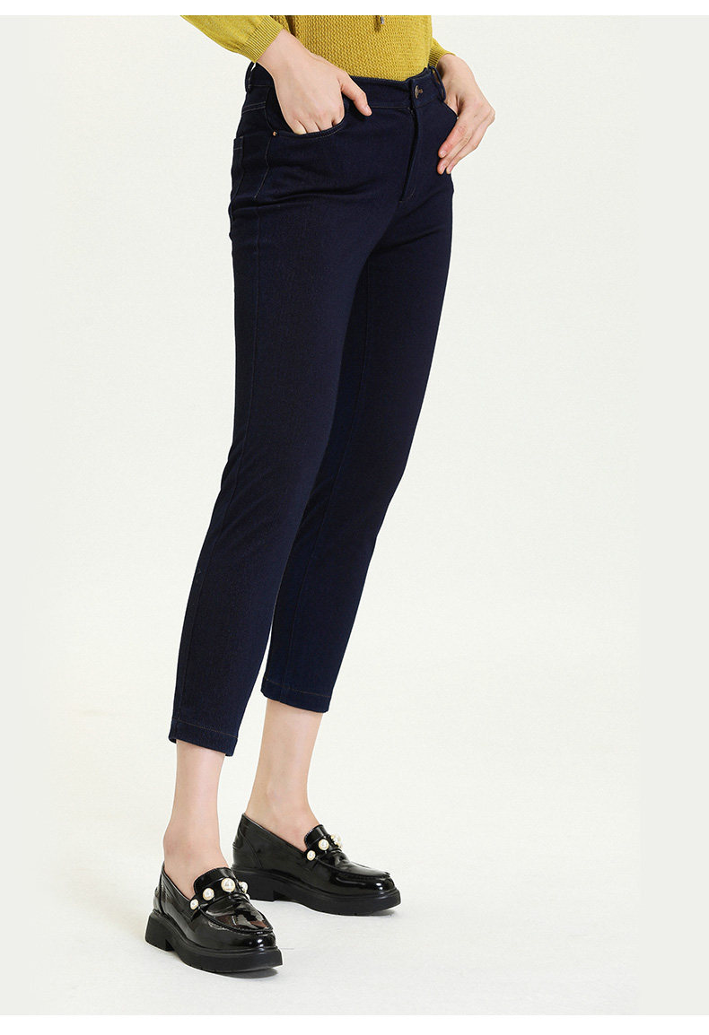 乔万尼新款牛仔蓝显瘦简约大气撞钉工艺气质舒适修身铅笔裤ES3F531