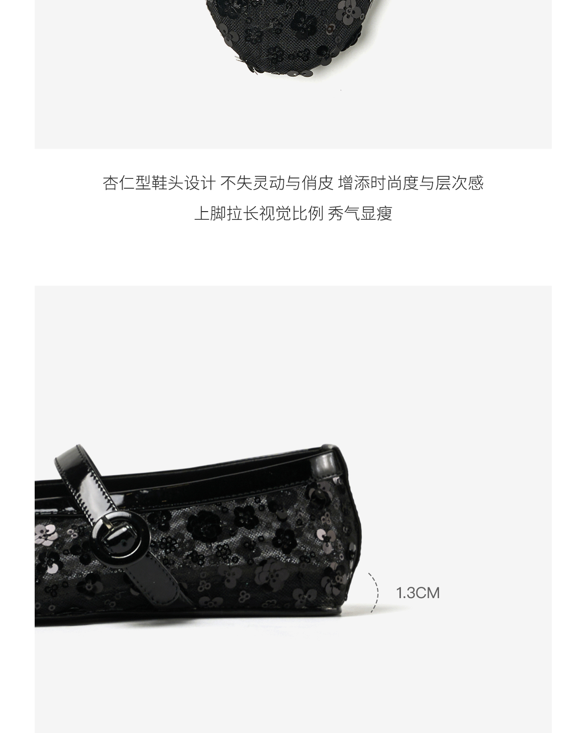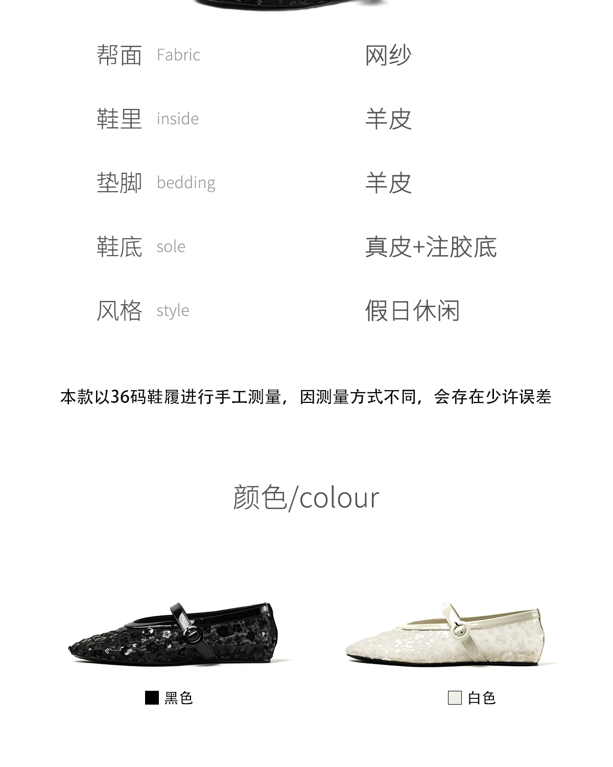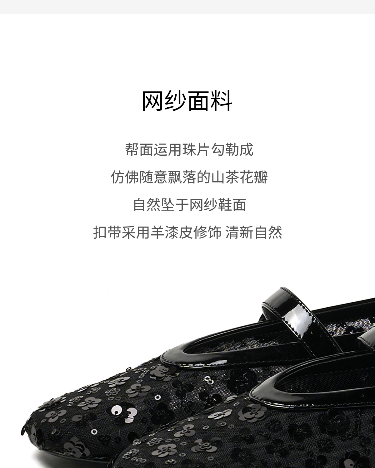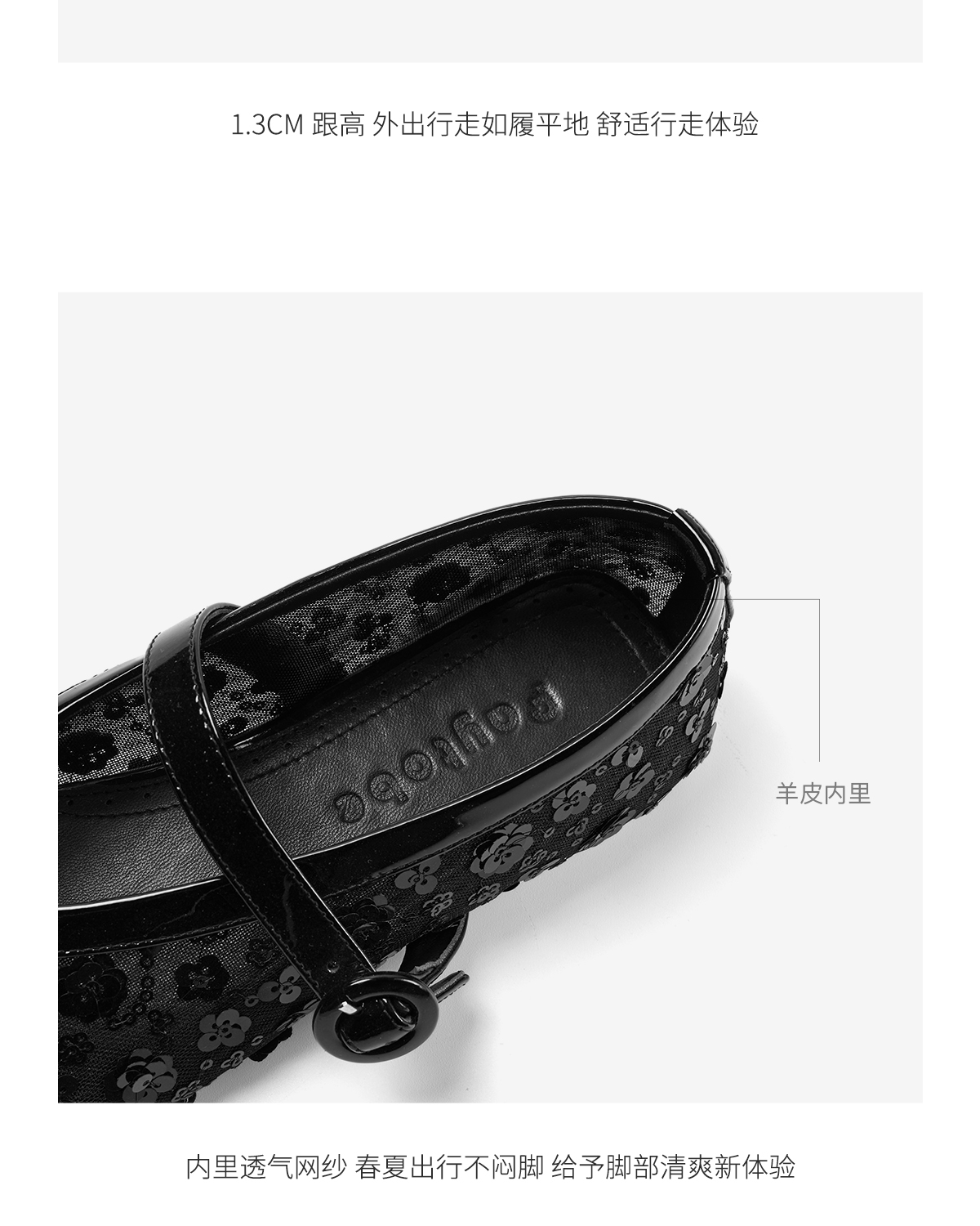 FAYTOBE 山茶花玛丽珍25春款圆头网纱一字扣单鞋透气珠片平底鞋女
