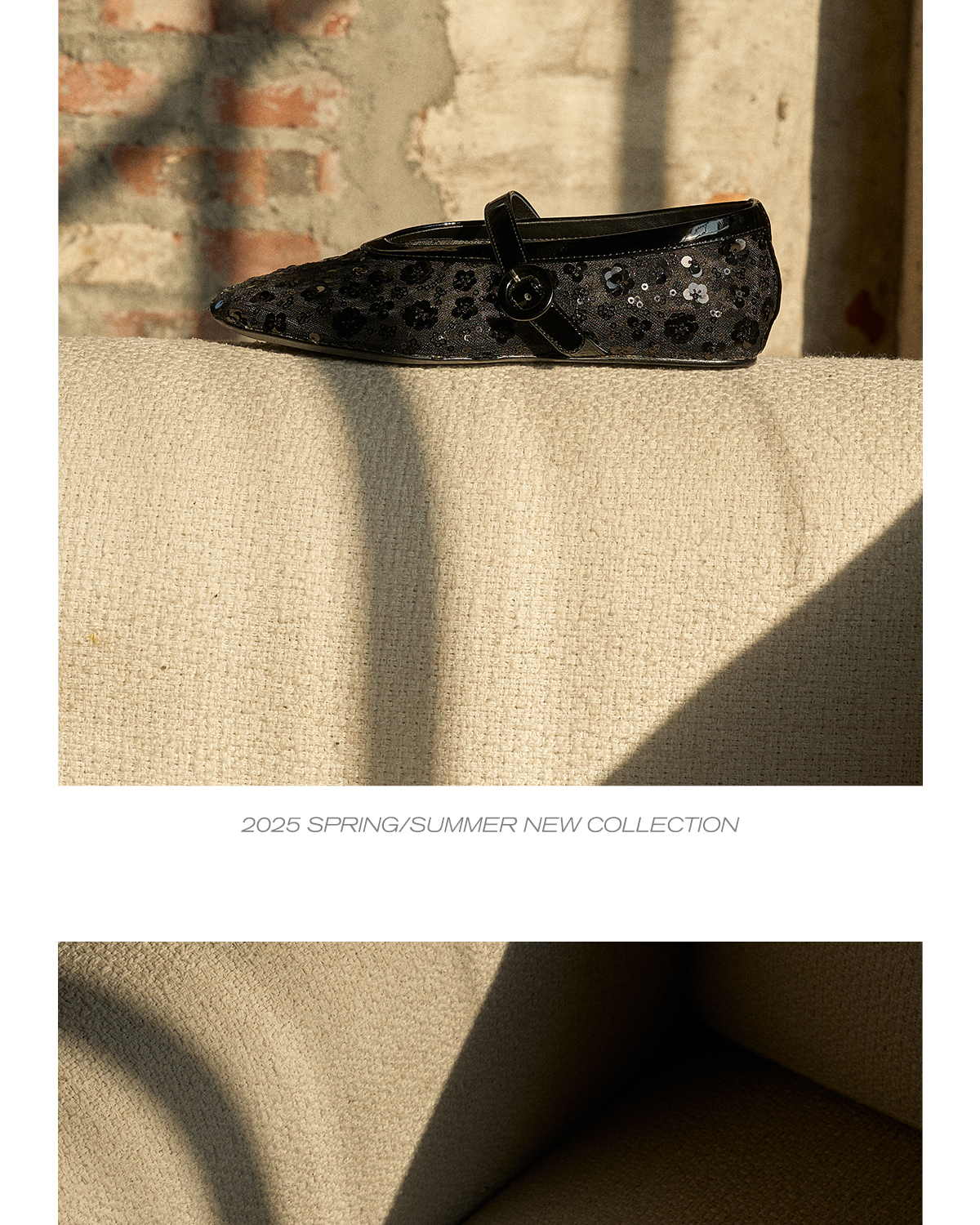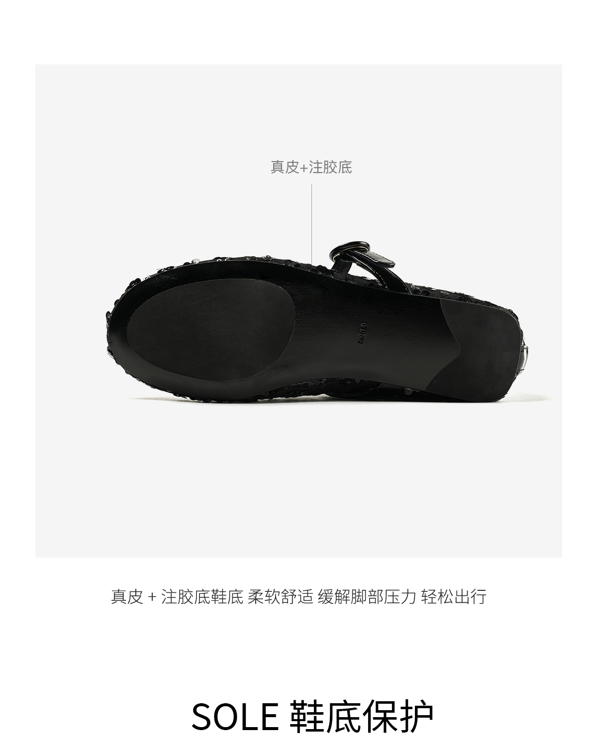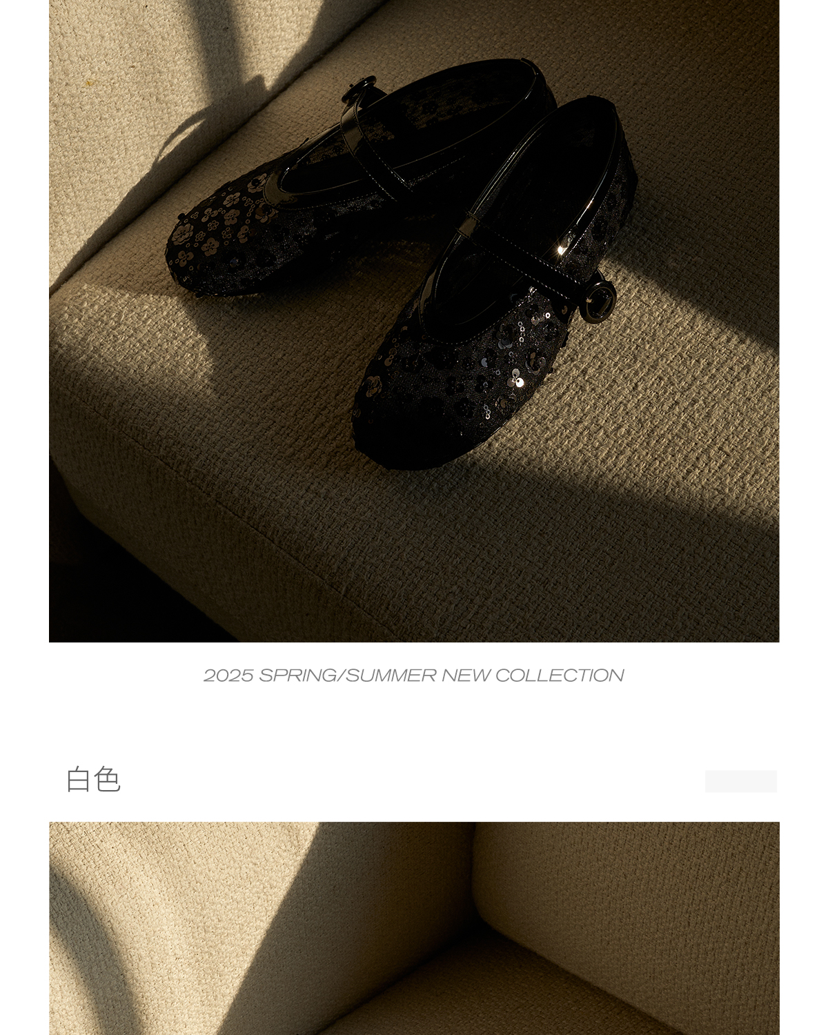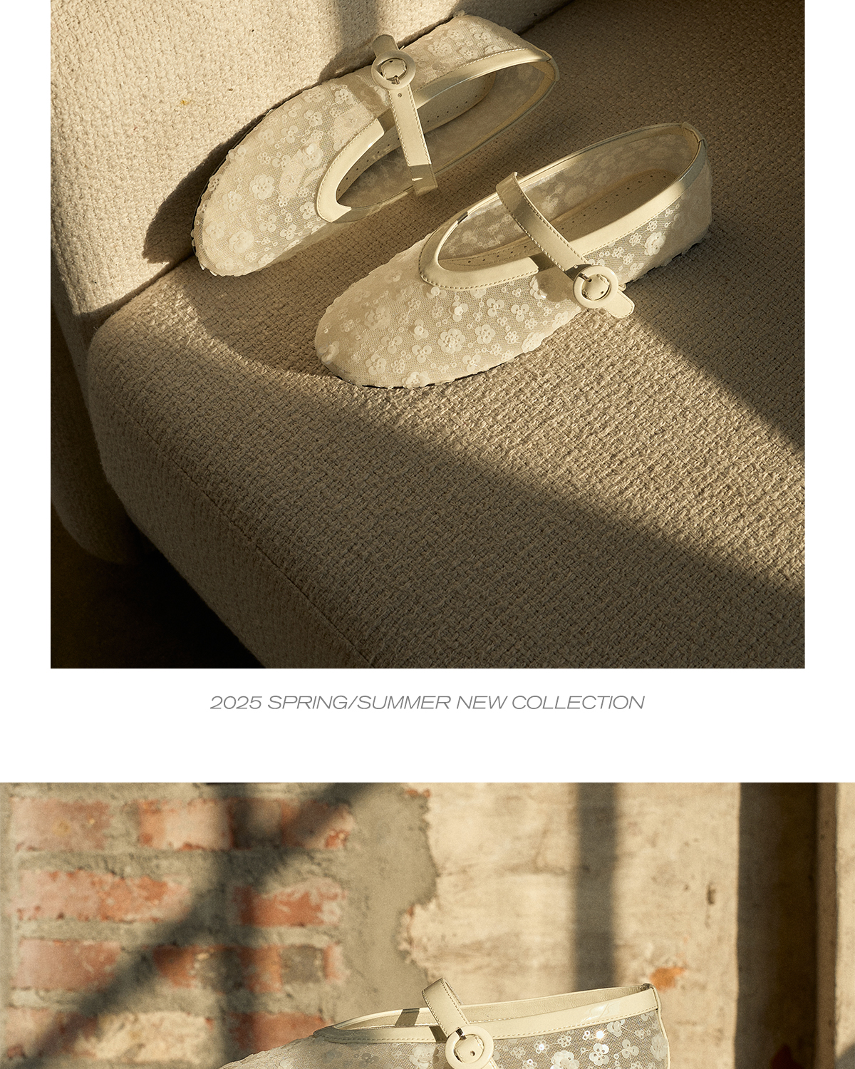 FAYTOBE 山茶花玛丽珍25春款圆头网纱一字扣单鞋透气珠片平底鞋女