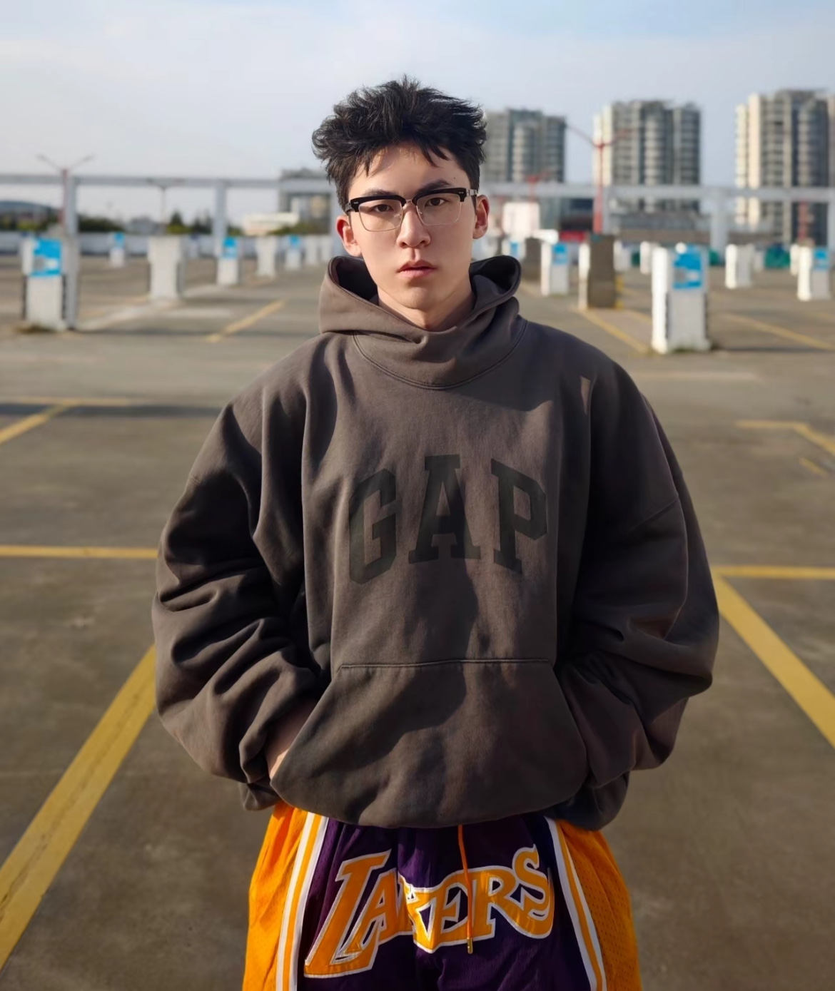 它是“实用主义的时尚单品”:装上防蓝光镜片,能成为通勤时的护眼利器;搭配透明平光镜,便是造型的点睛之笔——黑框的复古感适配西装、卫衣等多元风格,金色细节又能在低调穿搭中跳出精致亮点,像一杯加了金箔的黑咖啡,沉稳里裹着恰到好处的闪耀