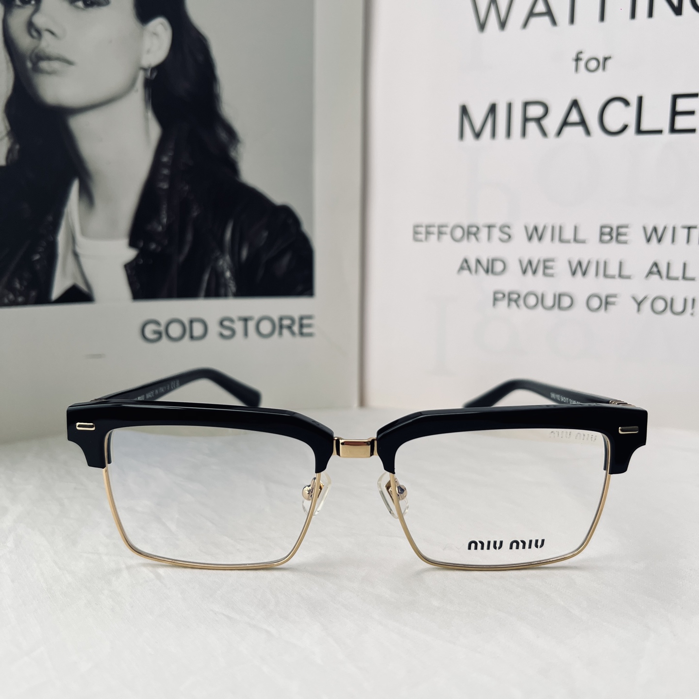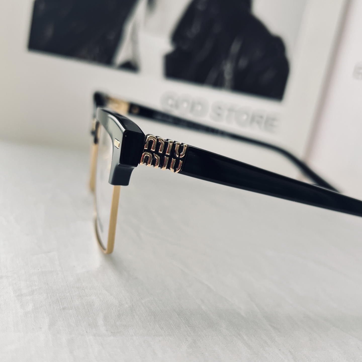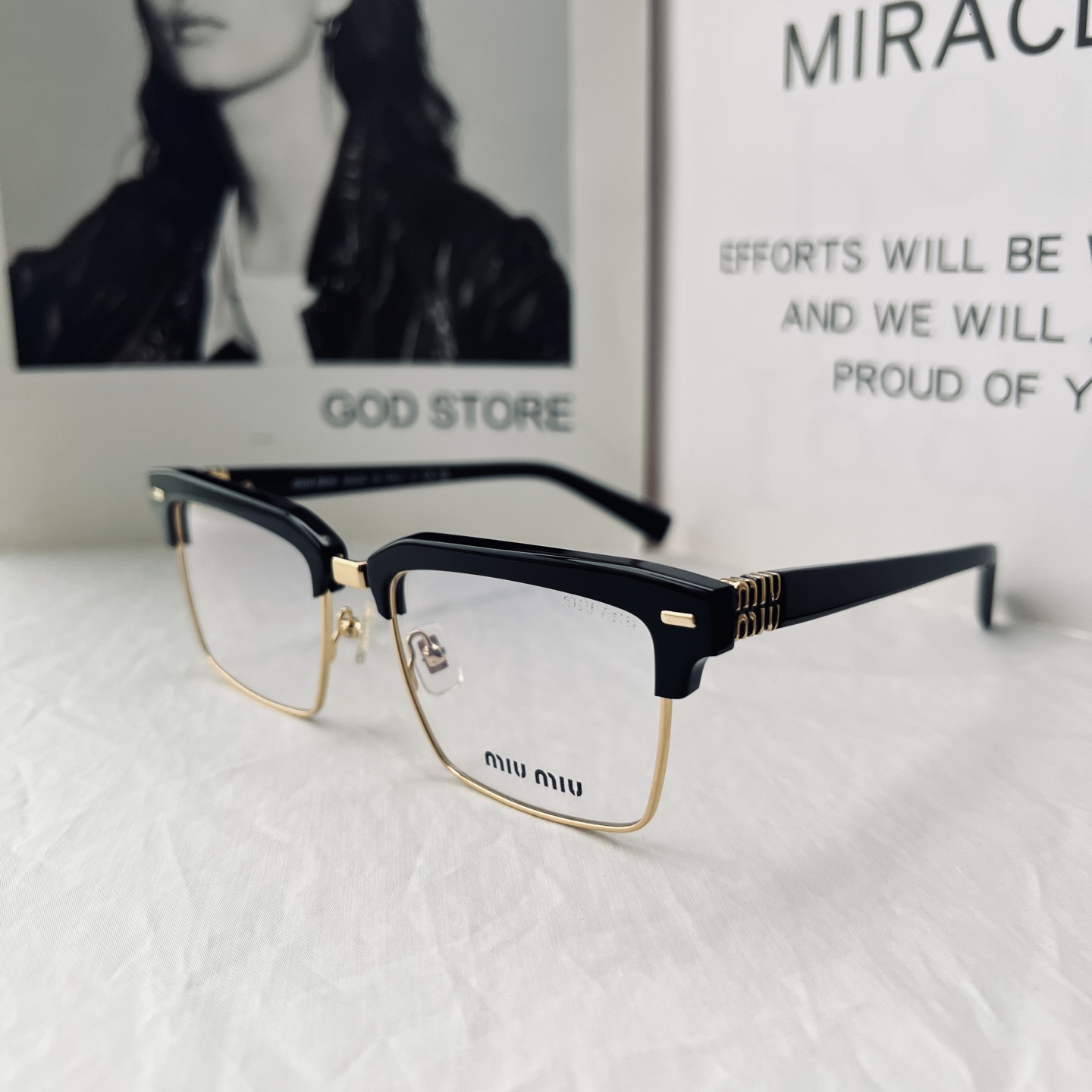 2025新款 渠道货 ‼️全套原装带🎁礼盒!得物价1500 我们品质0️⃣距离! 男女同款 ,这副Miu 黑框金饰半框眼镜,是将复古质感与轻奢美学揉碎在细节里的时尚载体。