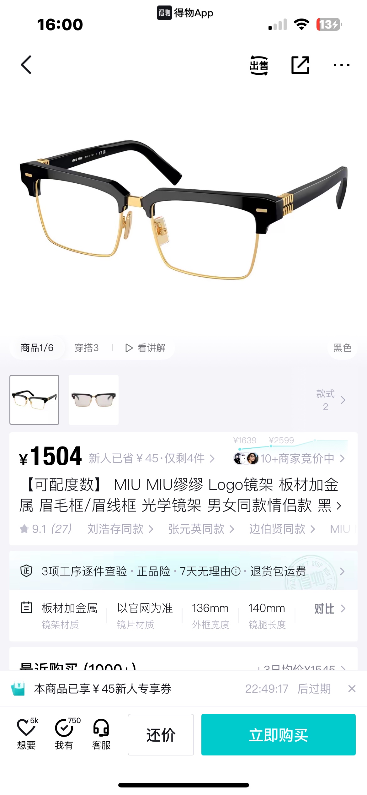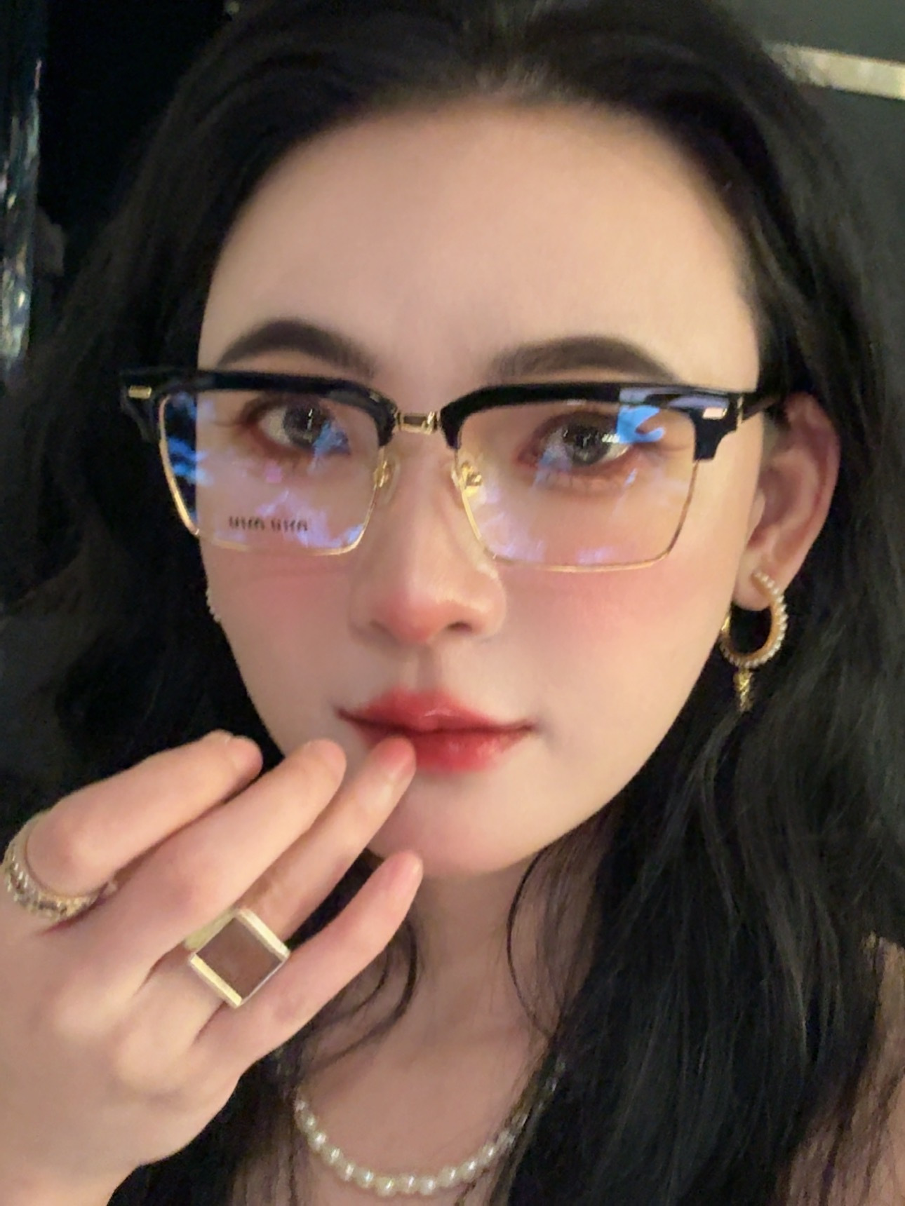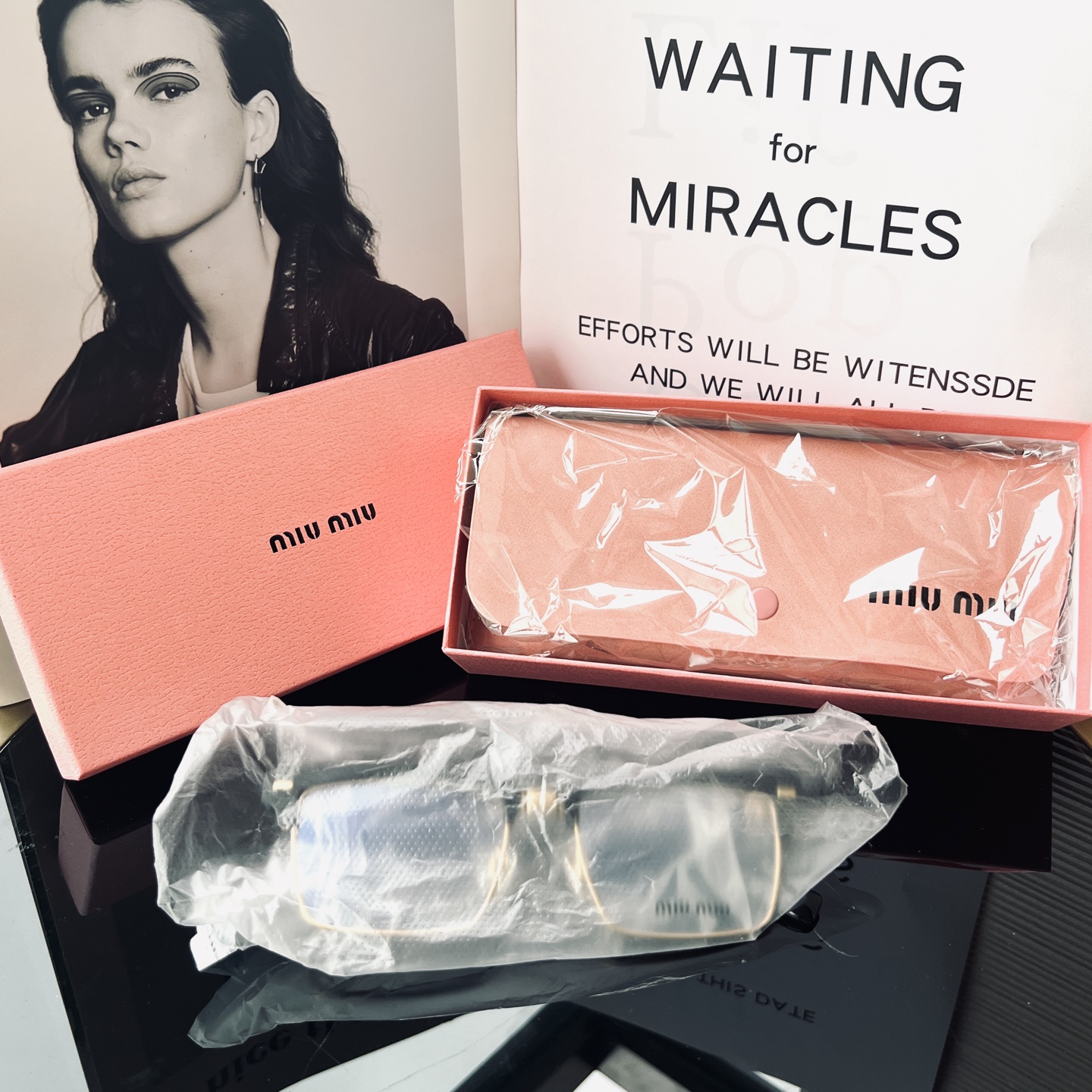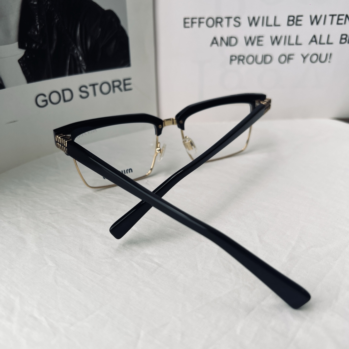 2025新款 渠道货 ‼️全套原装带🎁礼盒!得物价1500 我们品质0️⃣距离! 男女同款 ,这副Miu 黑框金饰半框眼镜,是将复古质感与轻奢美学揉碎在细节里的时尚载体。