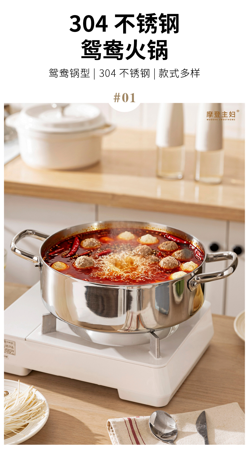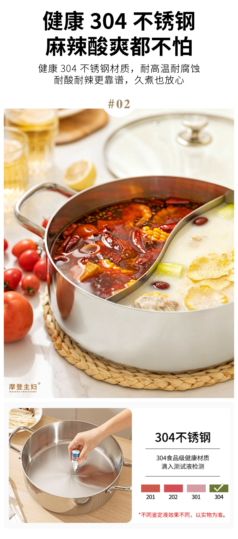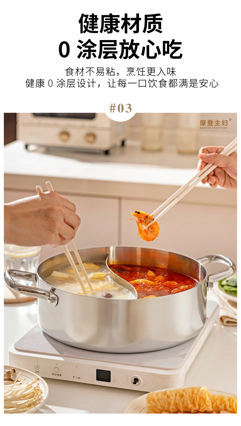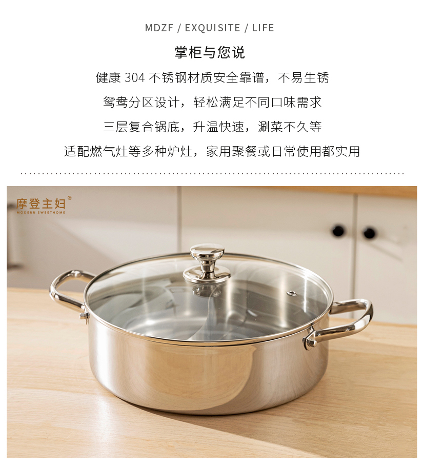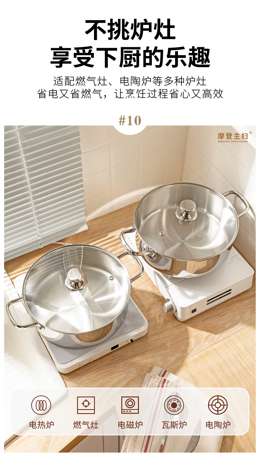 摩登主妇双面鸳鸯火锅锅具家用不粘电磁炉通用加厚不锈钢火锅炉