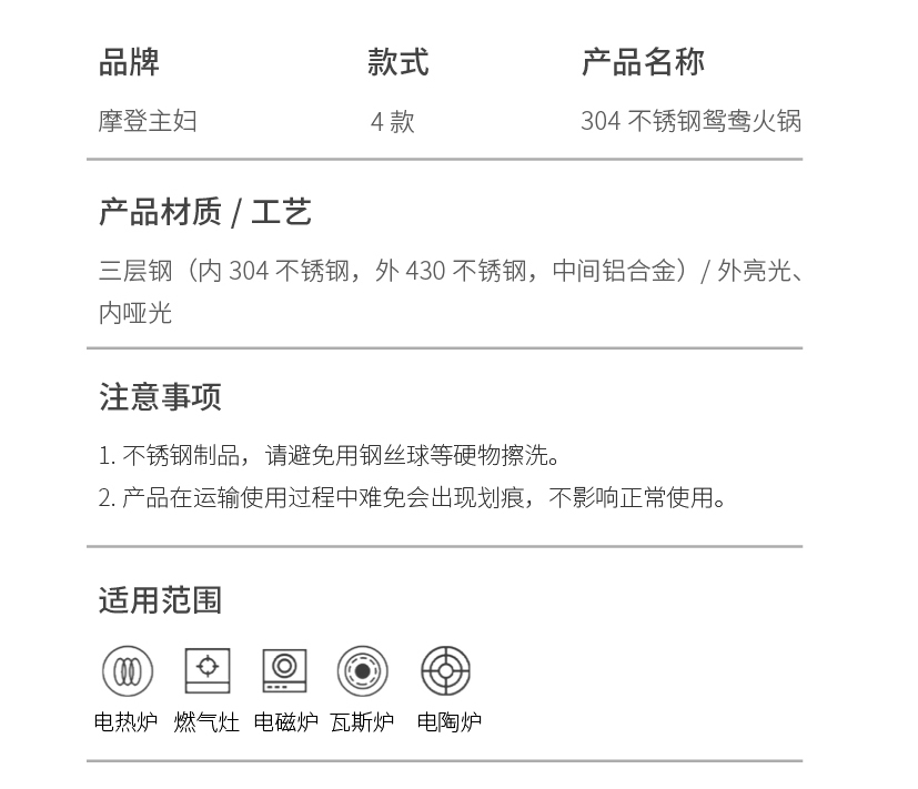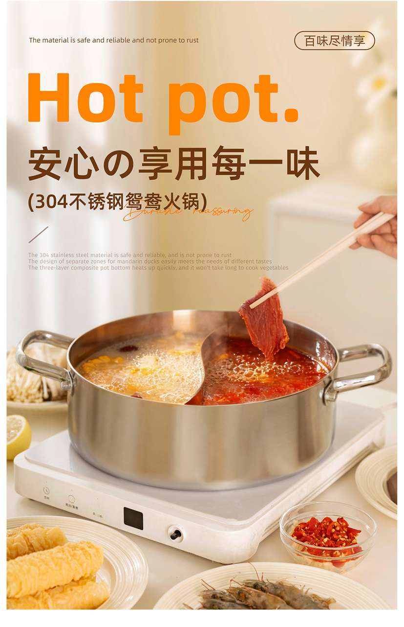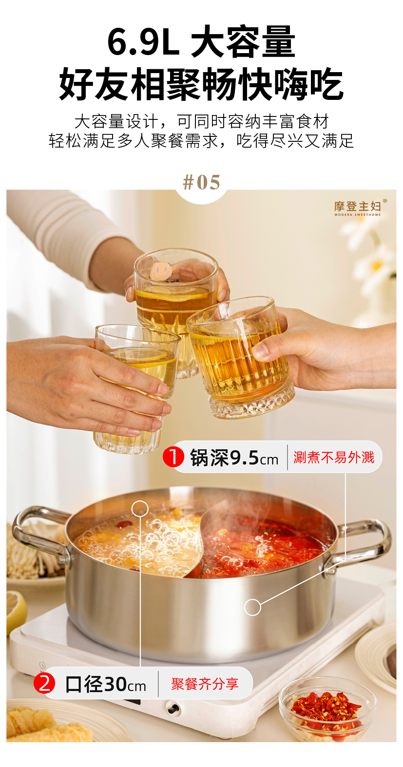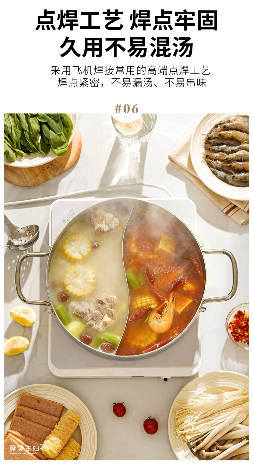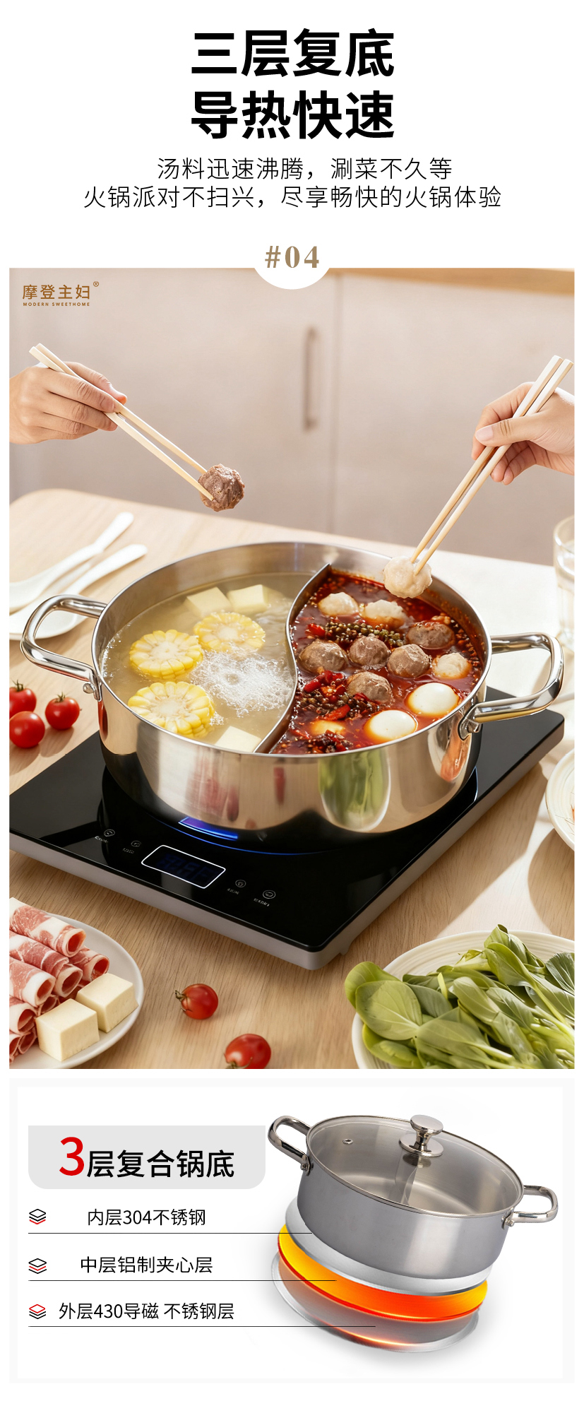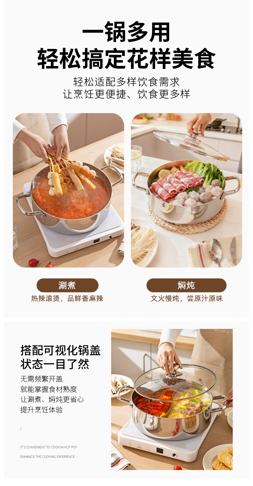 摩登主妇双面鸳鸯火锅锅具家用不粘电磁炉通用加厚不锈钢火锅炉