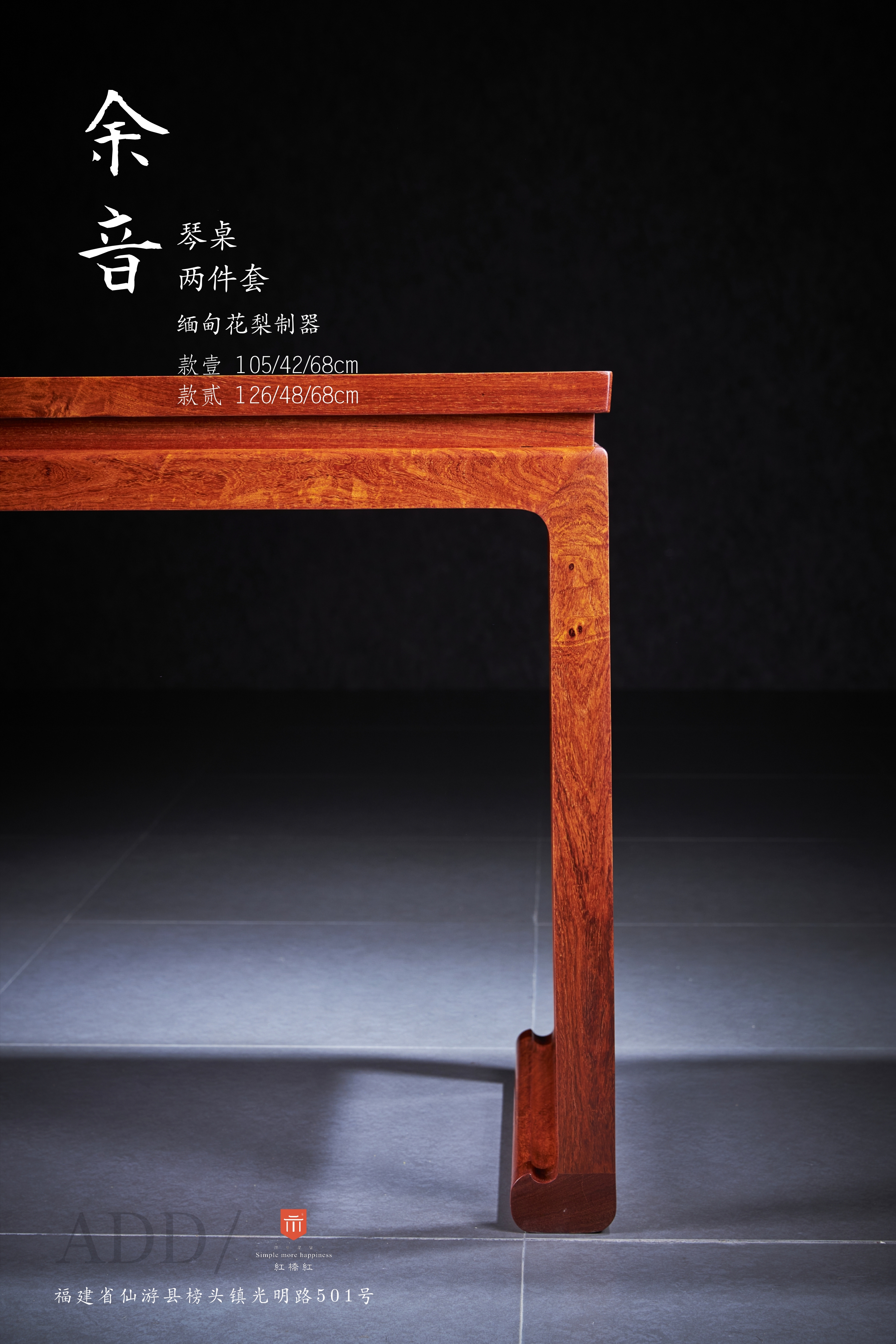 宋《洞天清录集》记载:“琴桌须作维摩样,庶案脚不碍人膝”,即琴桌的桌面与腿足须取空灵宽厚之势,正面腿足之间不加横枨,足下端常做出内翻琴脚。