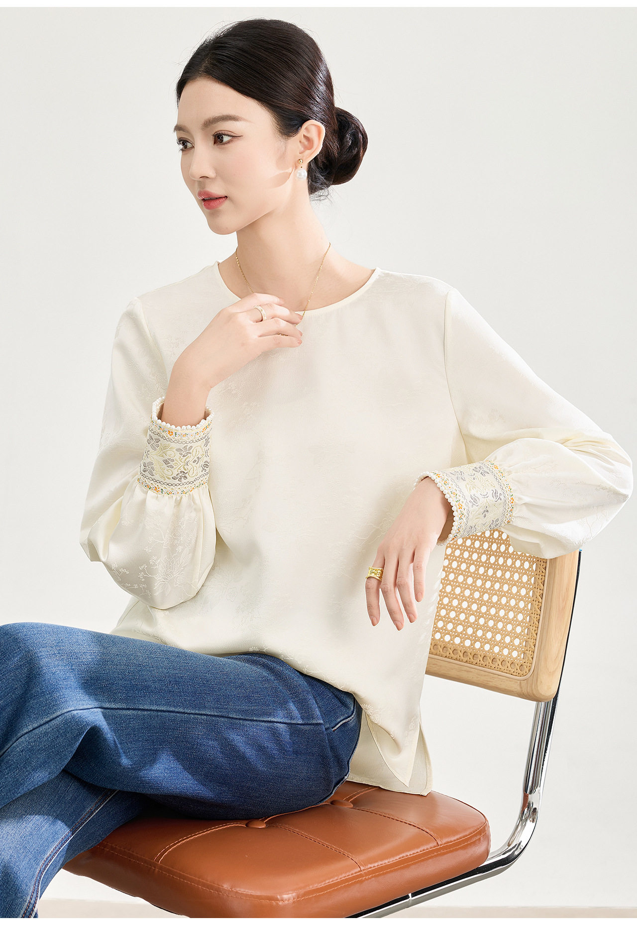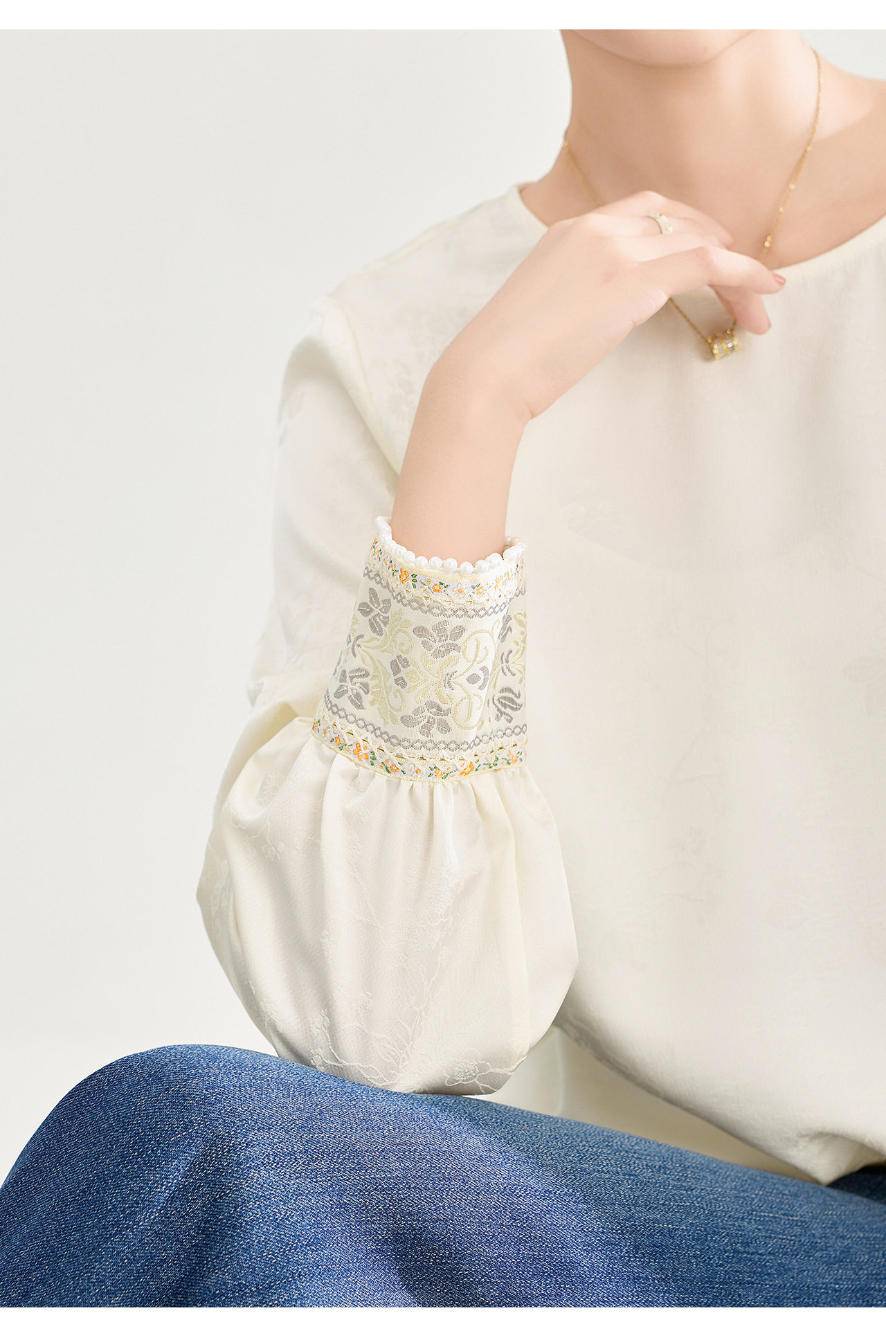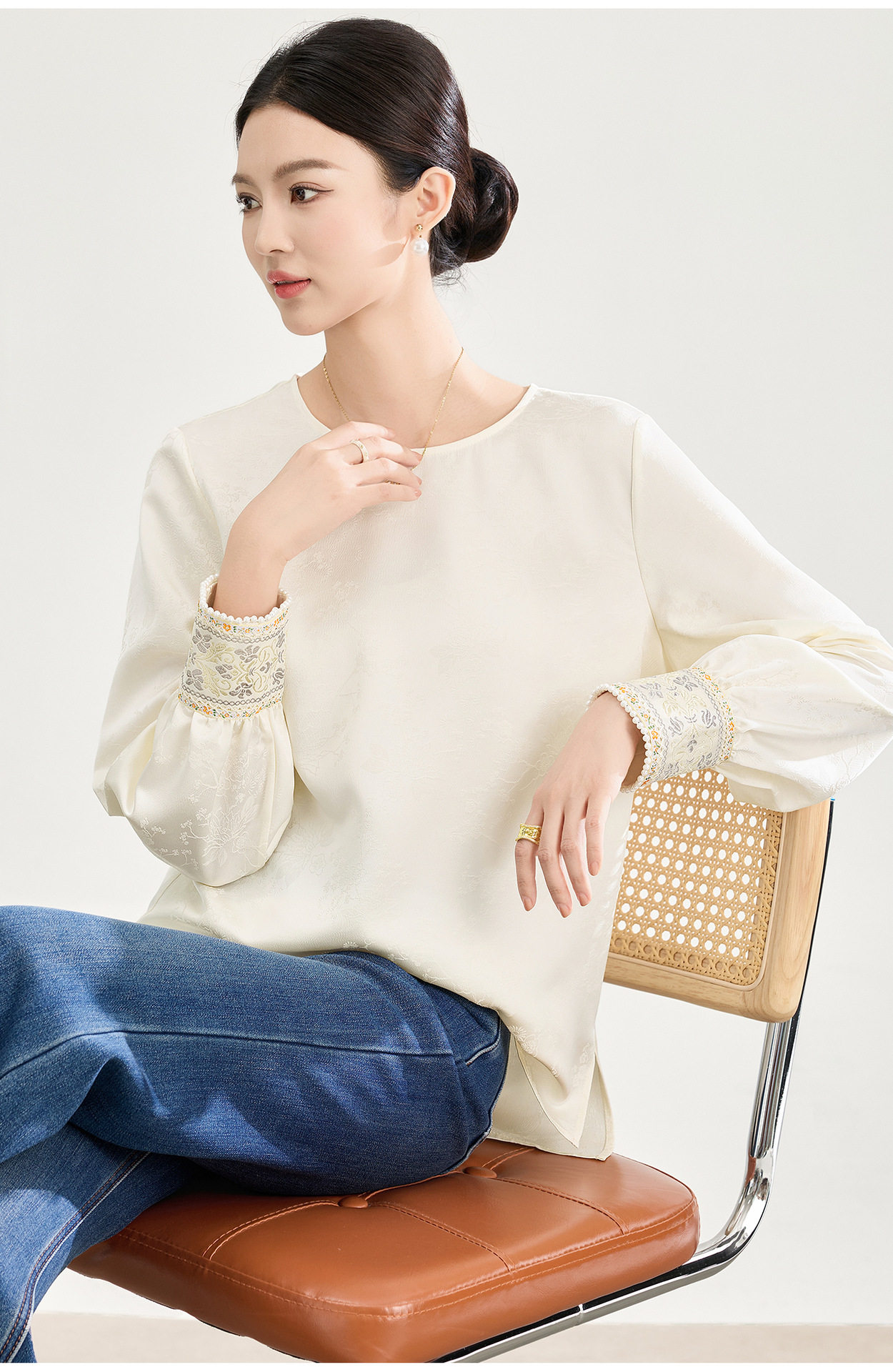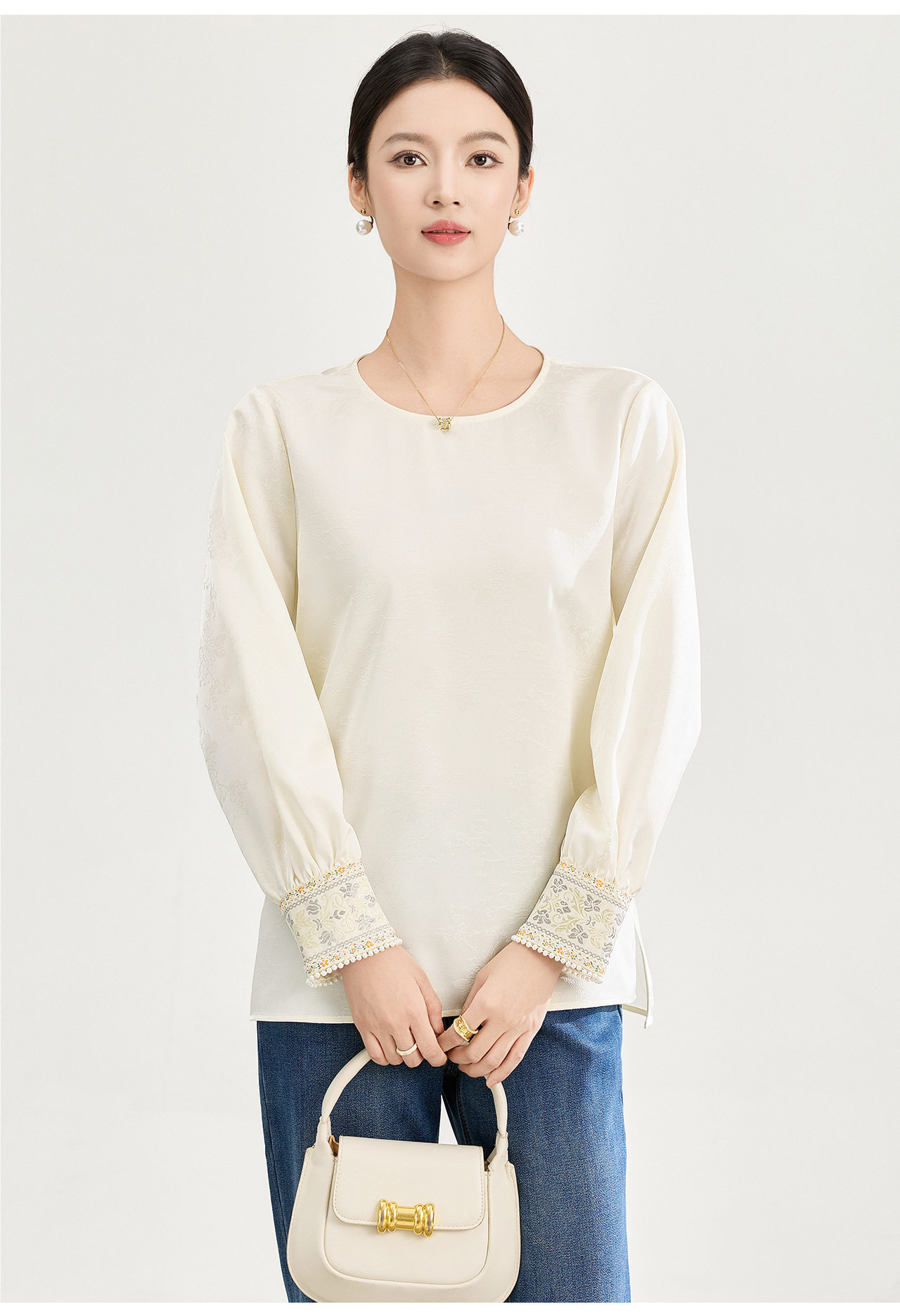 「高货wl」全新升级【铂金会员257/天猫339/差价82】(04024)洛诗琳新中式国风长袖衬衫2025秋冬刺绣袖口提花打底上衣
