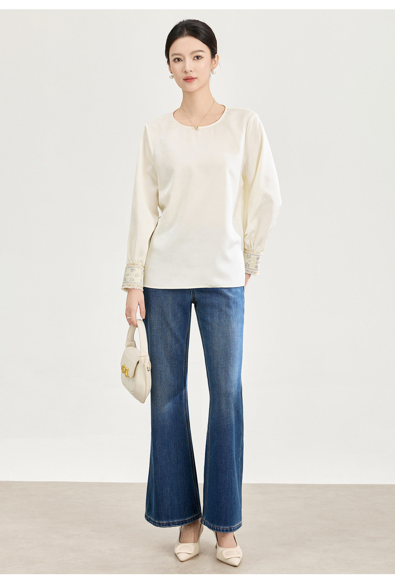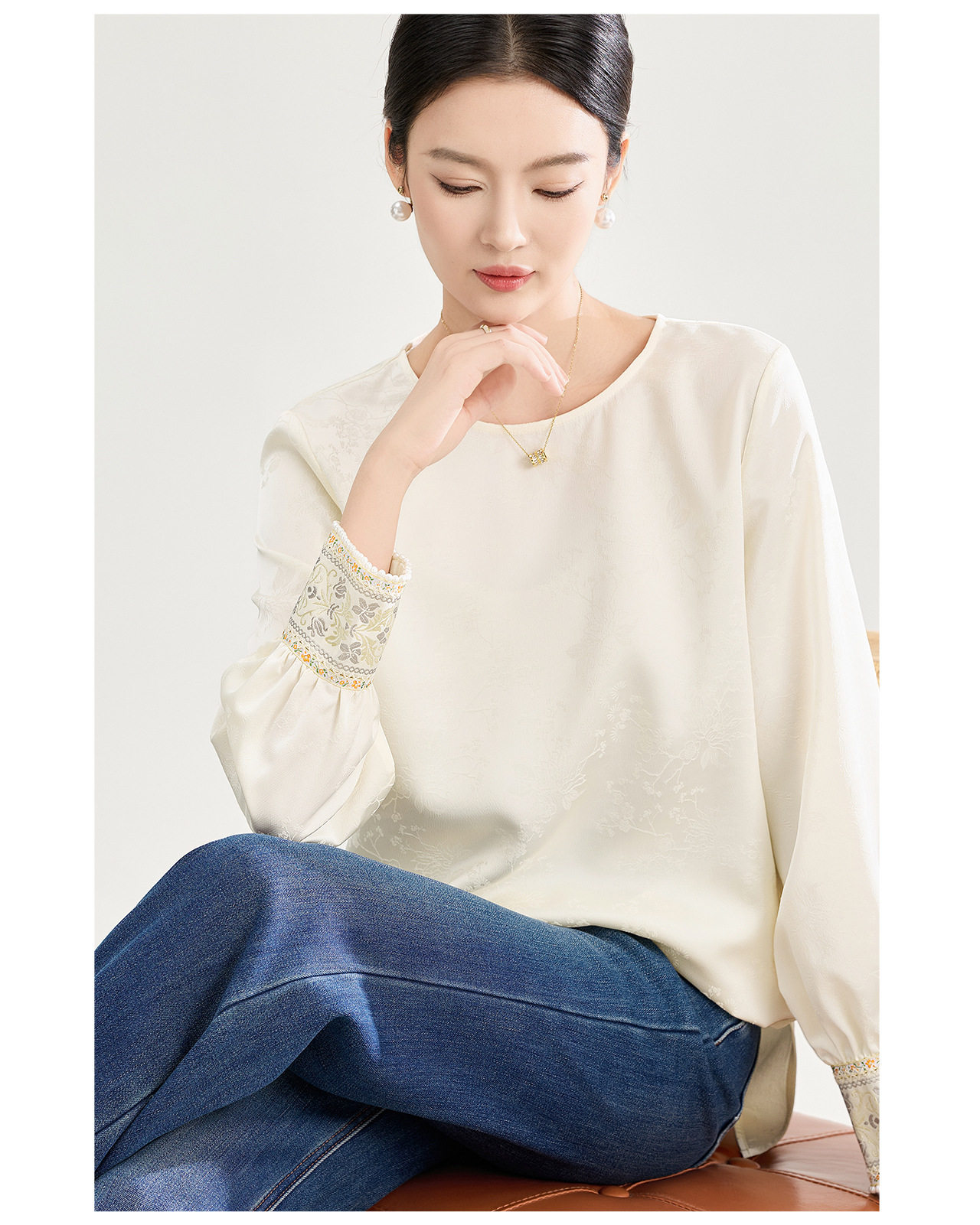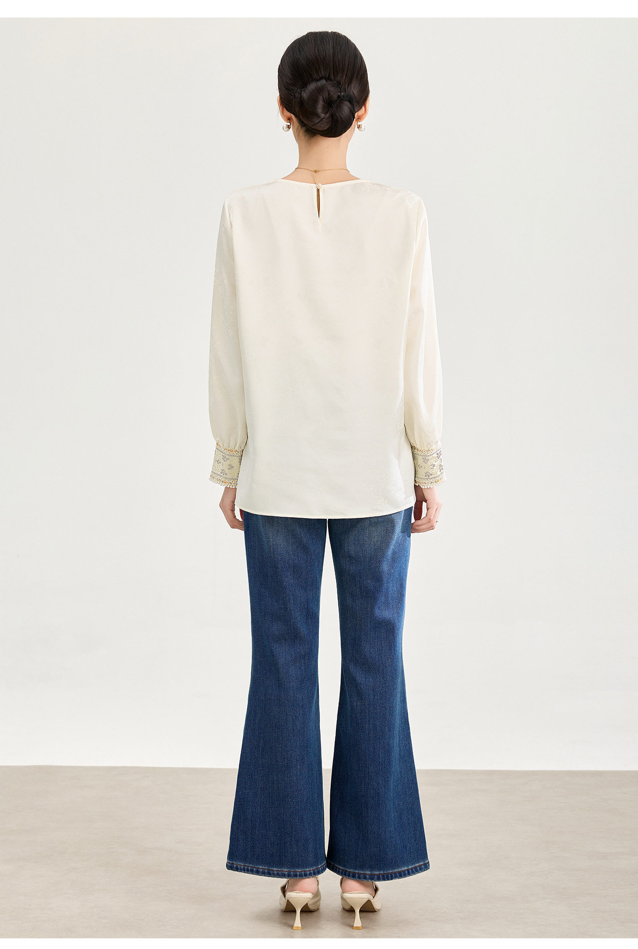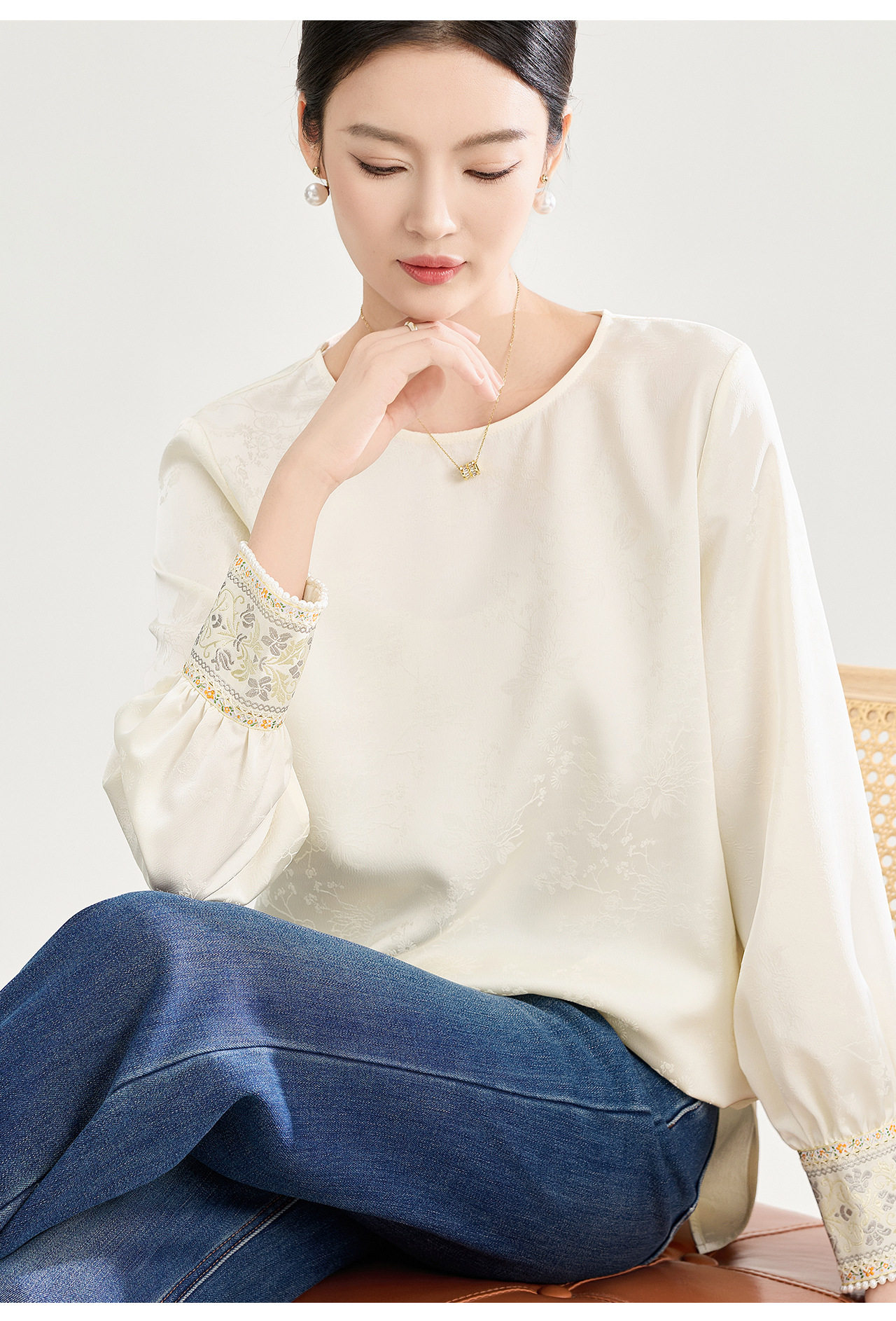 「高货wl」全新升级【铂金会员257/天猫339/差价82】(04024)洛诗琳新中式国风长袖衬衫2025秋冬刺绣袖口提花打底上衣